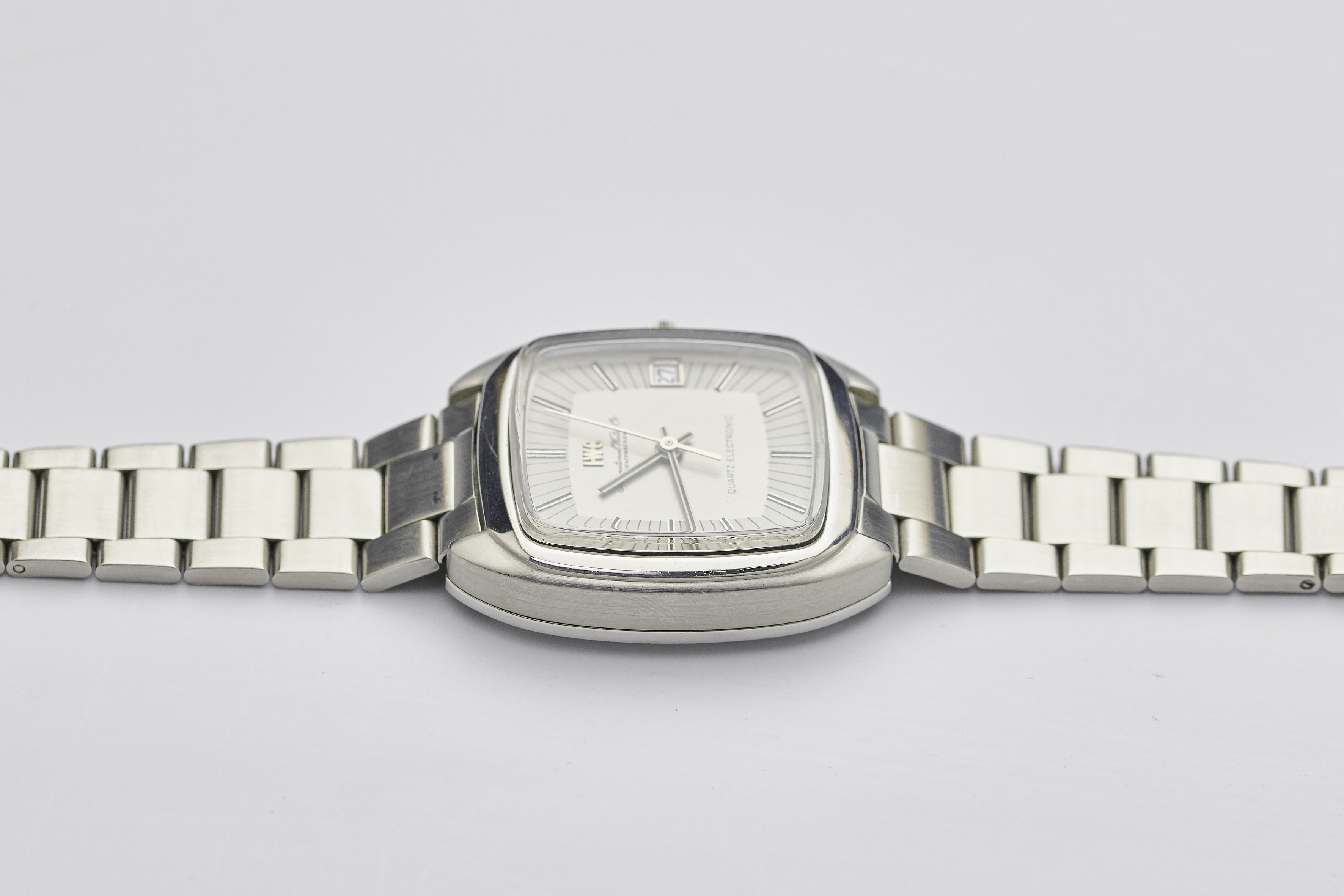 DialSilver-coloured dial with applied line indices, obelisque hands, date at 3 o'clock, signed "International Watch Co., Quartz Electronic"