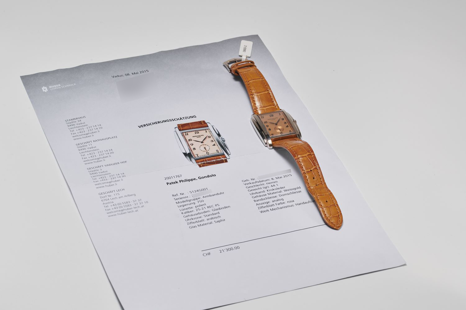 Patek Philippe watches with ‘salmon-colored’ dials, such as this Gondolo Ref. 5124G-001, are sure to arouse great interest among collectors. The ‘salmon’ dial is a very rare feature for Patek Philippe, especially for the Gondolo collection. In this watch, it is exquisite and seductively subtle, with a smooth, matte textured background and a slightly recessed small seconds sub-dial with a subtle grooved texture that is barely perceptible to the naked eye. The blackened applied Breguet Arabic numerals, blackened leaf hands and black scales are stunningly chosen design details that complement the ‘salmon’ dial and make the watch irresistibly beautiful. The caliber 25-21 REC PS, which is located under the sapphire caseback, is stamped by Patek Philippe hallmark. This rare caliber is a real treasure, especially thanks to the S-shaped center wheel bridge, which is derived from the historic Patek Philippe pocket watch calibers.