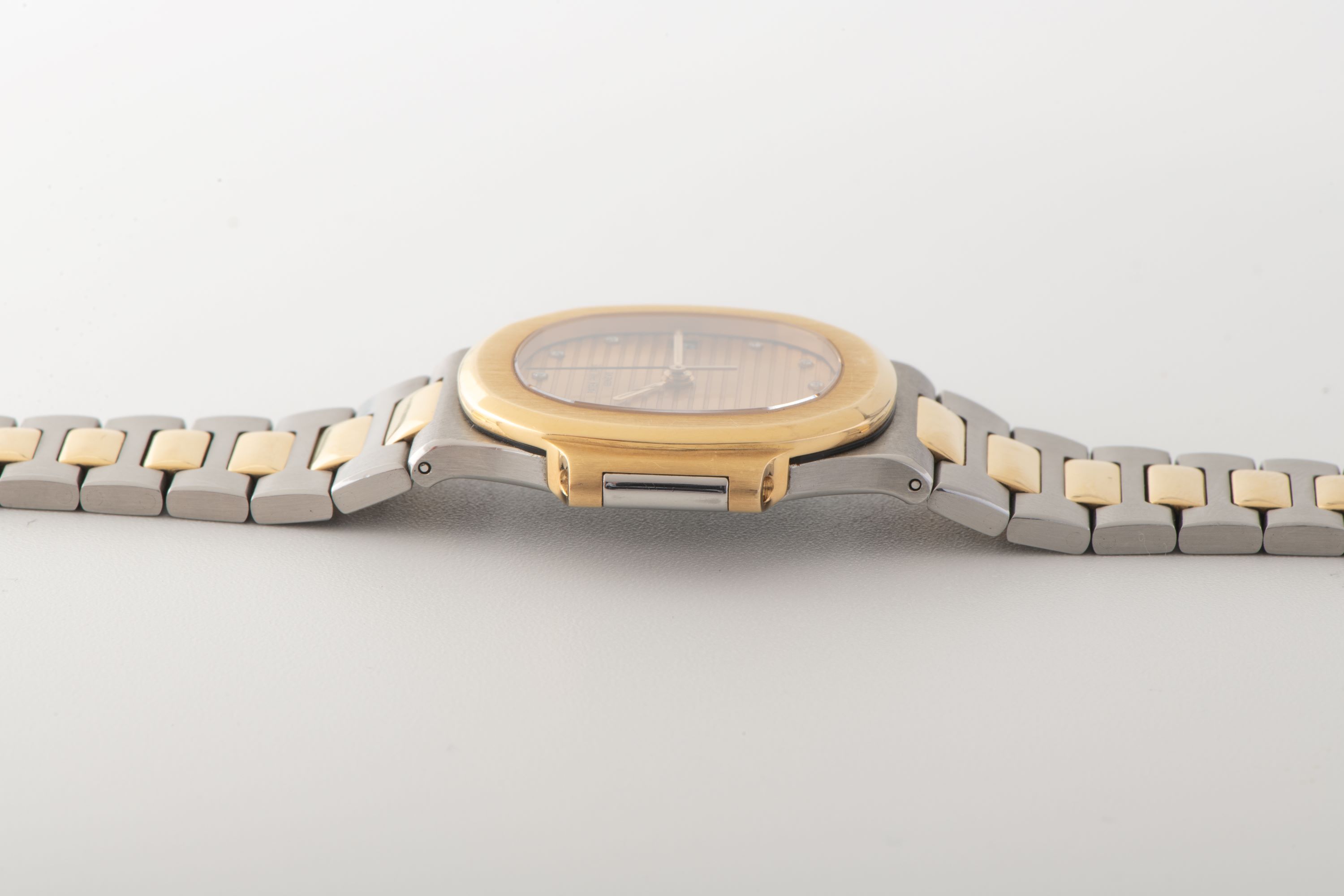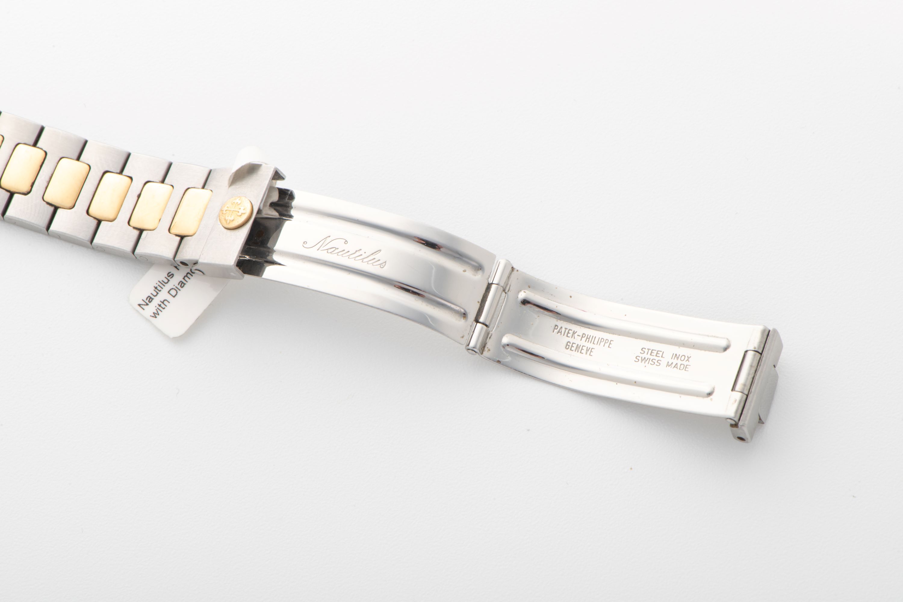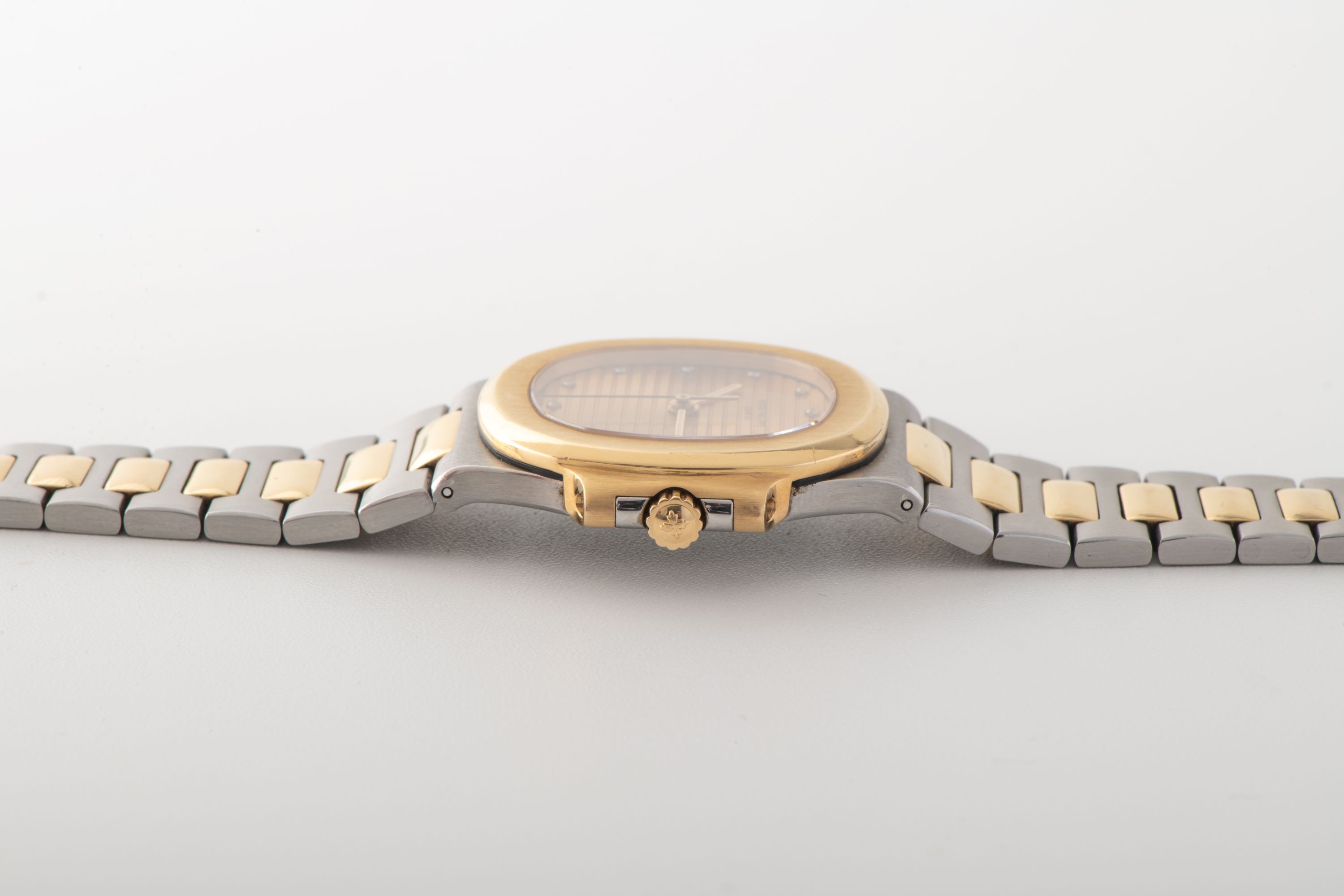 CaseNautilus case in steel with yellow gold accents and 18k yellow gold bezel, crown at 3 o'clock