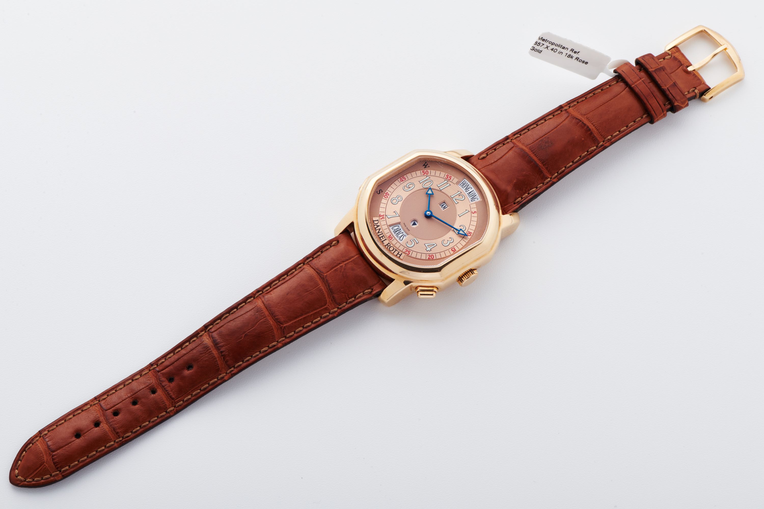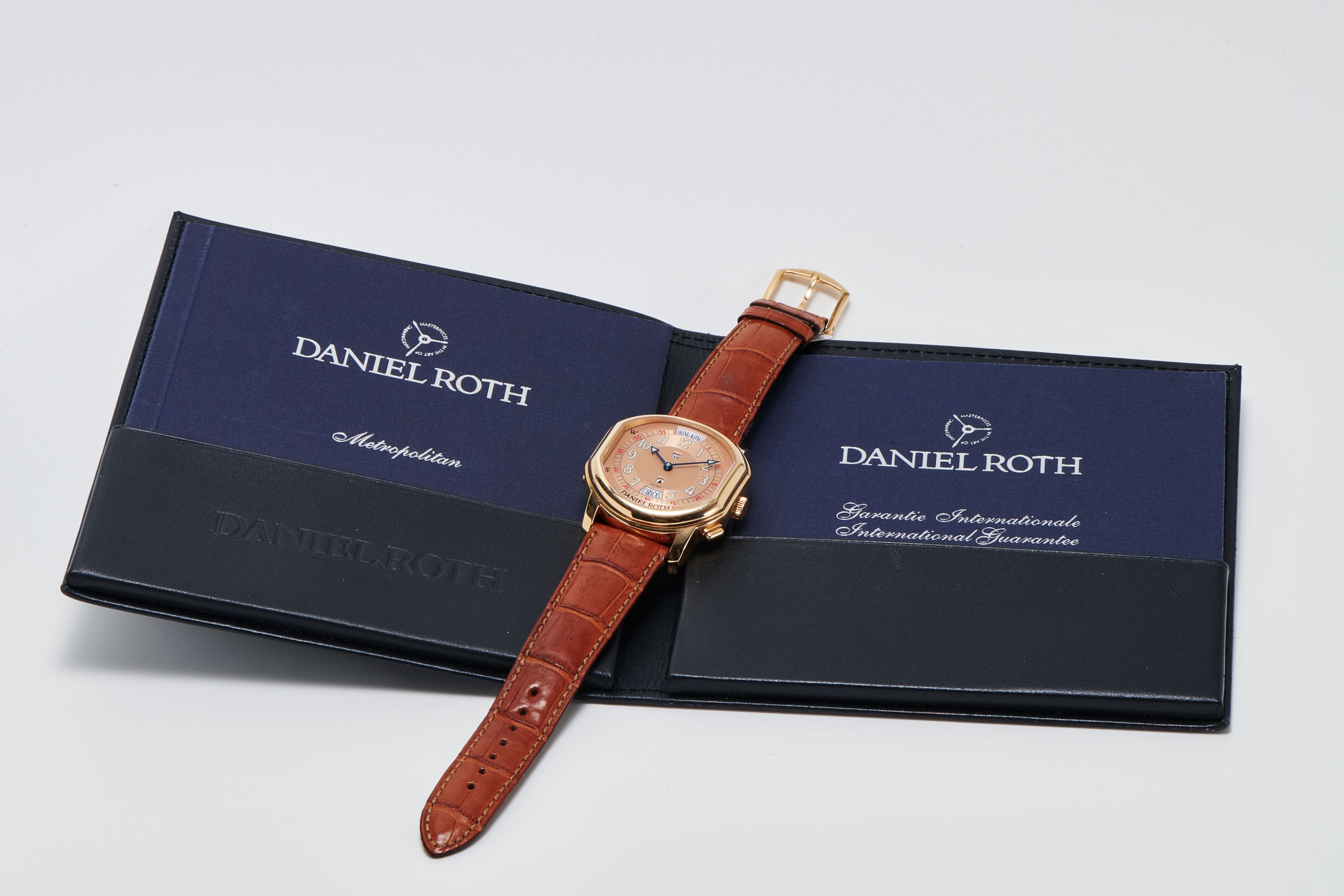 StrapBrown alligator leather strap with Daniel Roth pin buckle in 18k rose gold