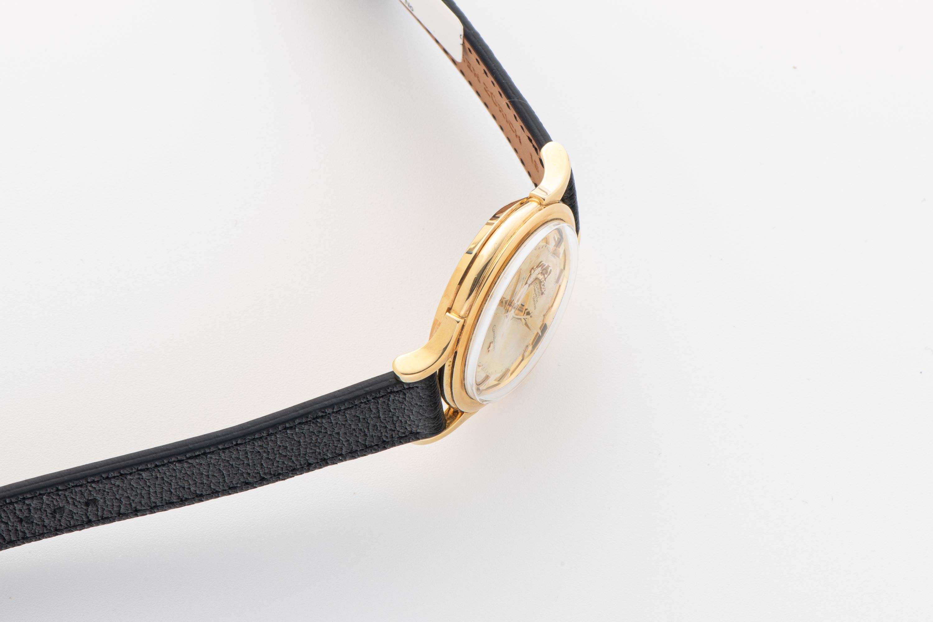 DialGold 'pie pan' dial with applied indices, gold hands and indices, signed 'Omega' at 12 o'clock with applied Omega logo and Constellation star