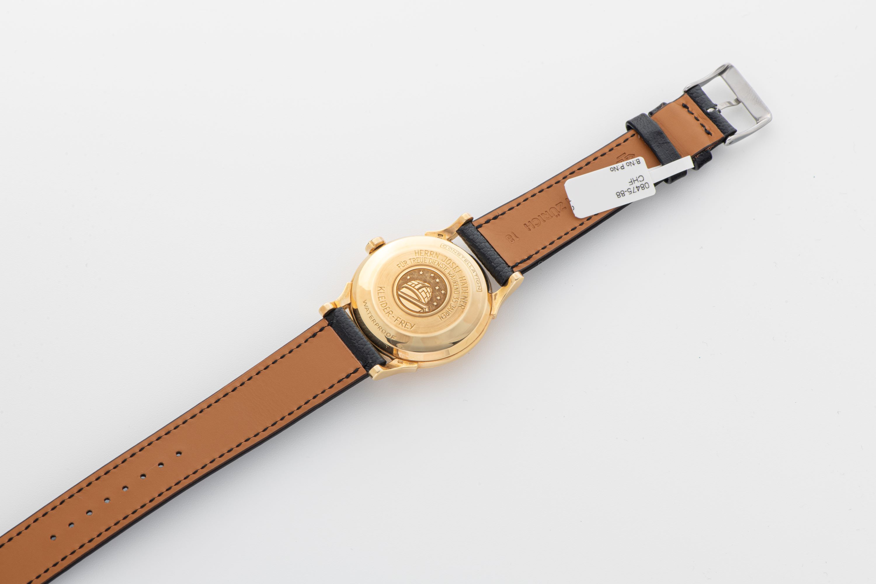 CaseRound case in 18k yellow gold with Constellation caseback, personalized engraving, crown at 3 o'clock