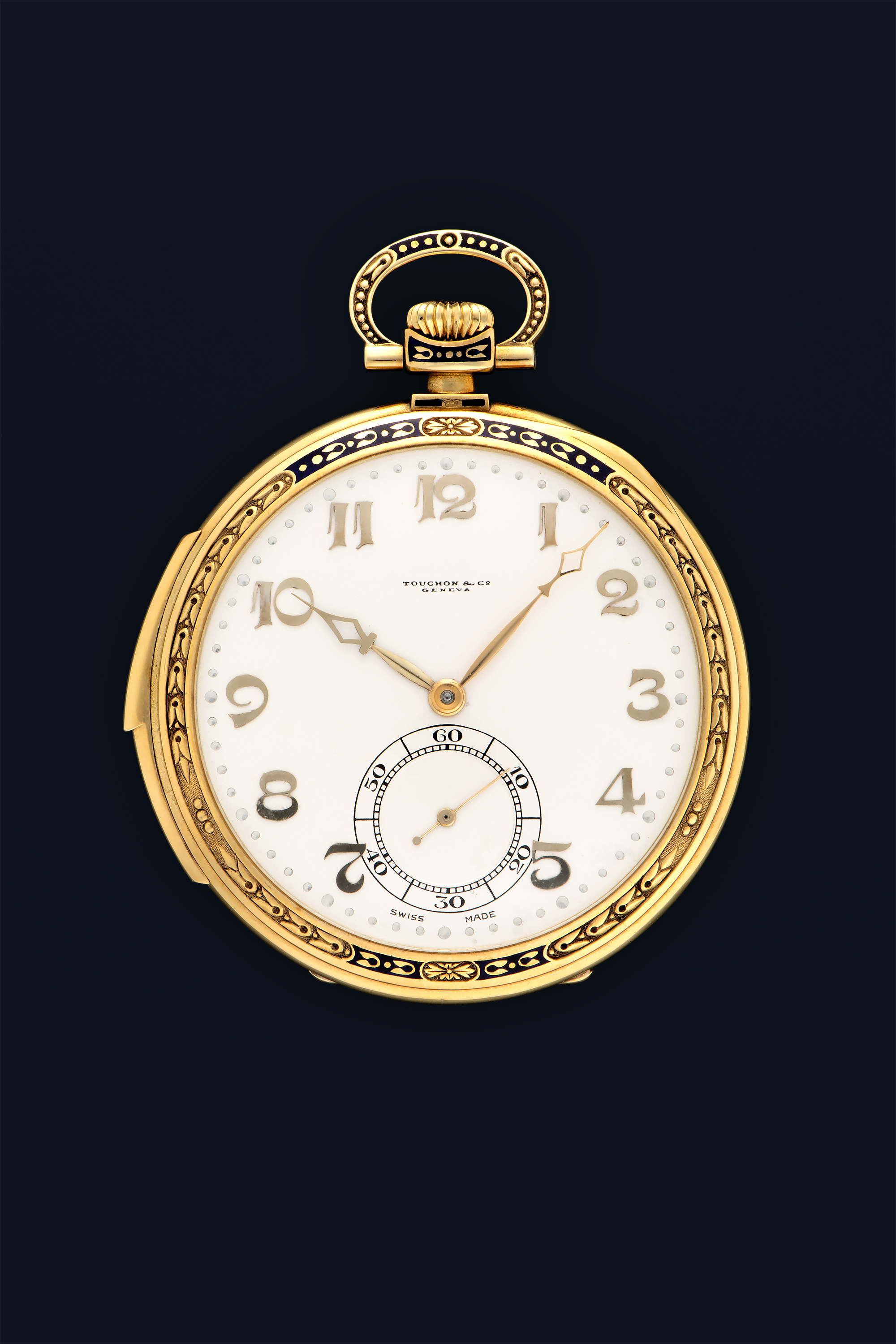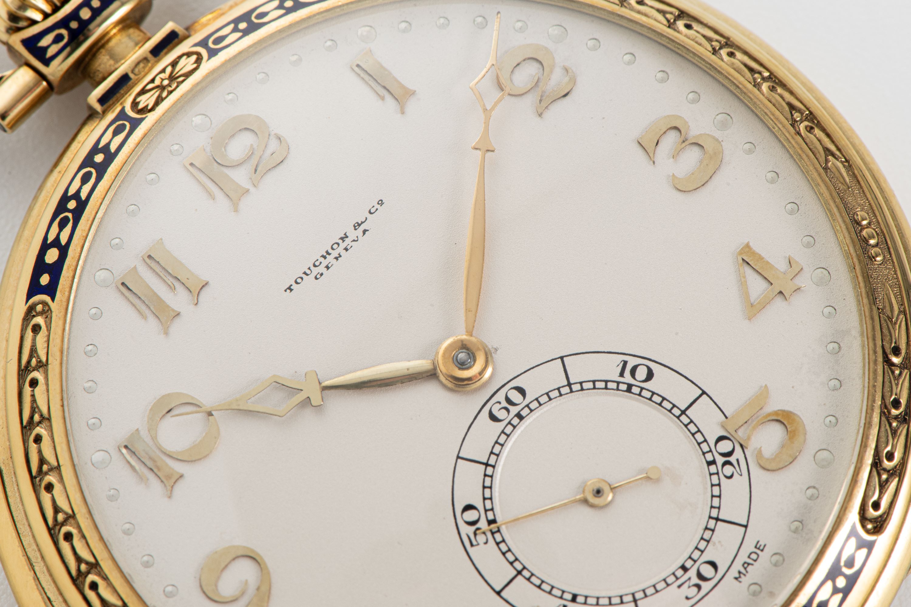 DialSilver-white dial with applied numerals, skeletonized diamond-shaped hands, small seconds at 6 o'clock, signed 'Touchon & Co.' at 12 o'clock