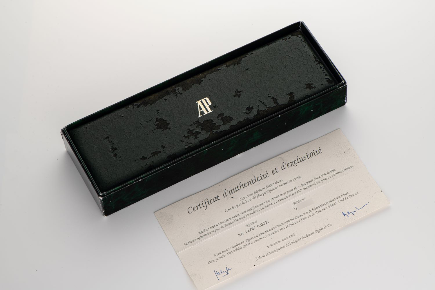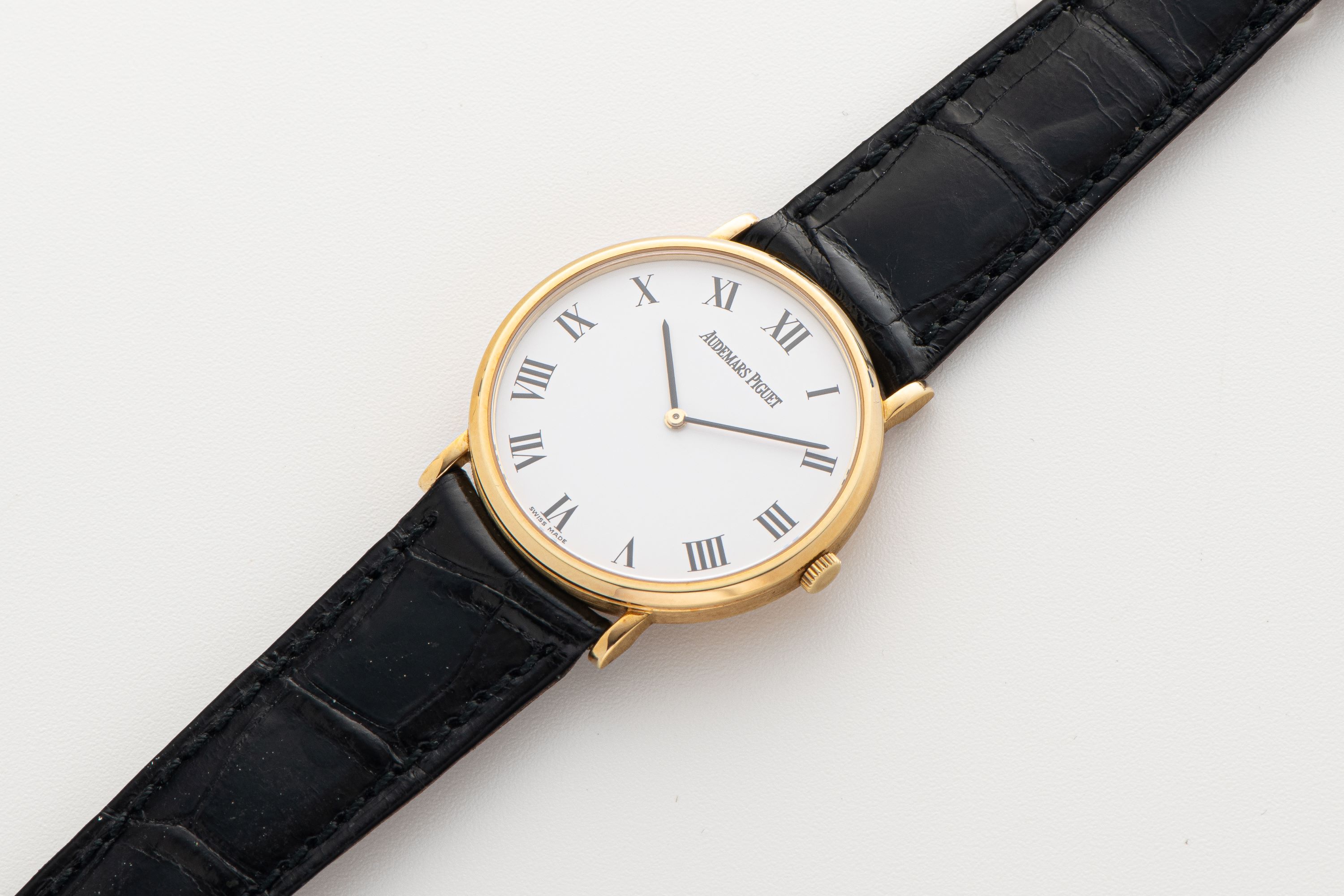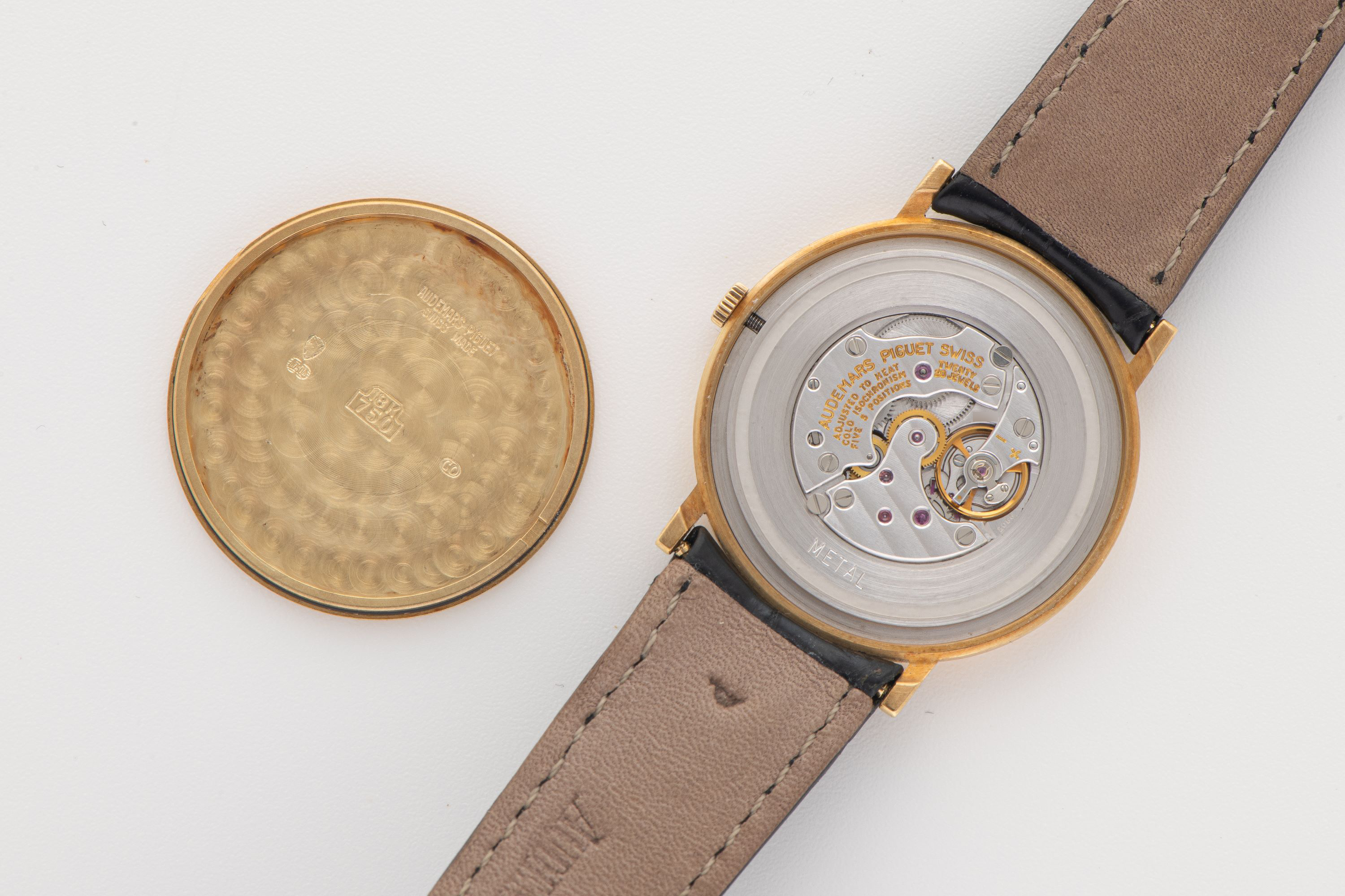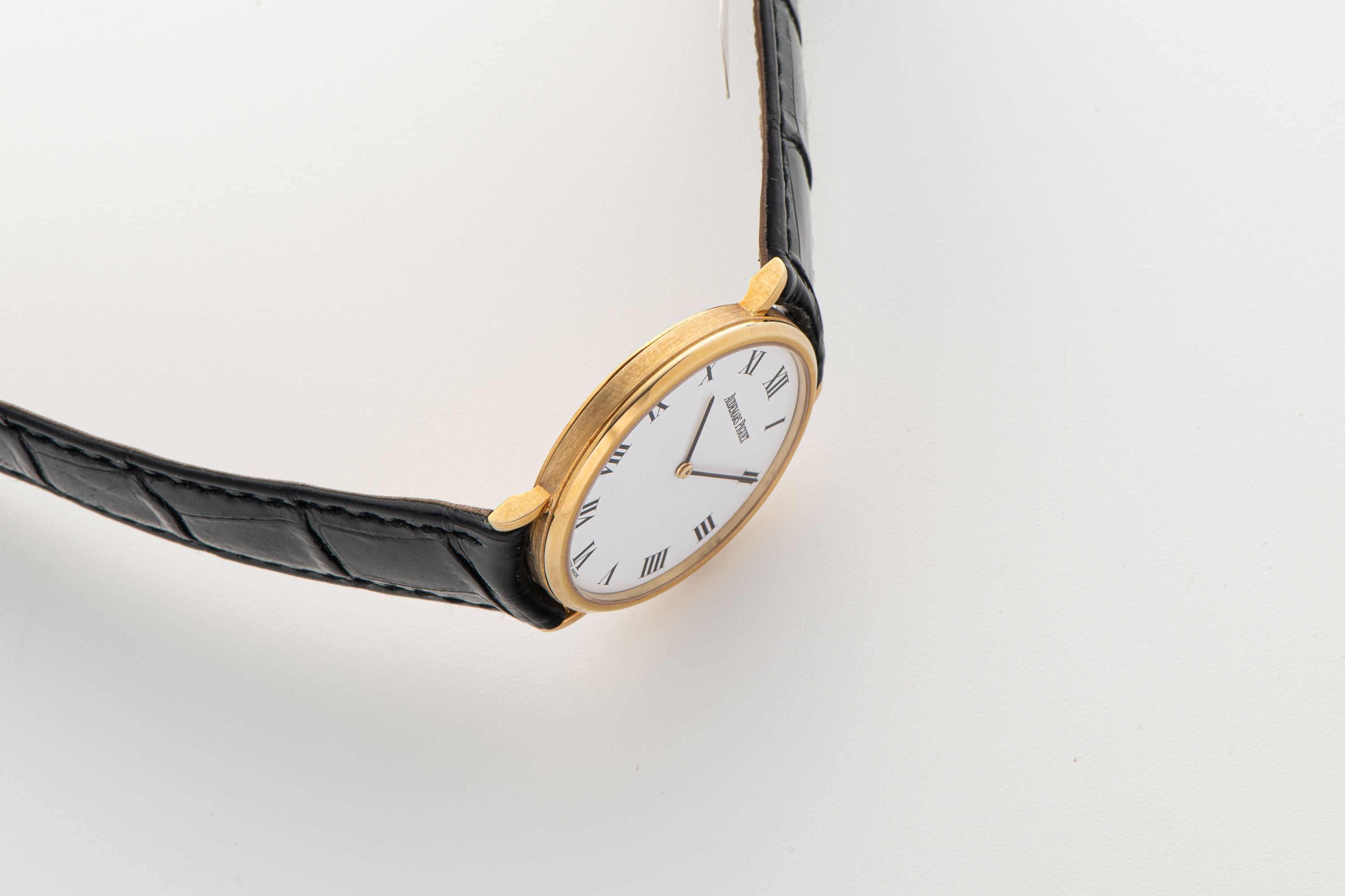 DialWhite dial with roman numerals, black hands, signed 'Audemars Piguet' at 12 o'clock