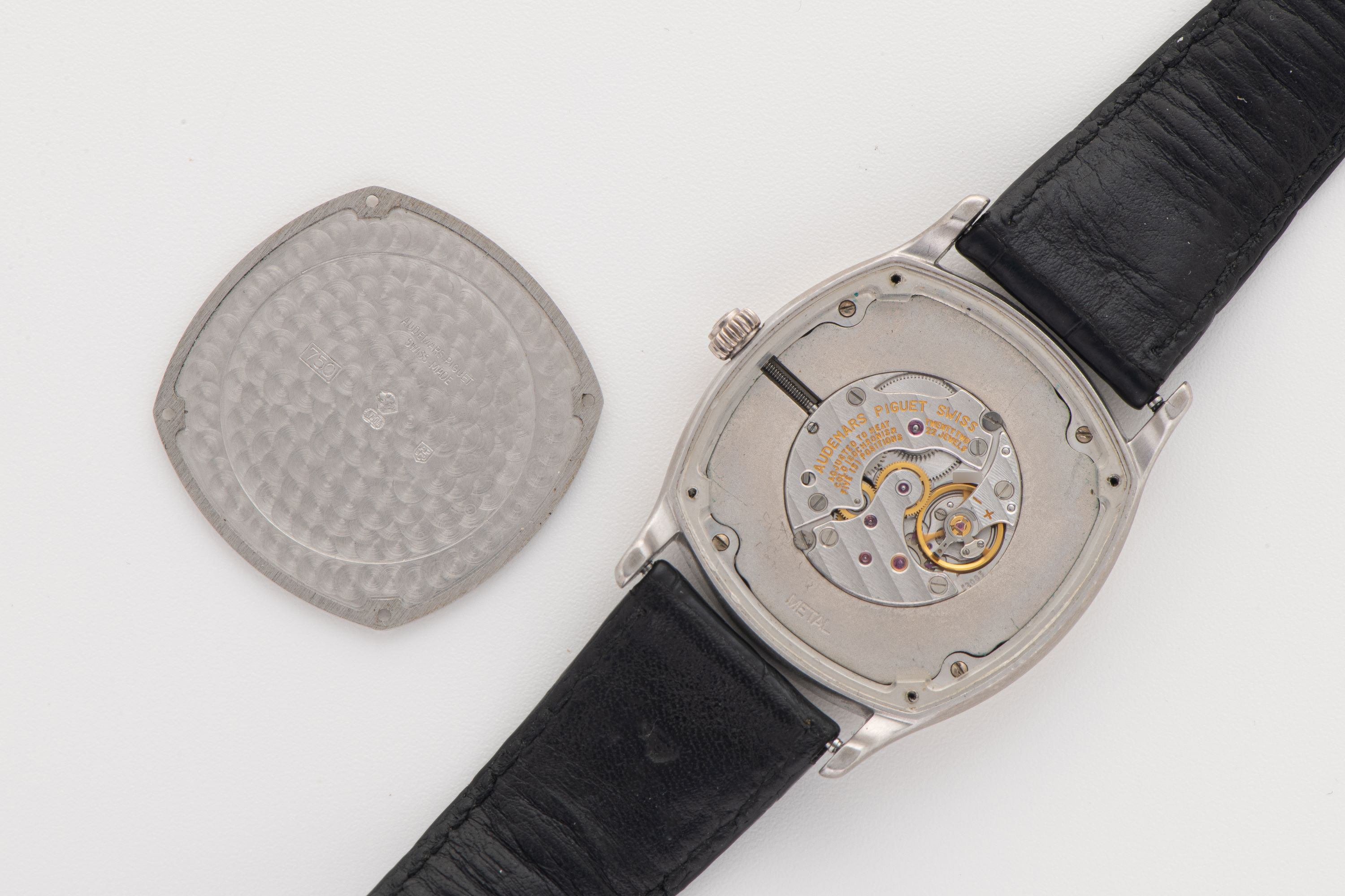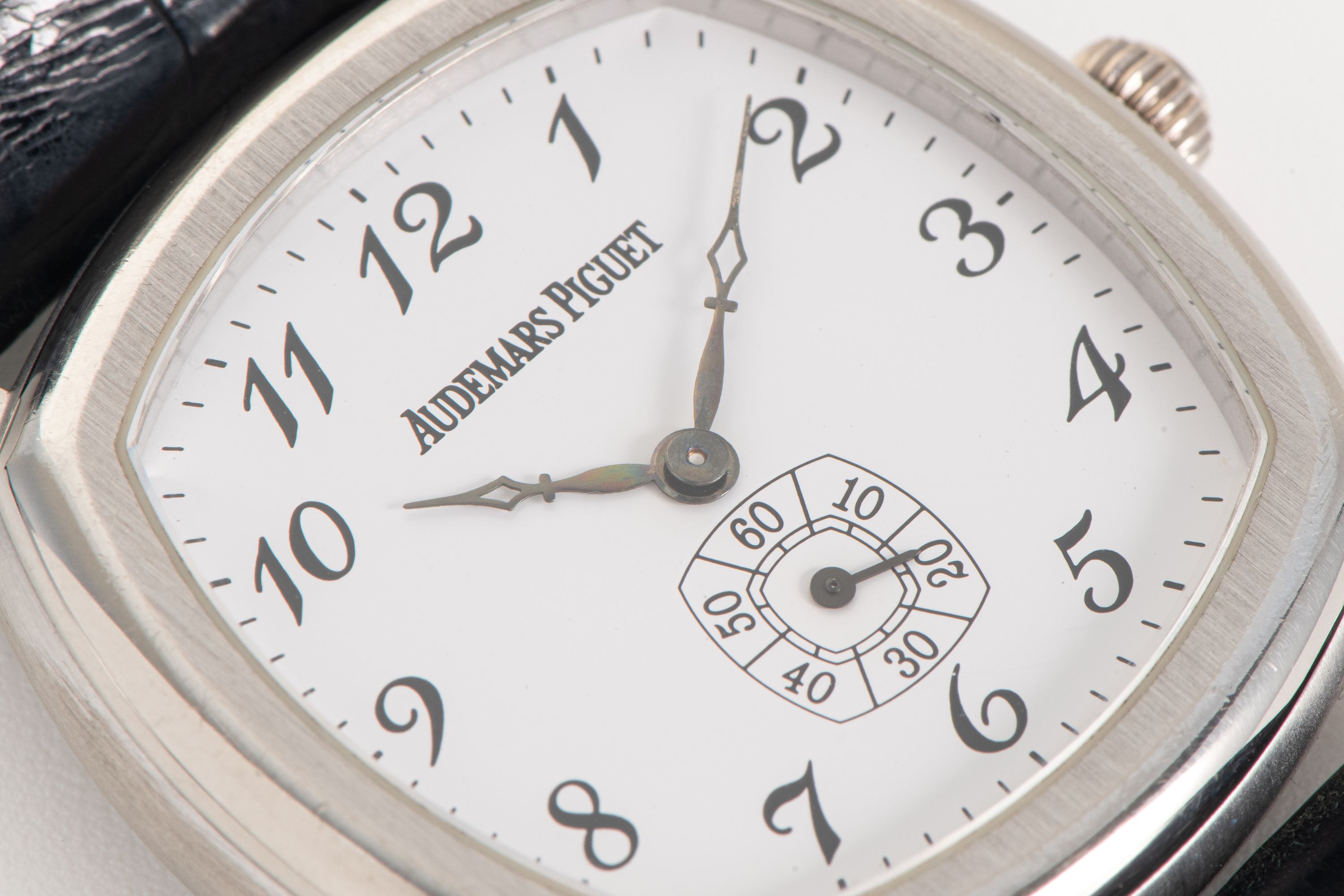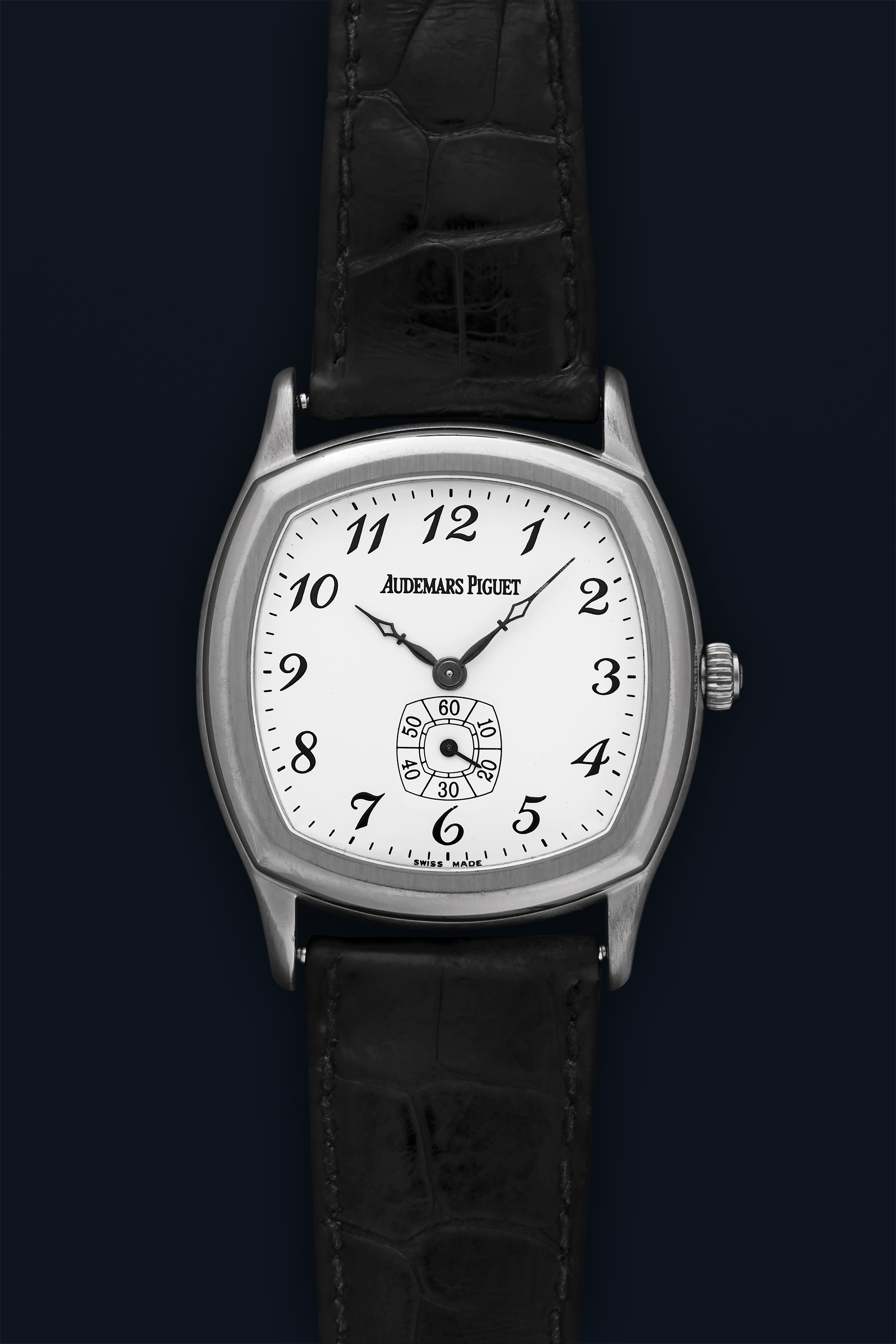 DialWhite lacquer dial with arabic numerals, black hands, small seconds at 6 o'clock, signed 'Audemars Piguet' at 12 o'clock