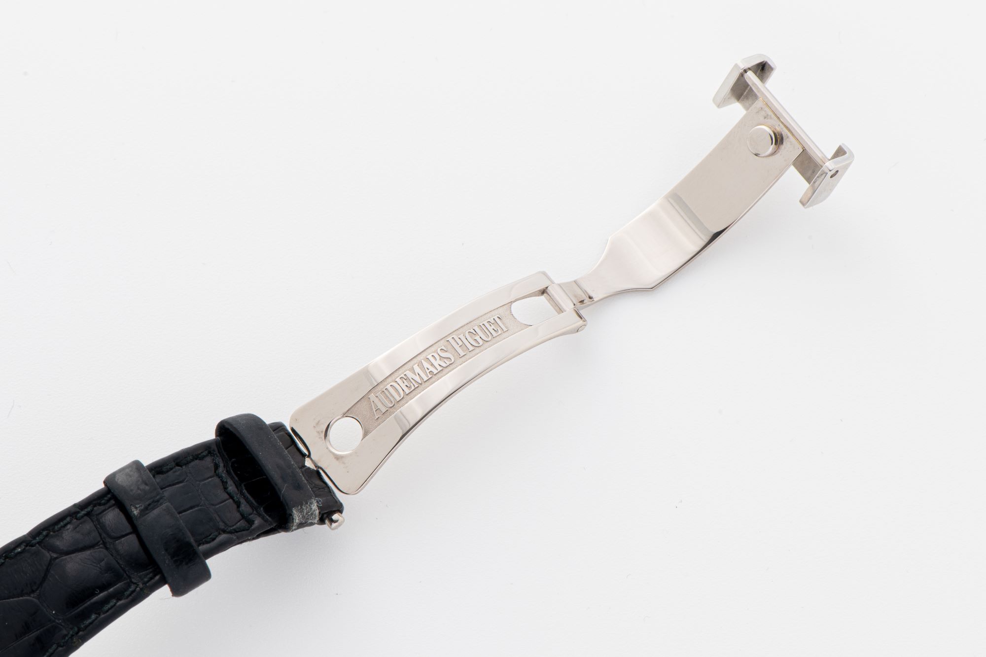 StrapBlack alligator leather strap with AP deployant clasp in 18k white gold