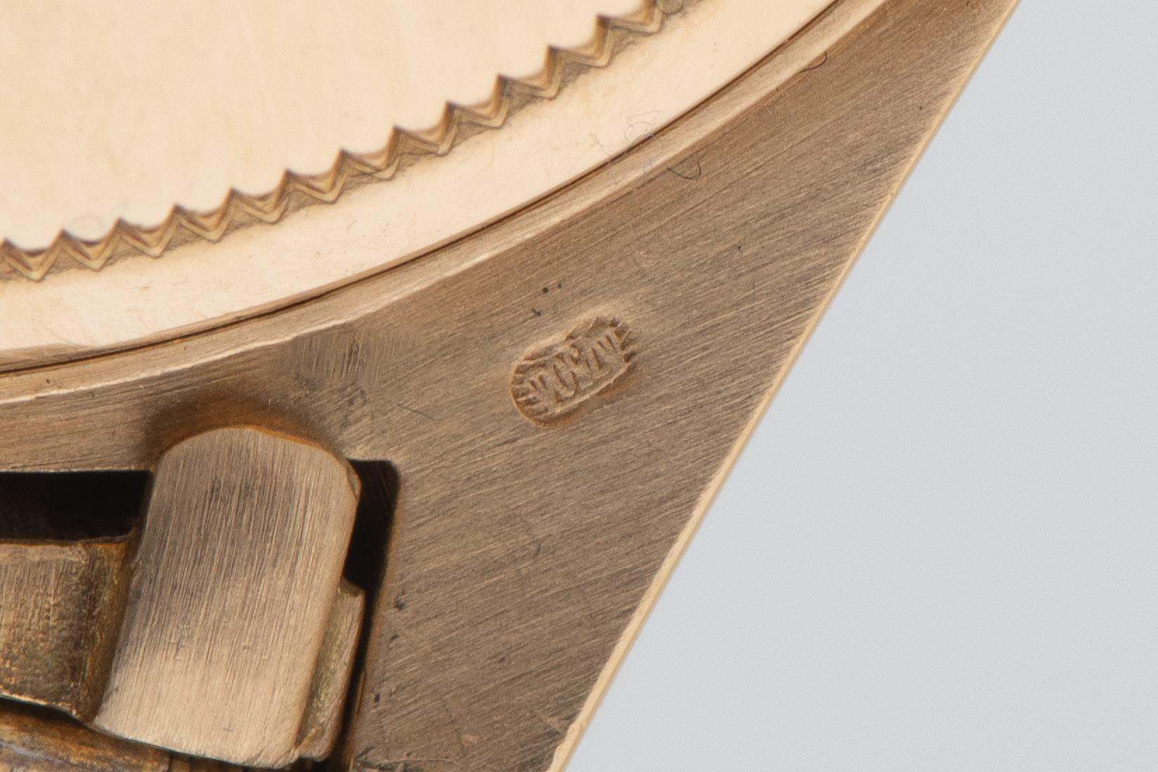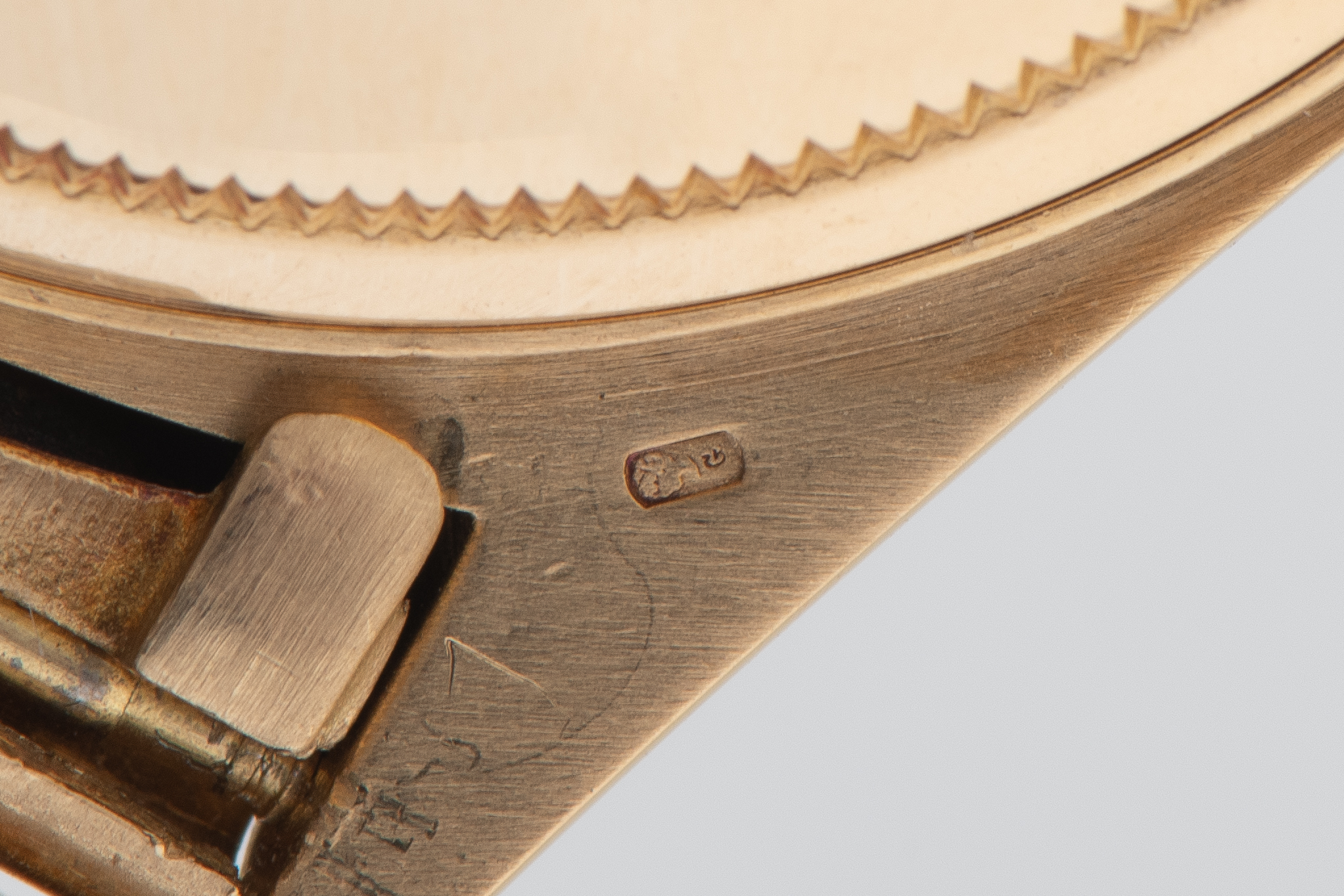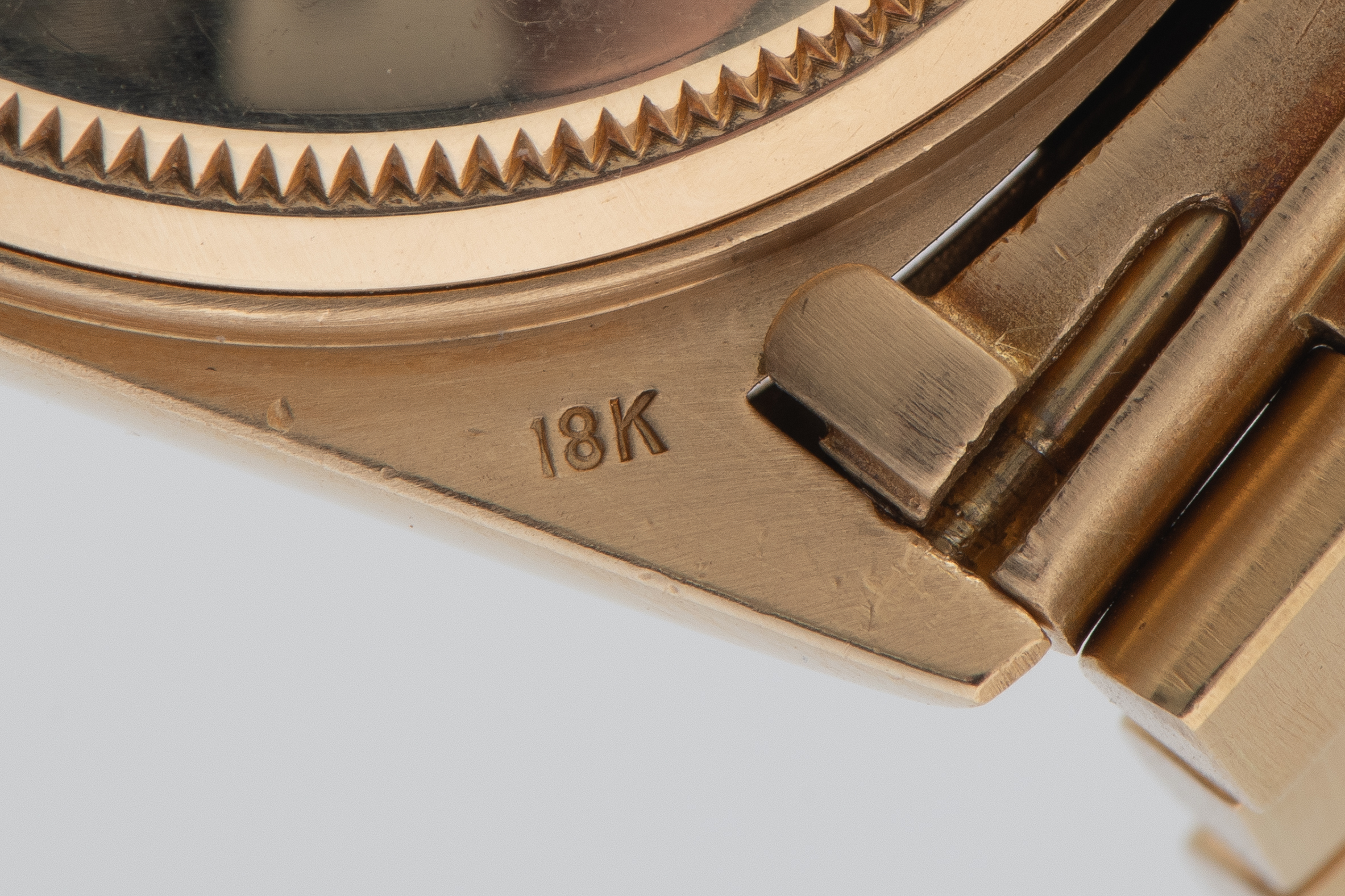 CaseRound case in 18k yellow gold with fluted bezel, crown at 3 o'clock
