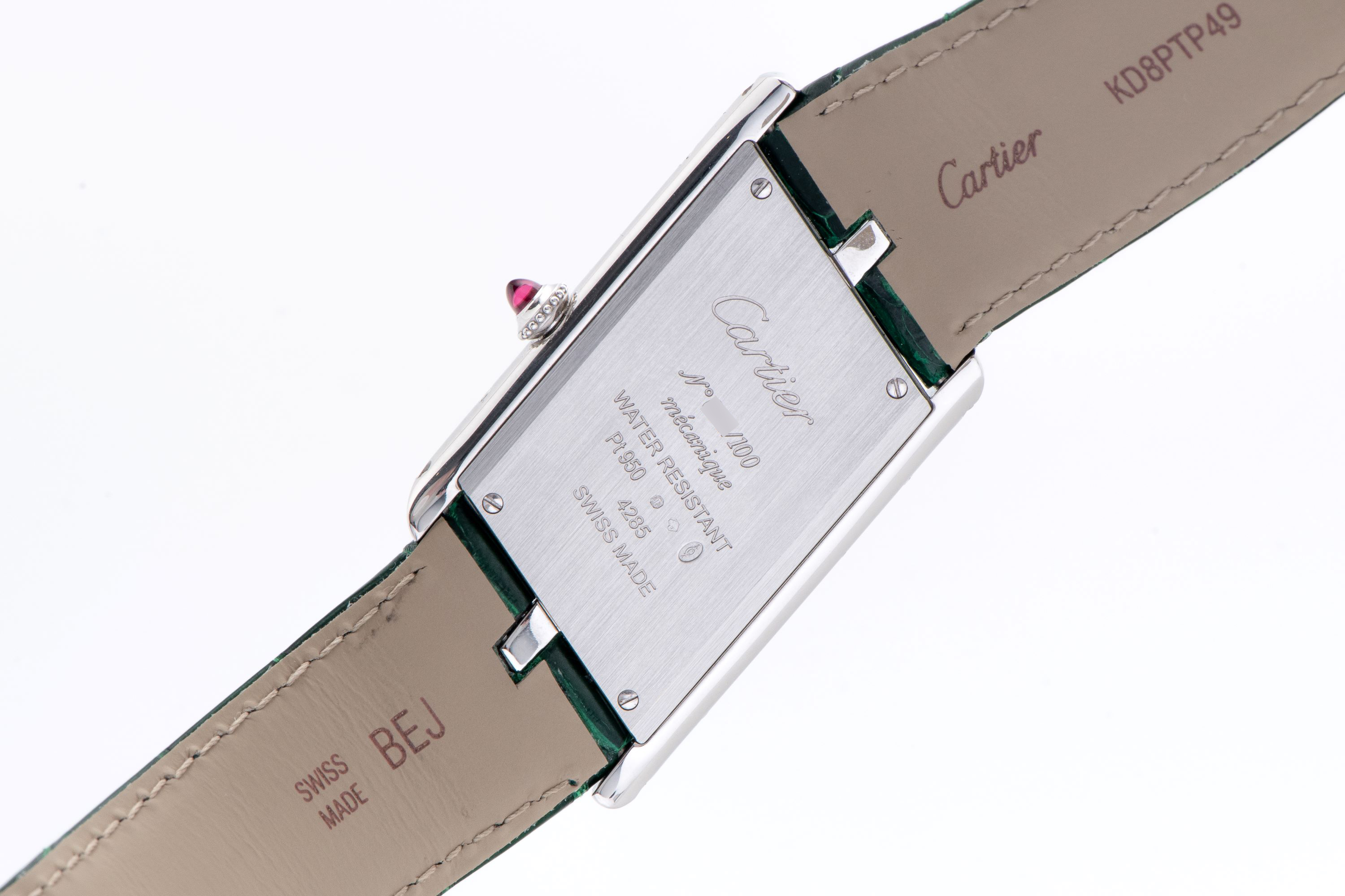 StrapGreen alligator leather strap with Cartier pin buckle in platinum