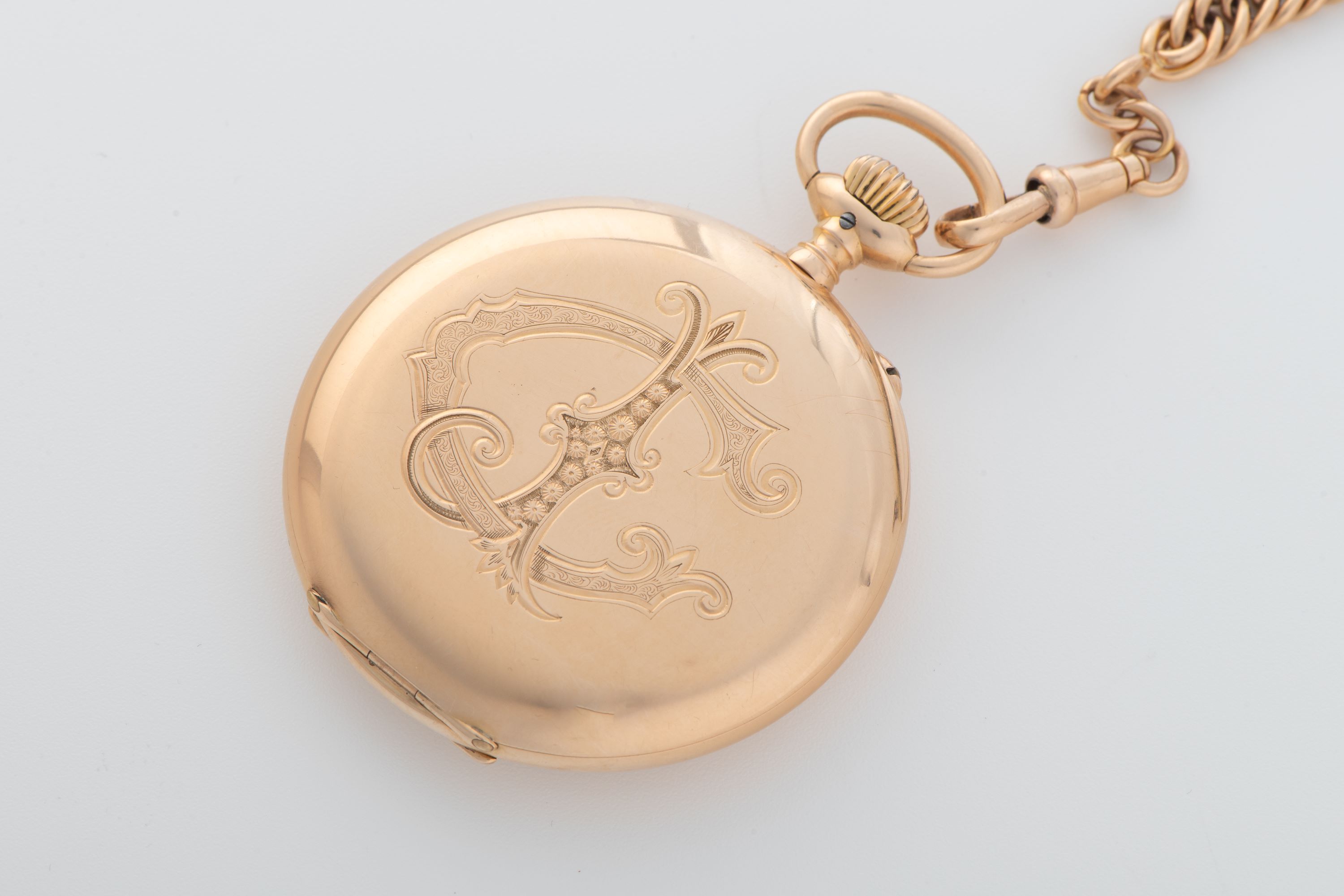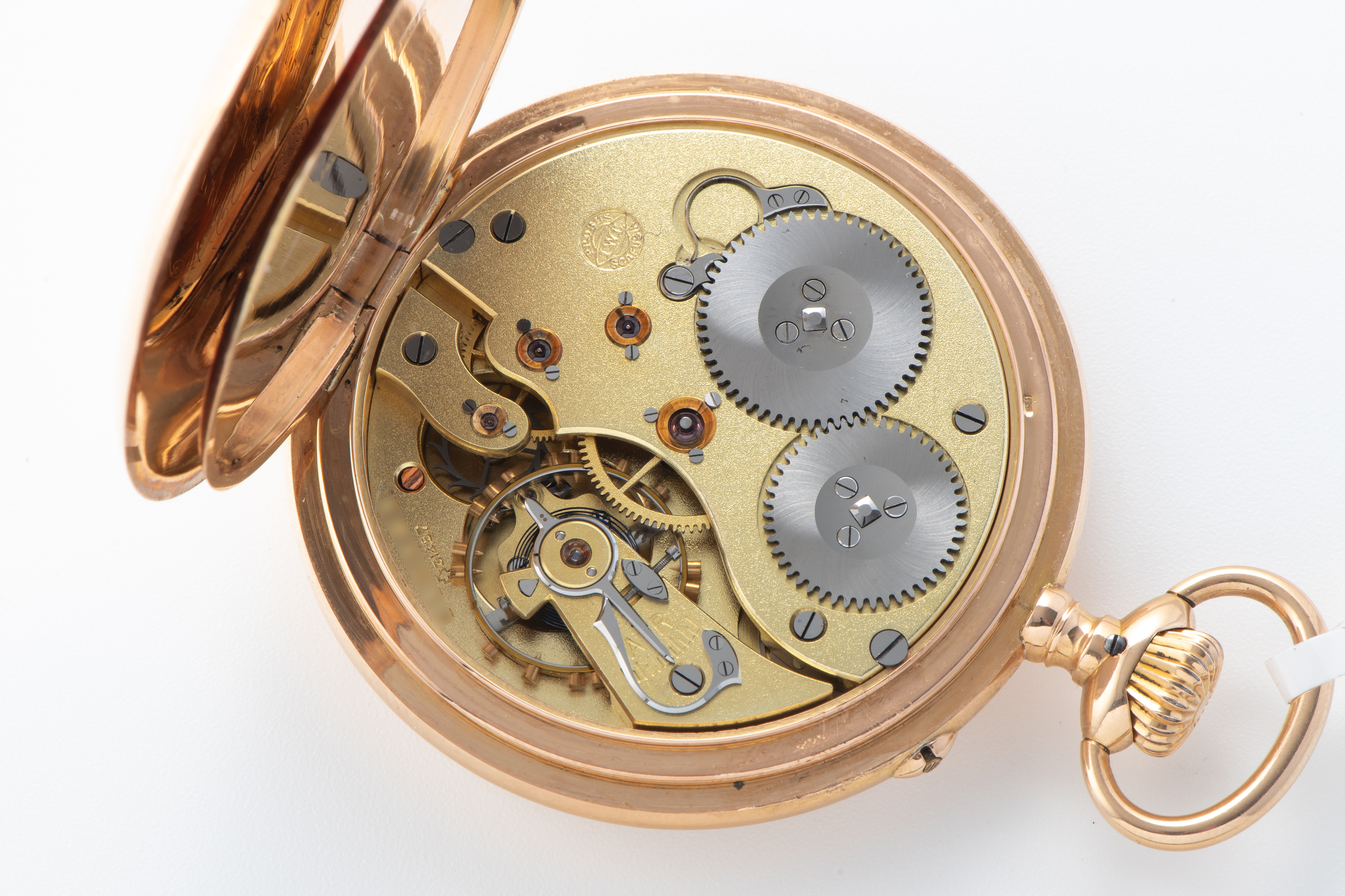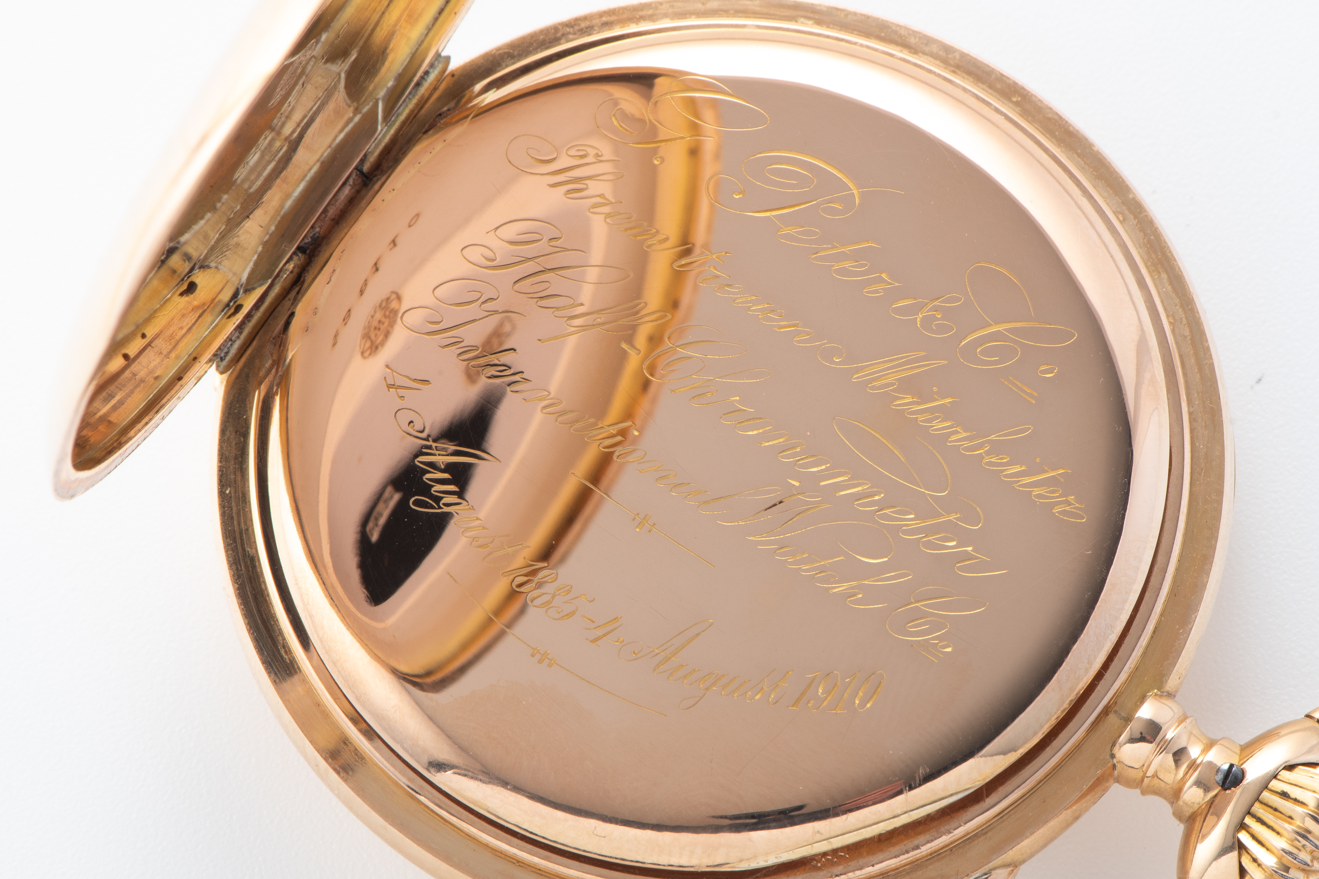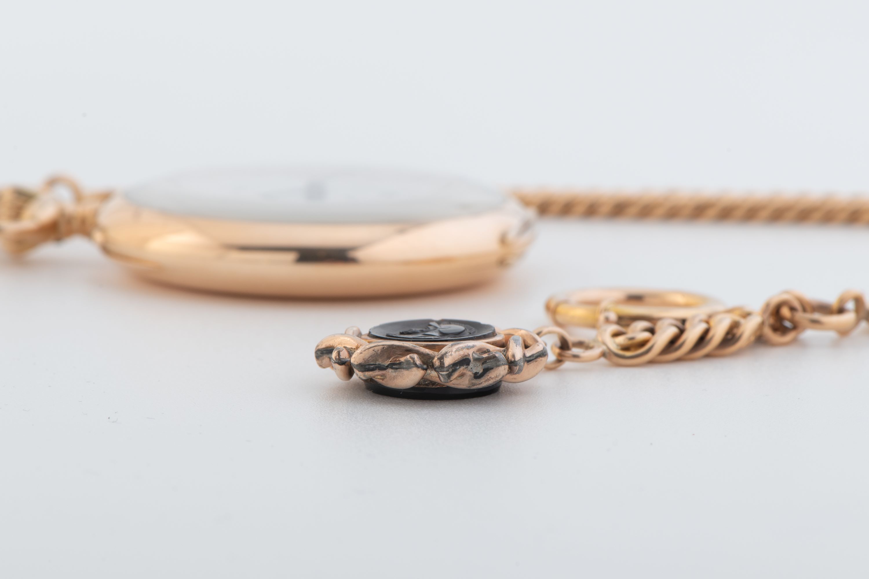 CaseRound case in 18k rose gold with double lid caseback in 18k rose gold, chain hook and winding crown at 12 o'clock, 'CI' engraving on the caseback