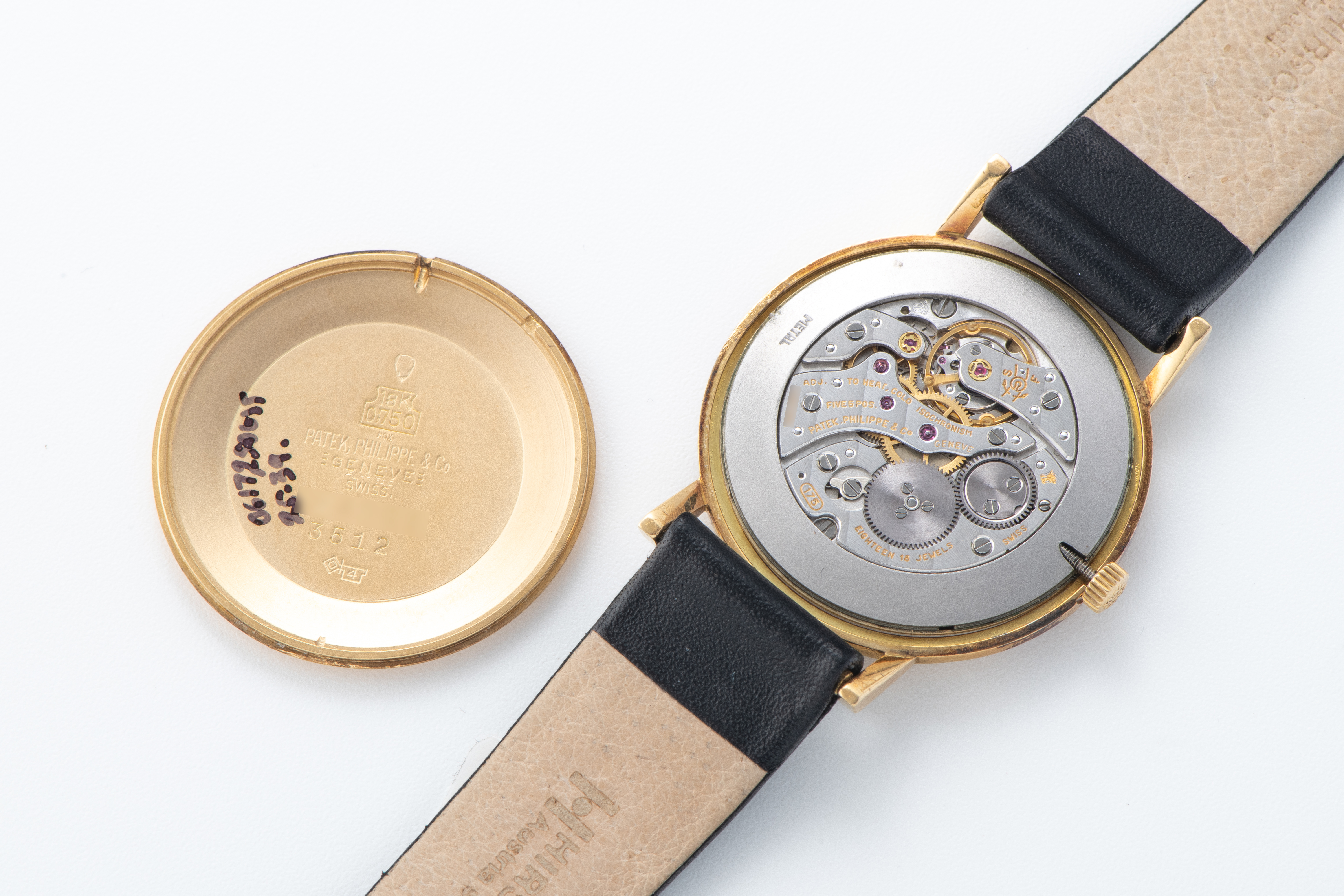 StrapBlack leather strap with original pin buckle in 18k yellow gold