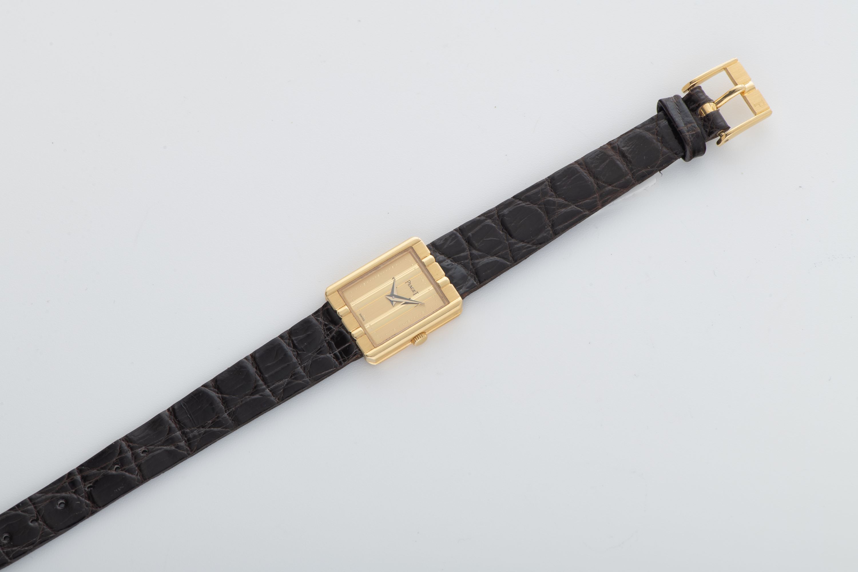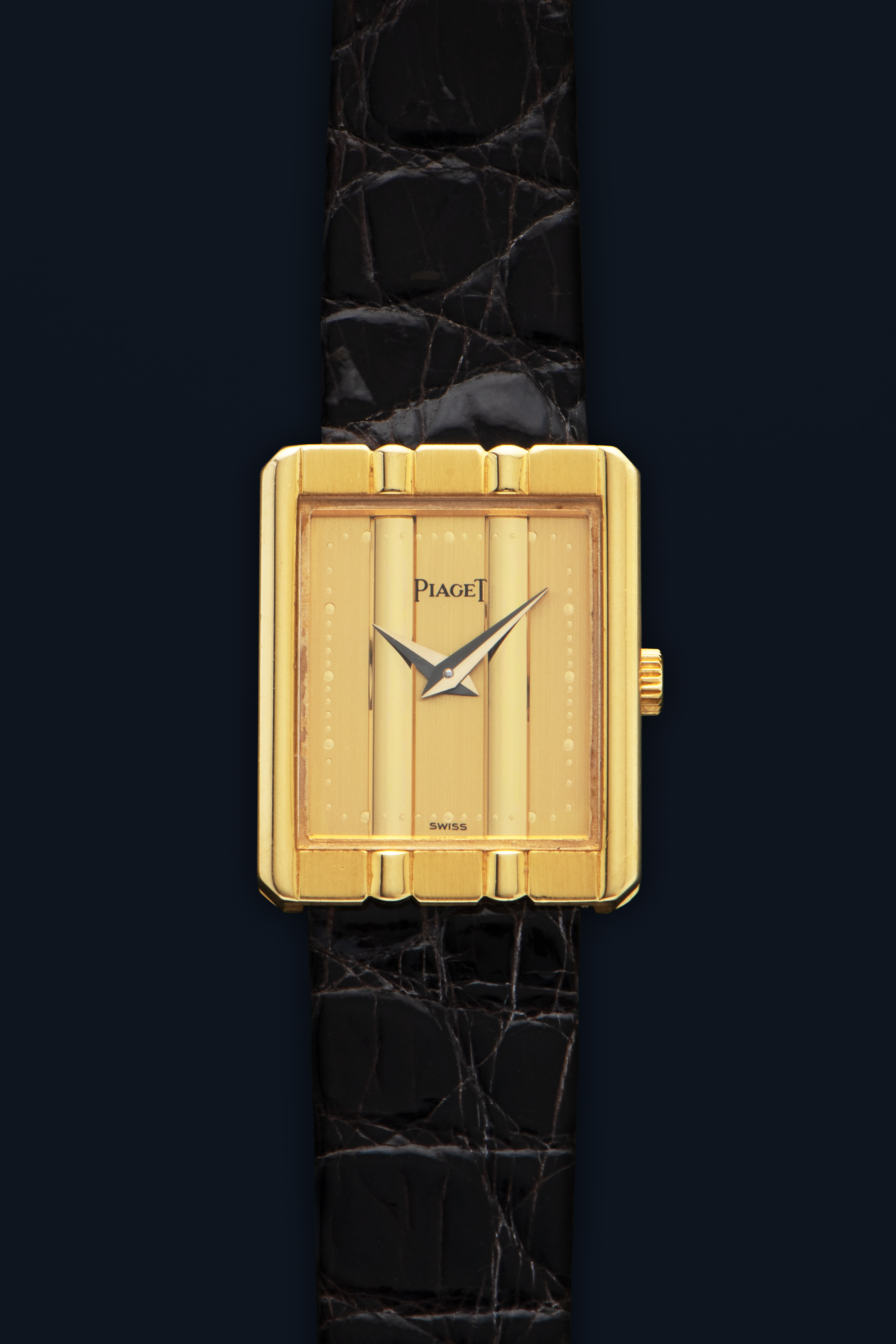 DialGold dial with vertical stripes, dauphine hands, signed 'Piaget' at 12 o'clock