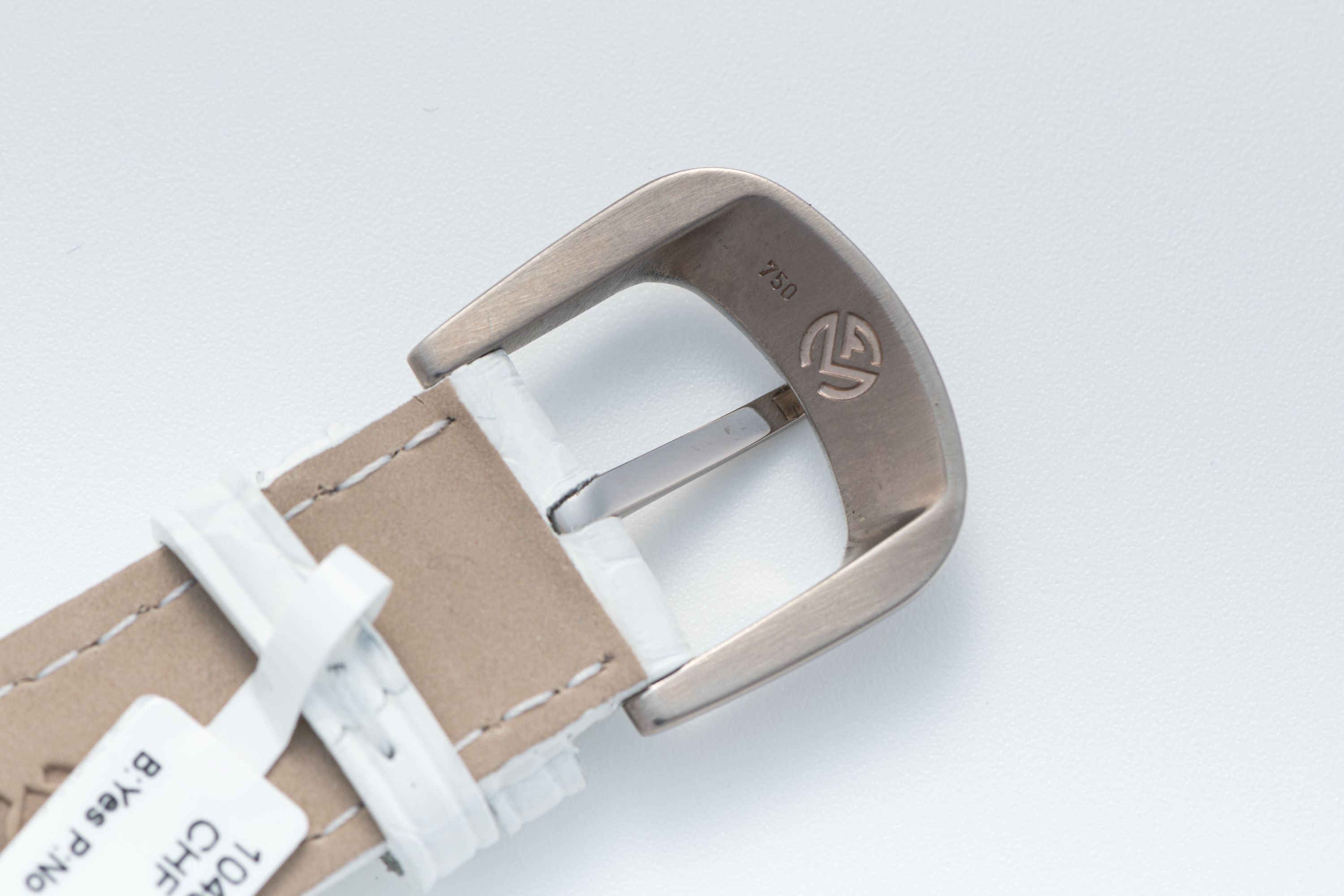 StrapWhite alligator leather strap with pin buckle in 18k white gold