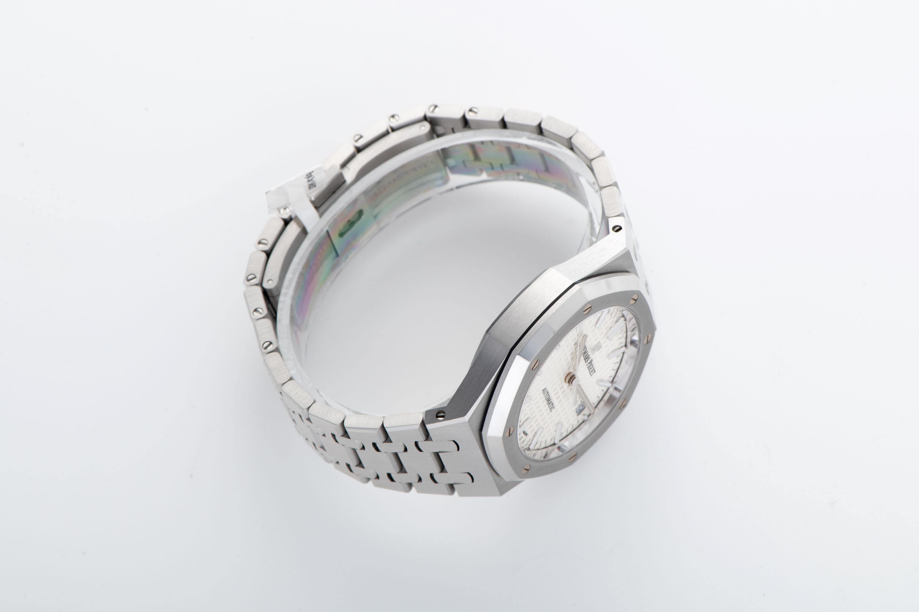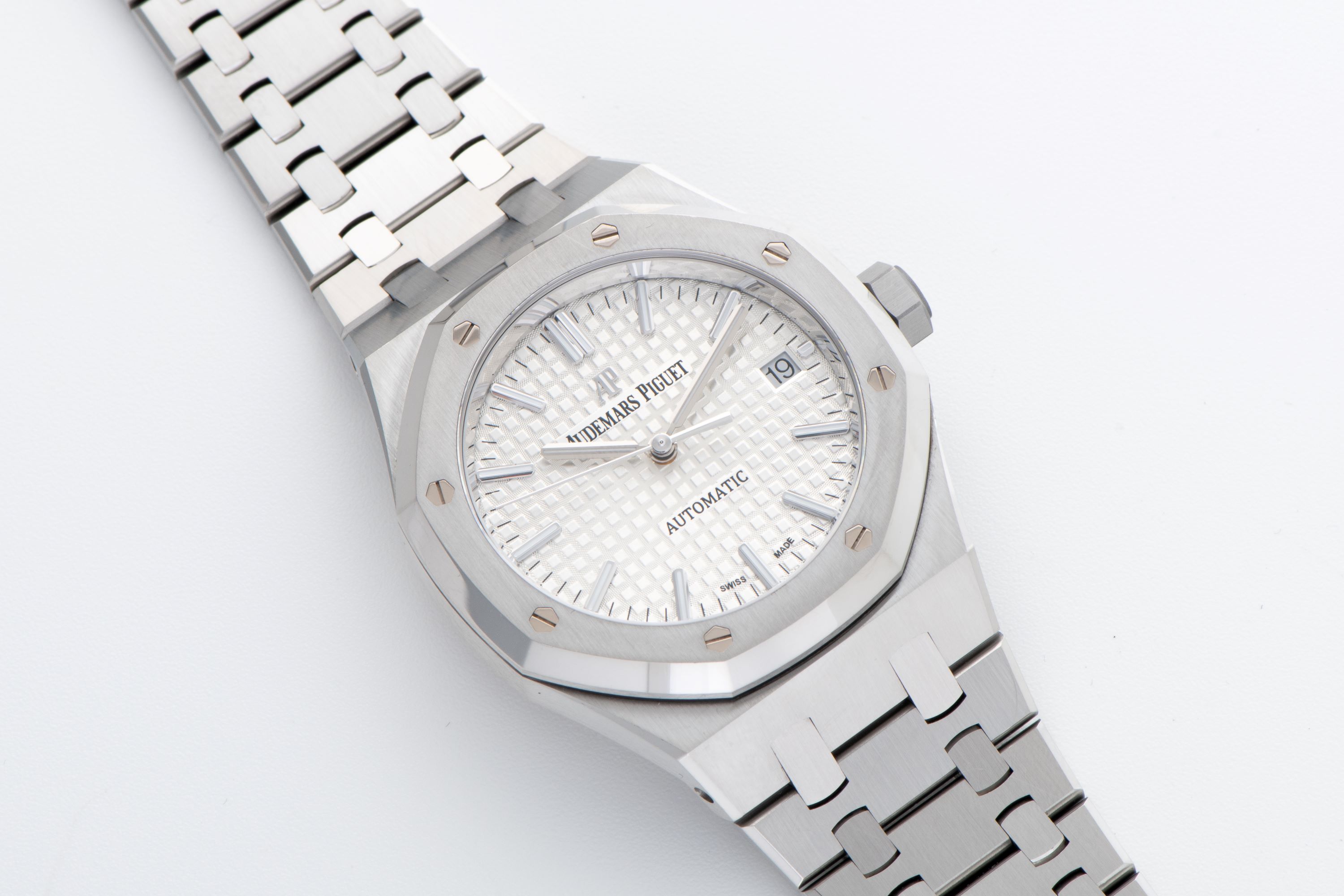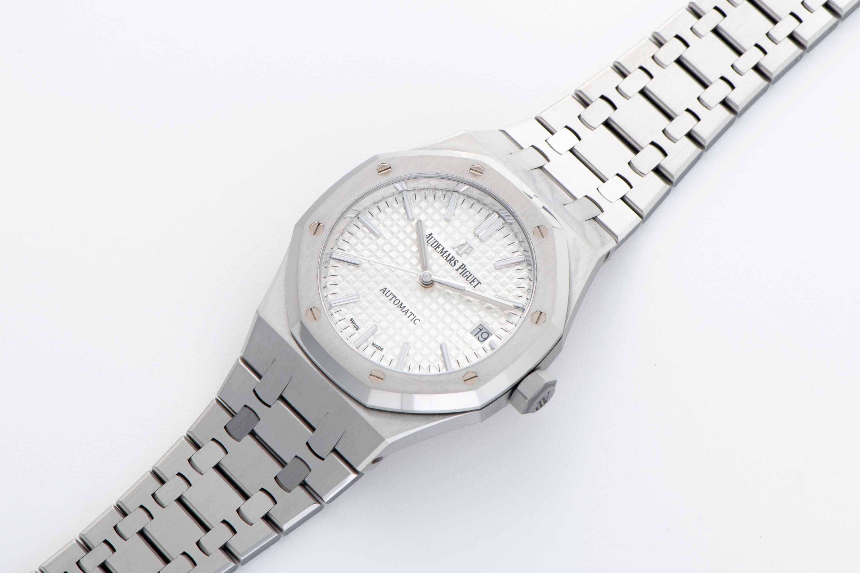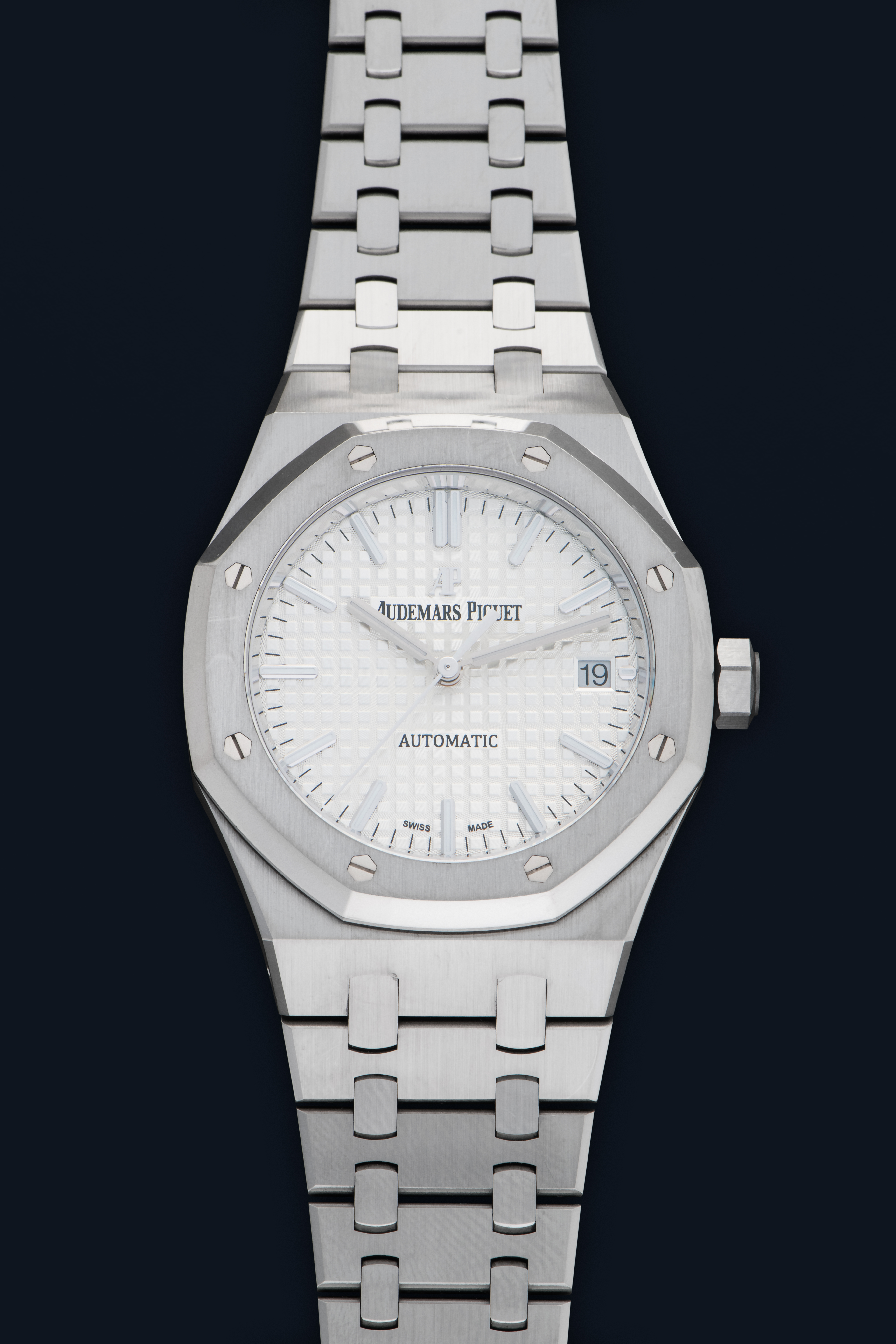 DialSilver-white tapisserie dial with applied luminous indices, luminous hands, date at 3 o'clock, signed 'Audemars Piguet' at 12 o'clock