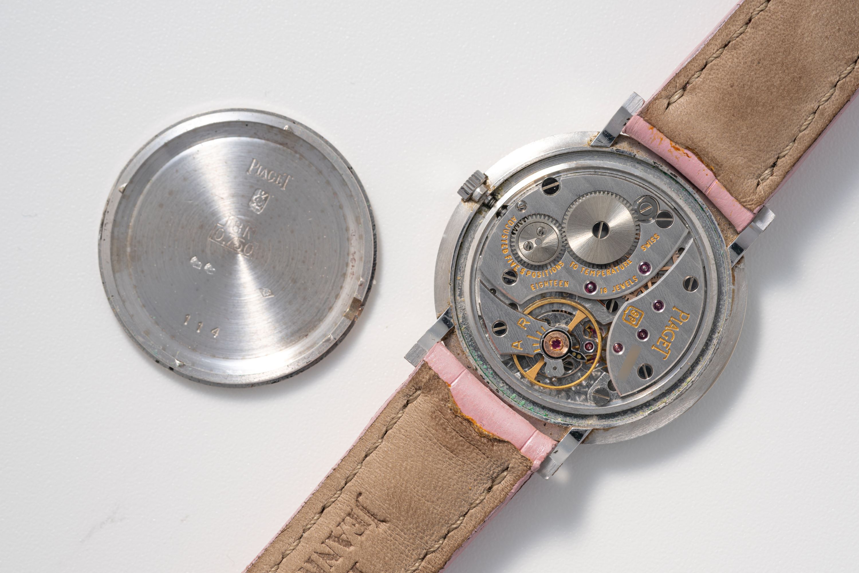 StrapMetallic pink alligator leather strap with Piaget pin buckle in 18k white gold
