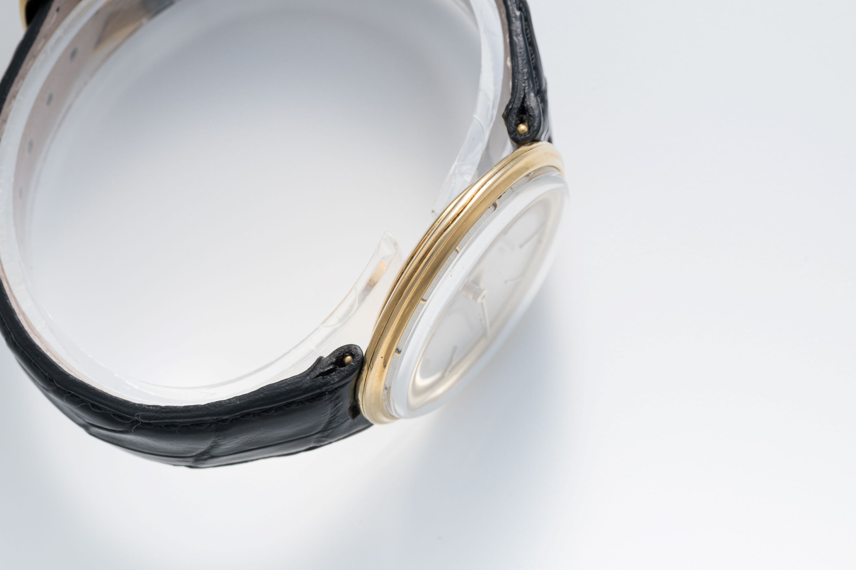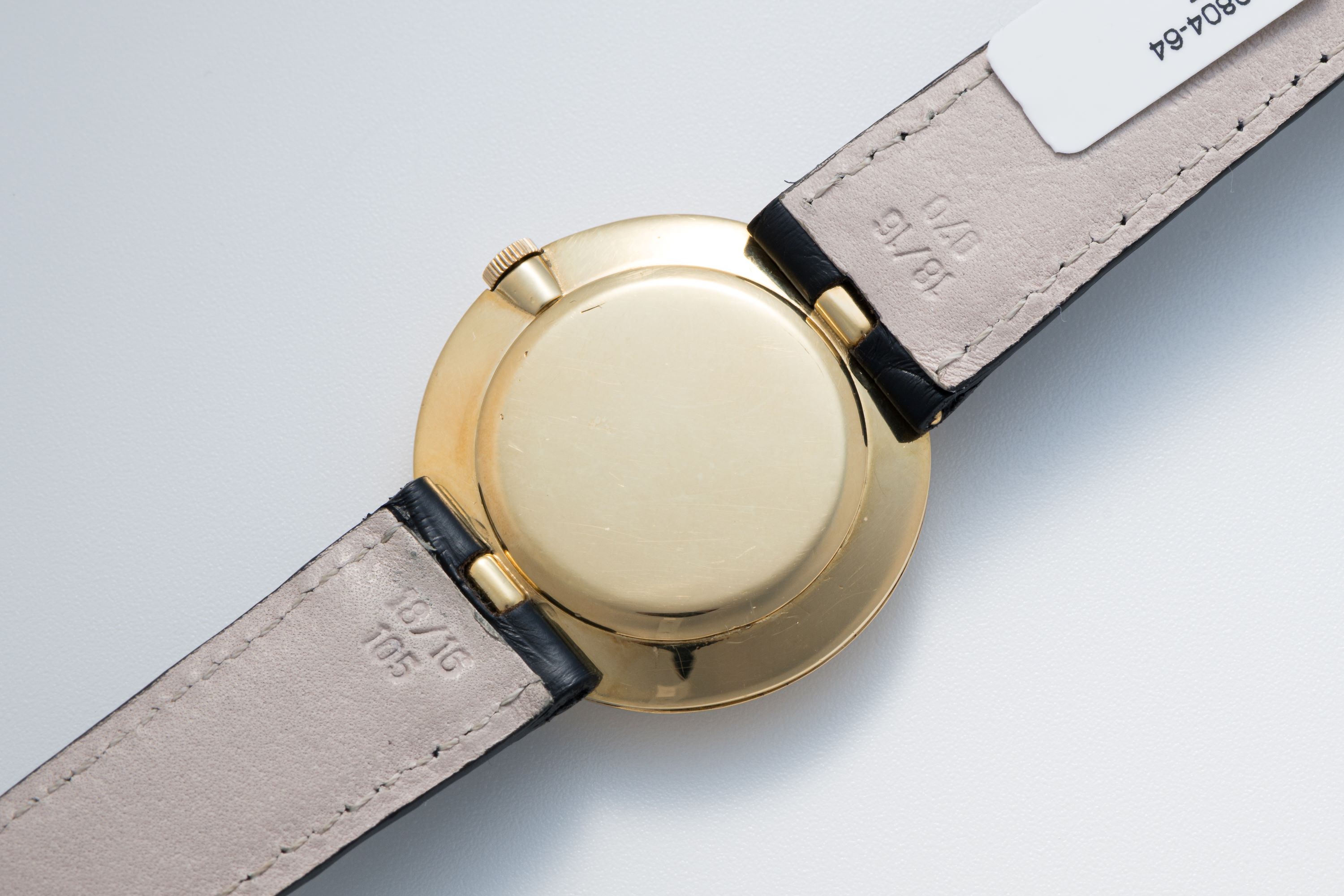 CaseRound case in 18k yellow gold with hidden lugs, winding crown at 3 o'clock