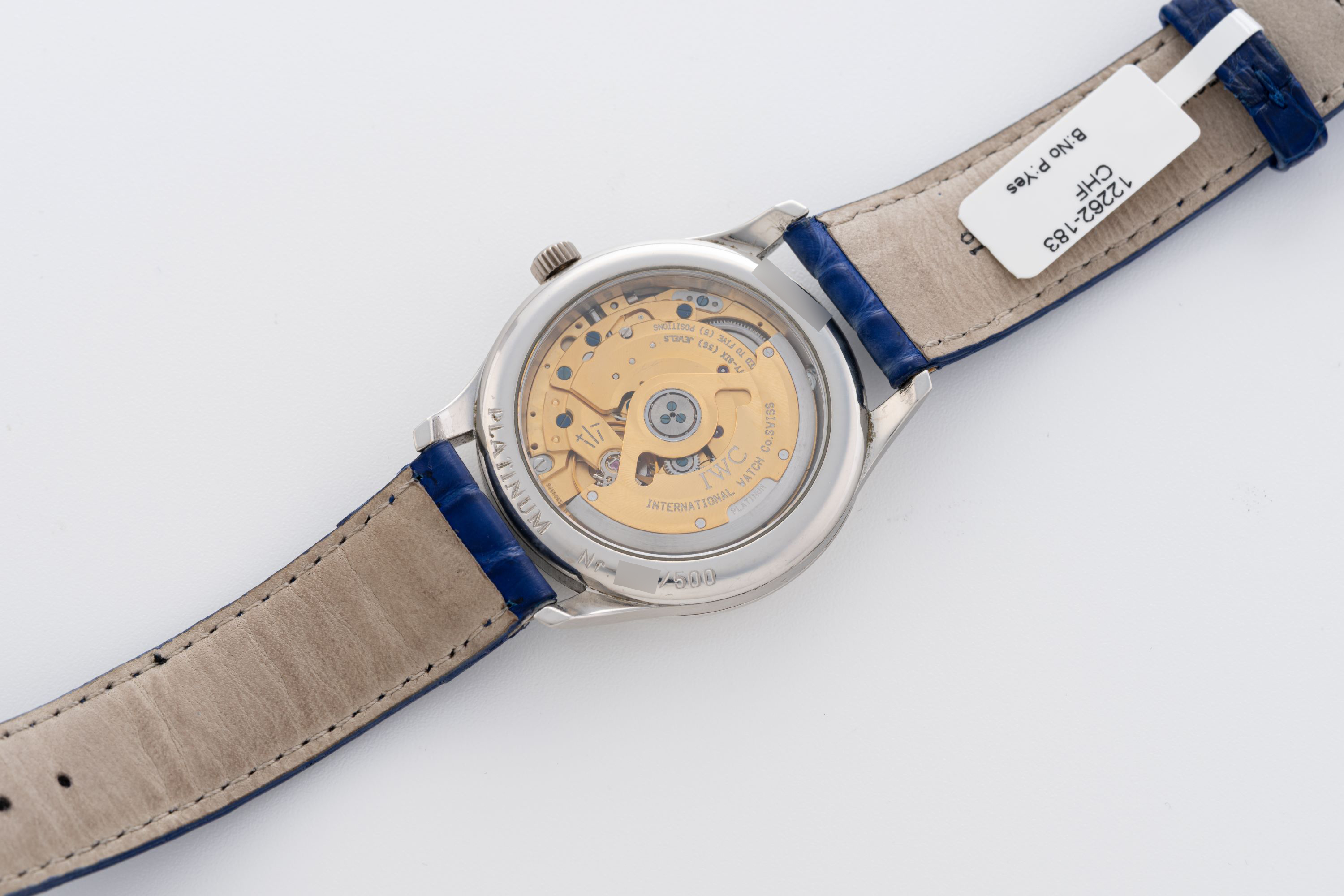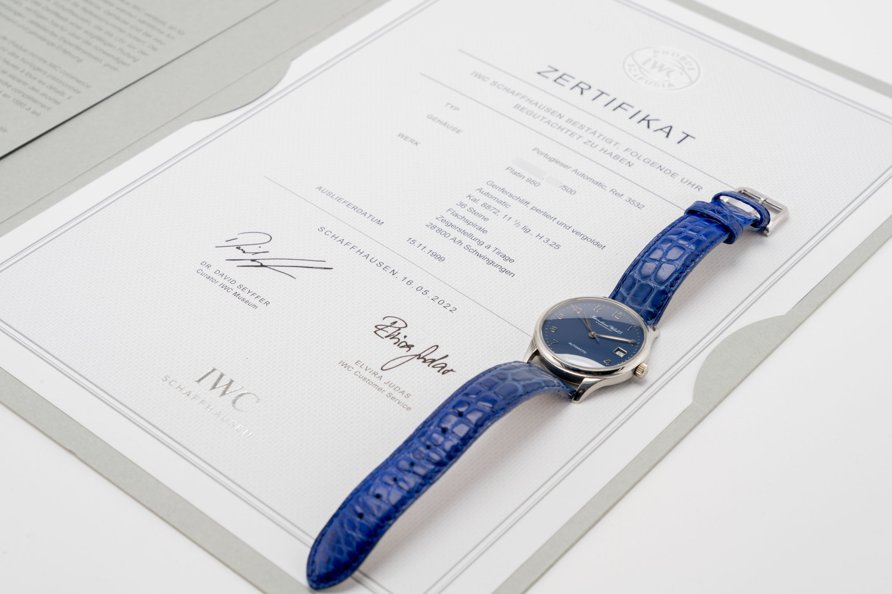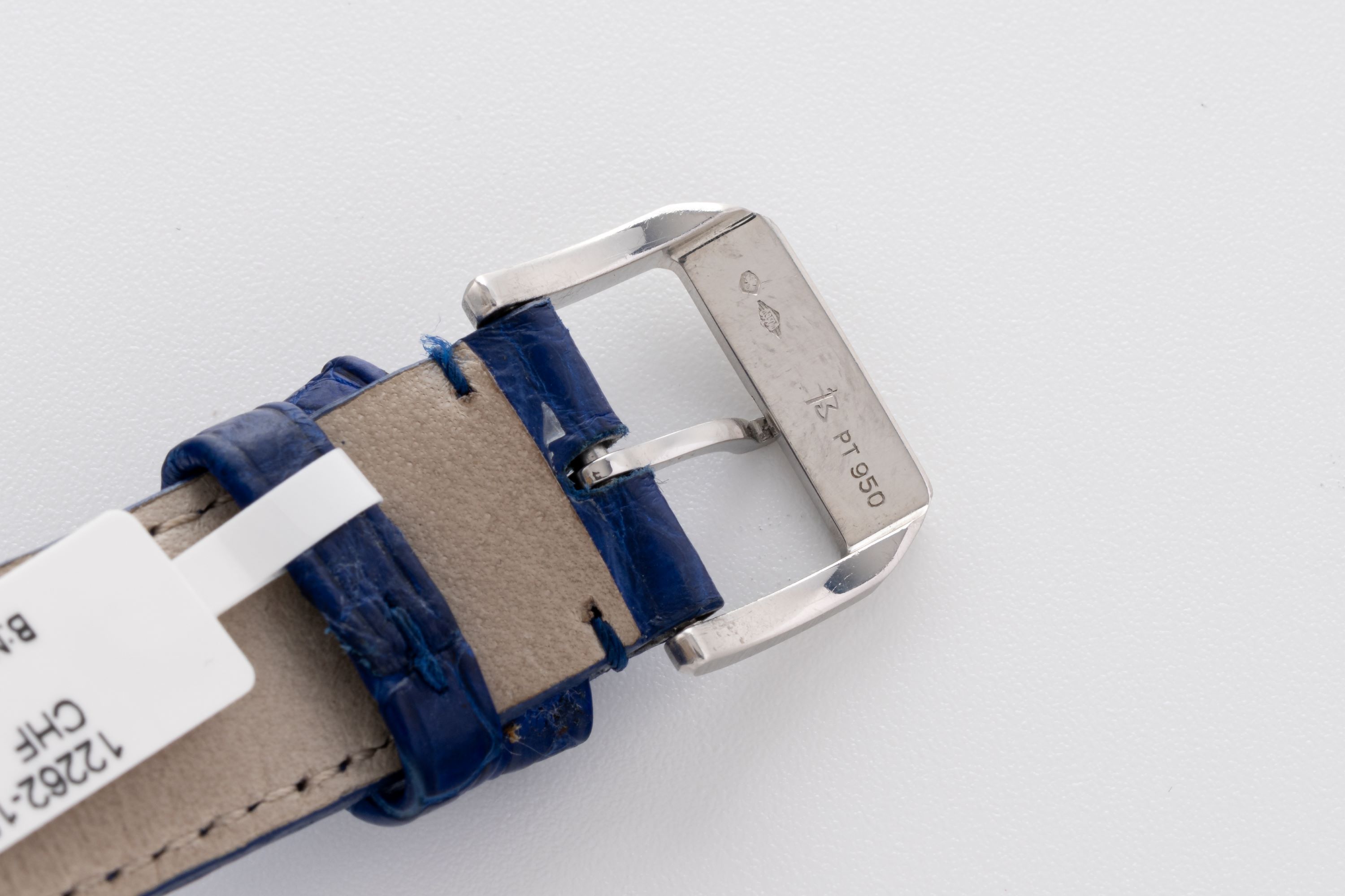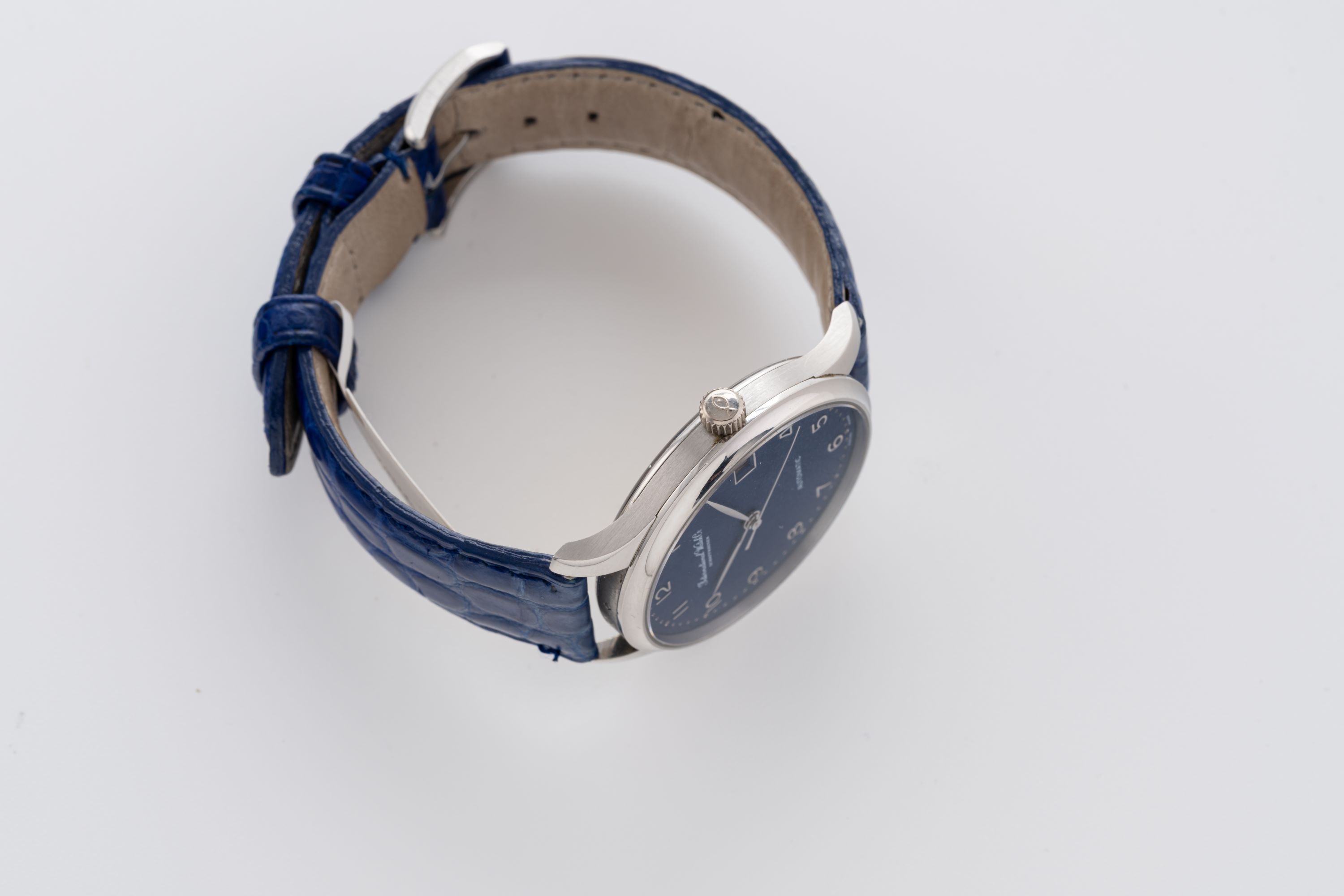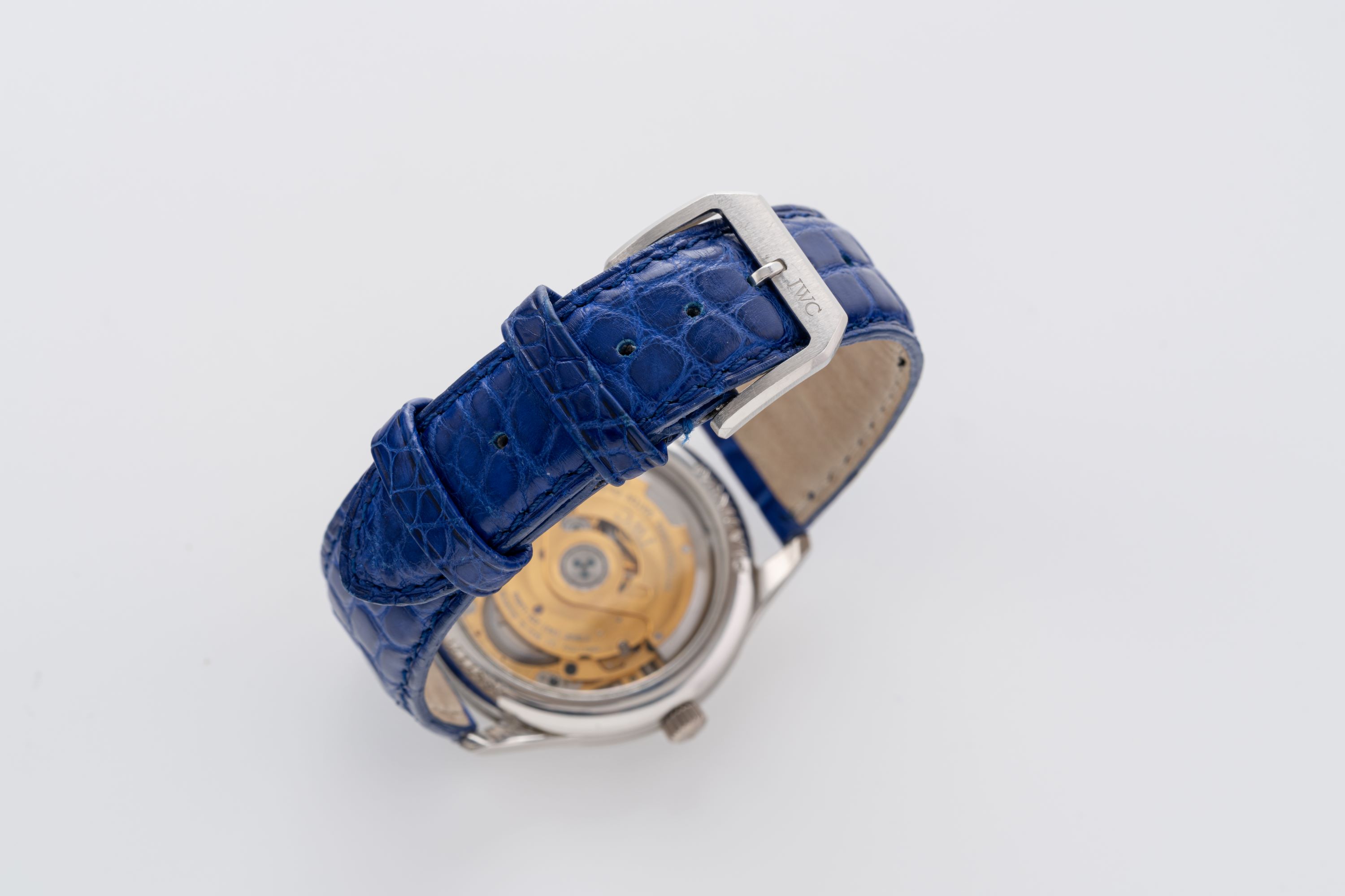 StrapBlue alligator leather strap with IWC pin buckle in platinum