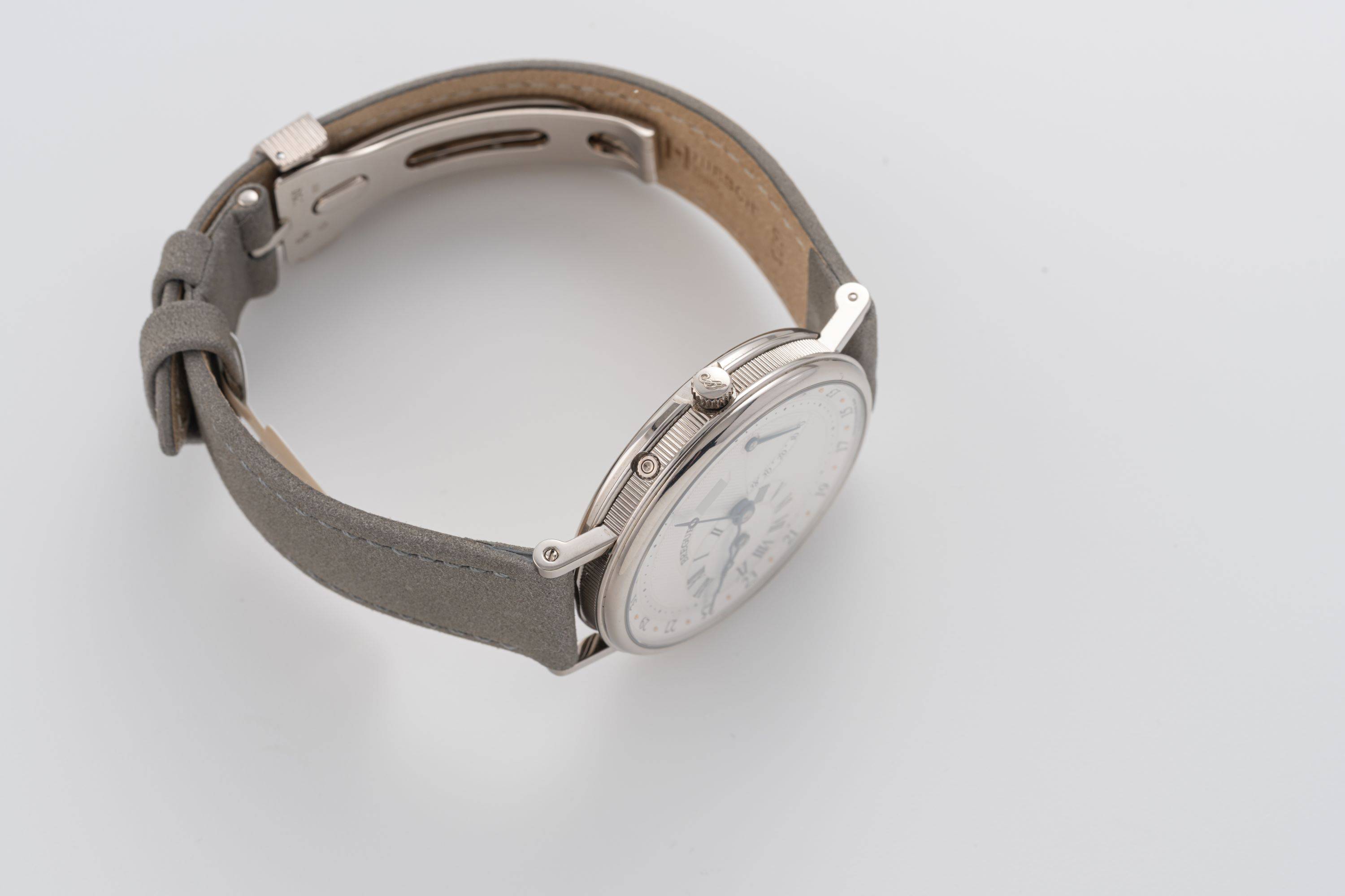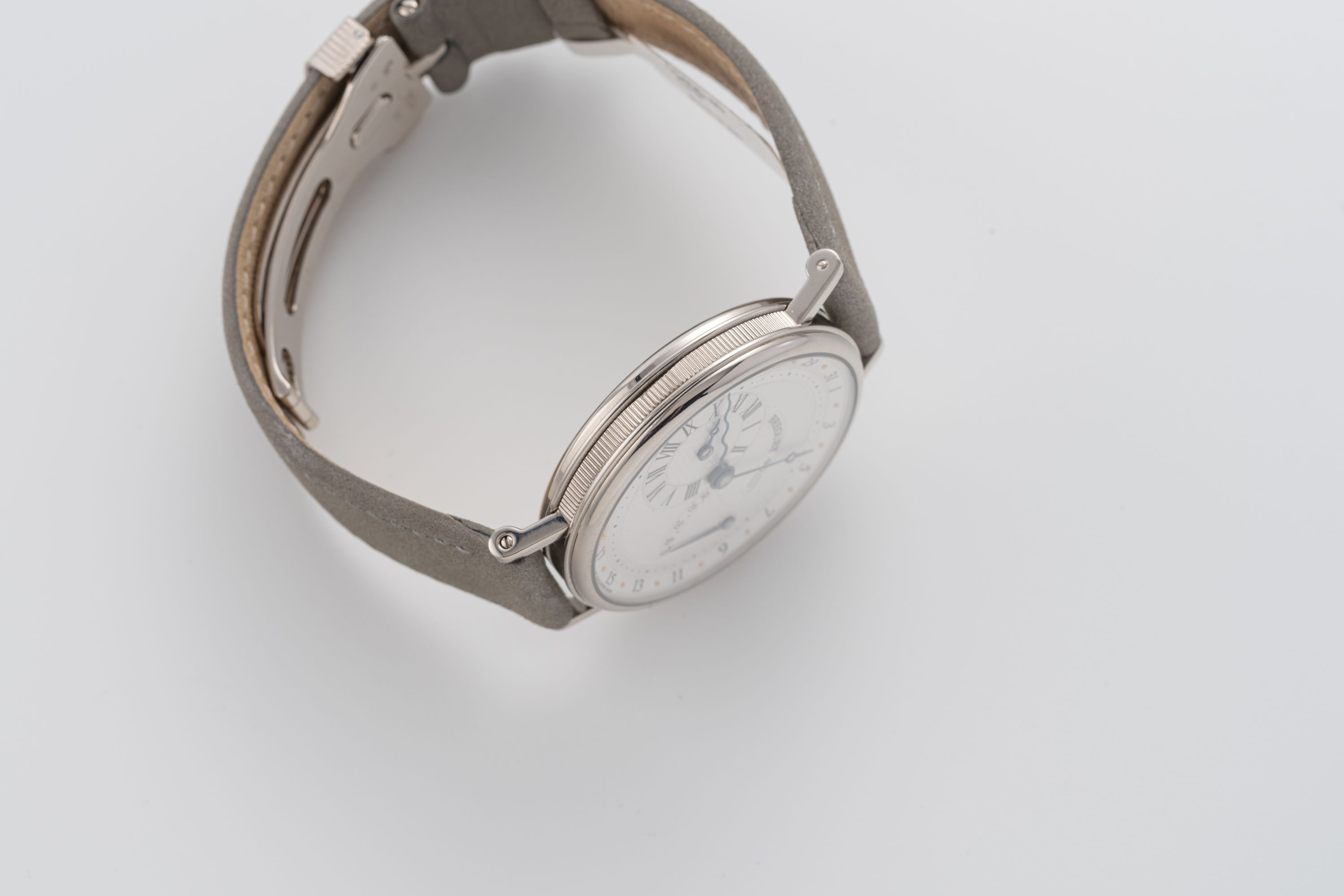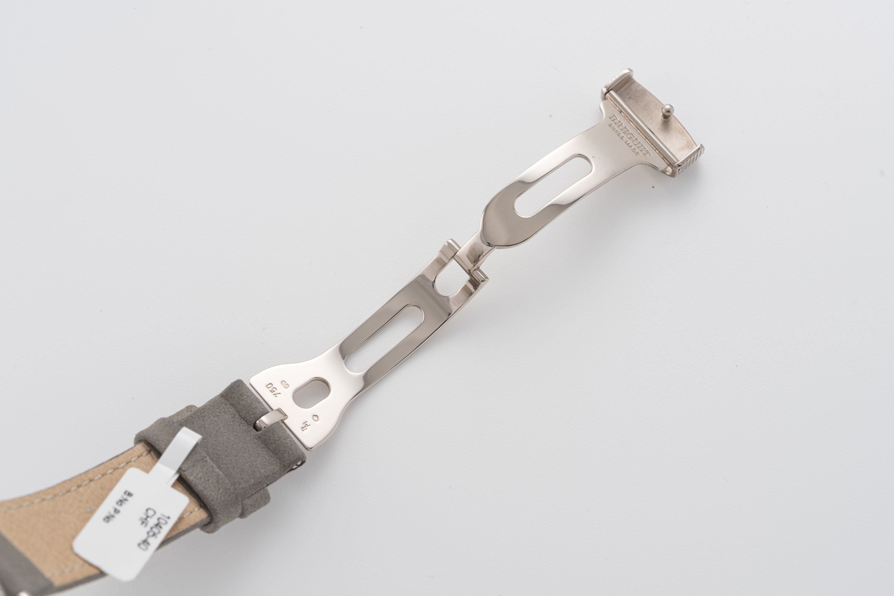 StrapGrey leather strap with Breguet deployant clasp in 18k white gold