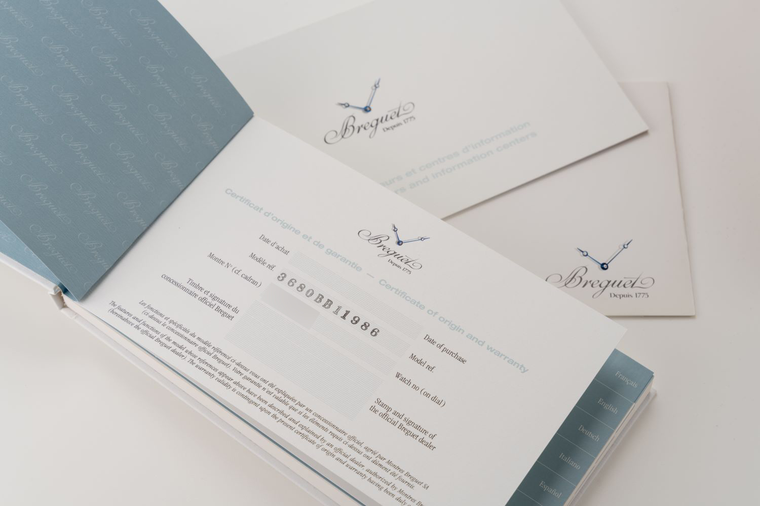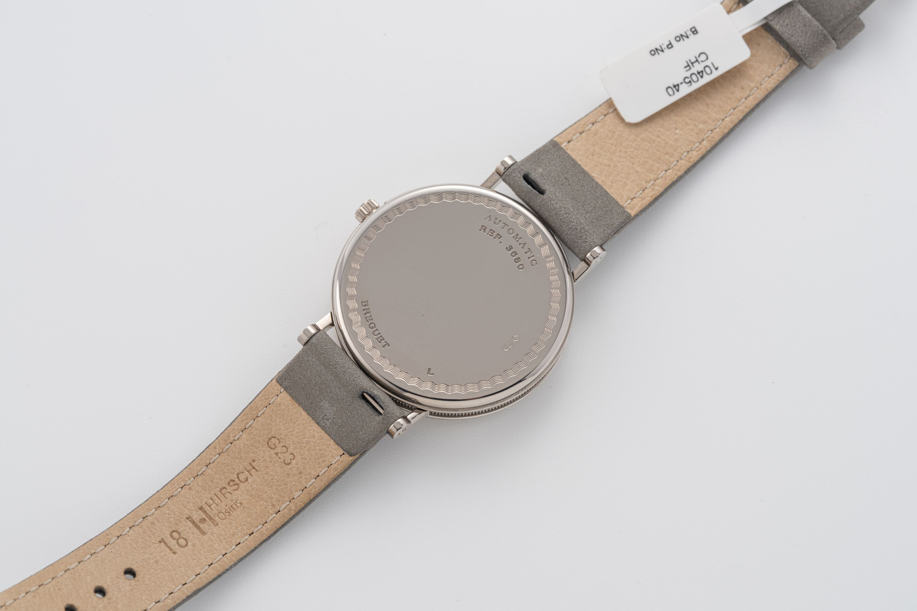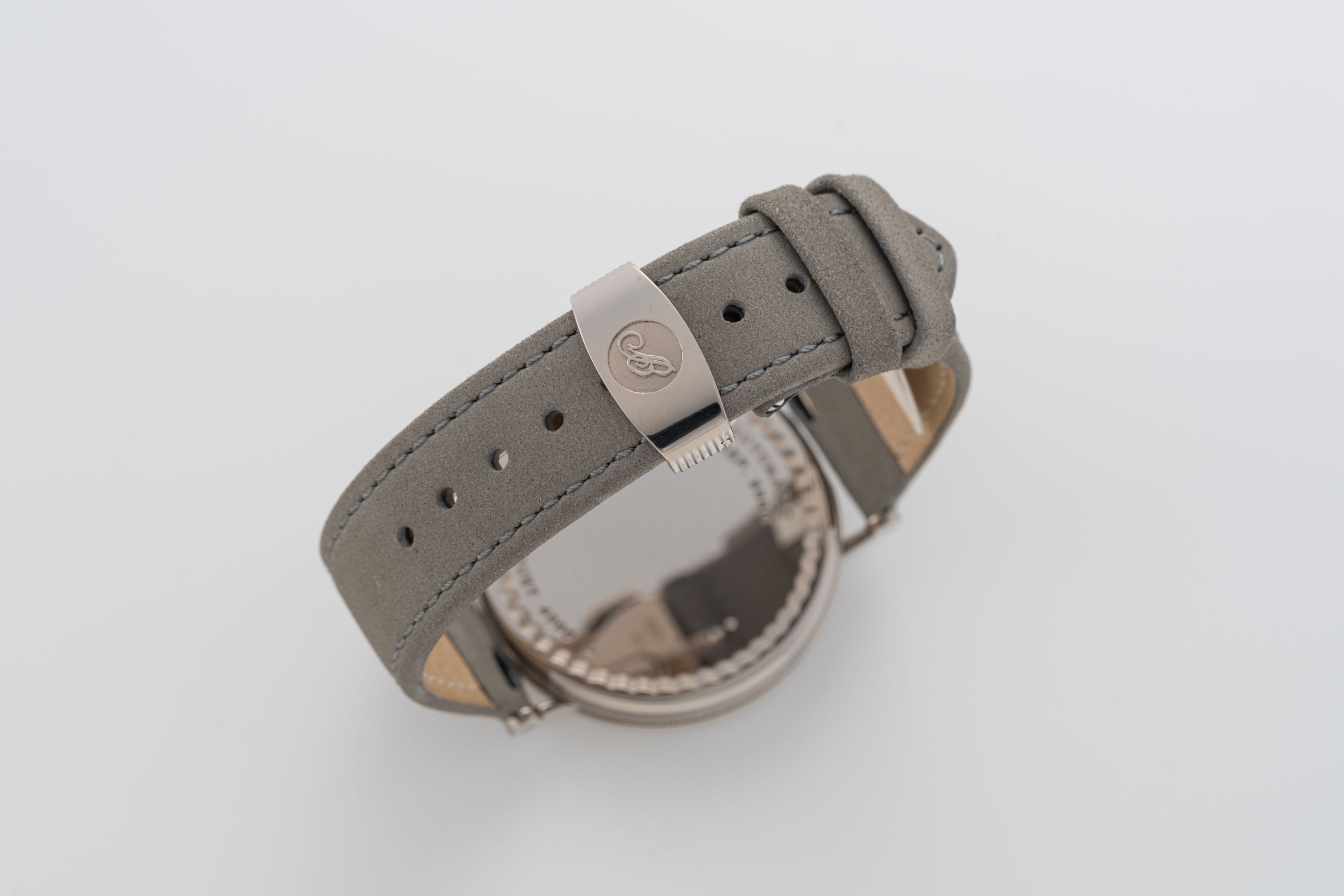 StrapGrey leather strap with Breguet deployant clasp in 18k white gold