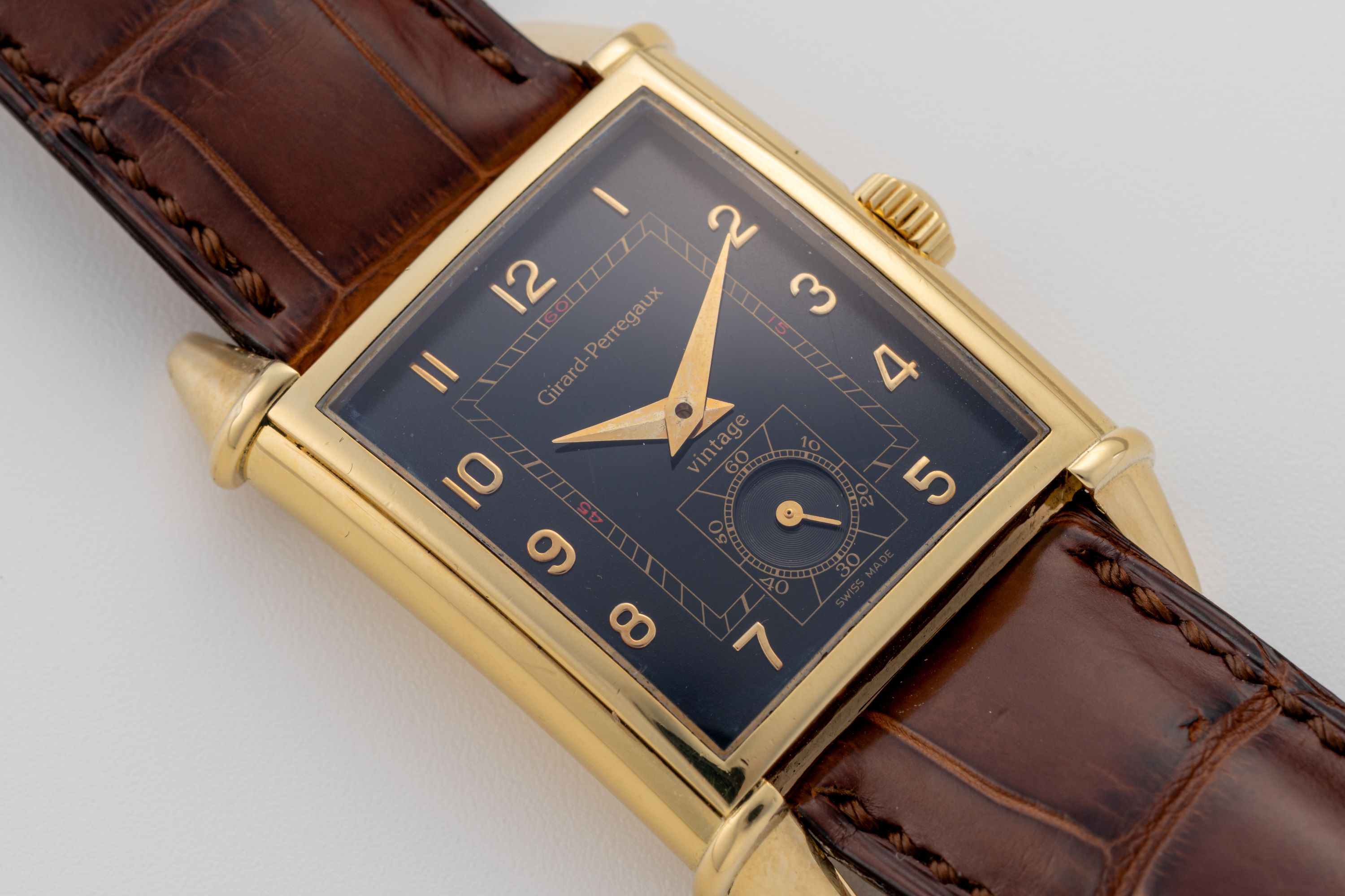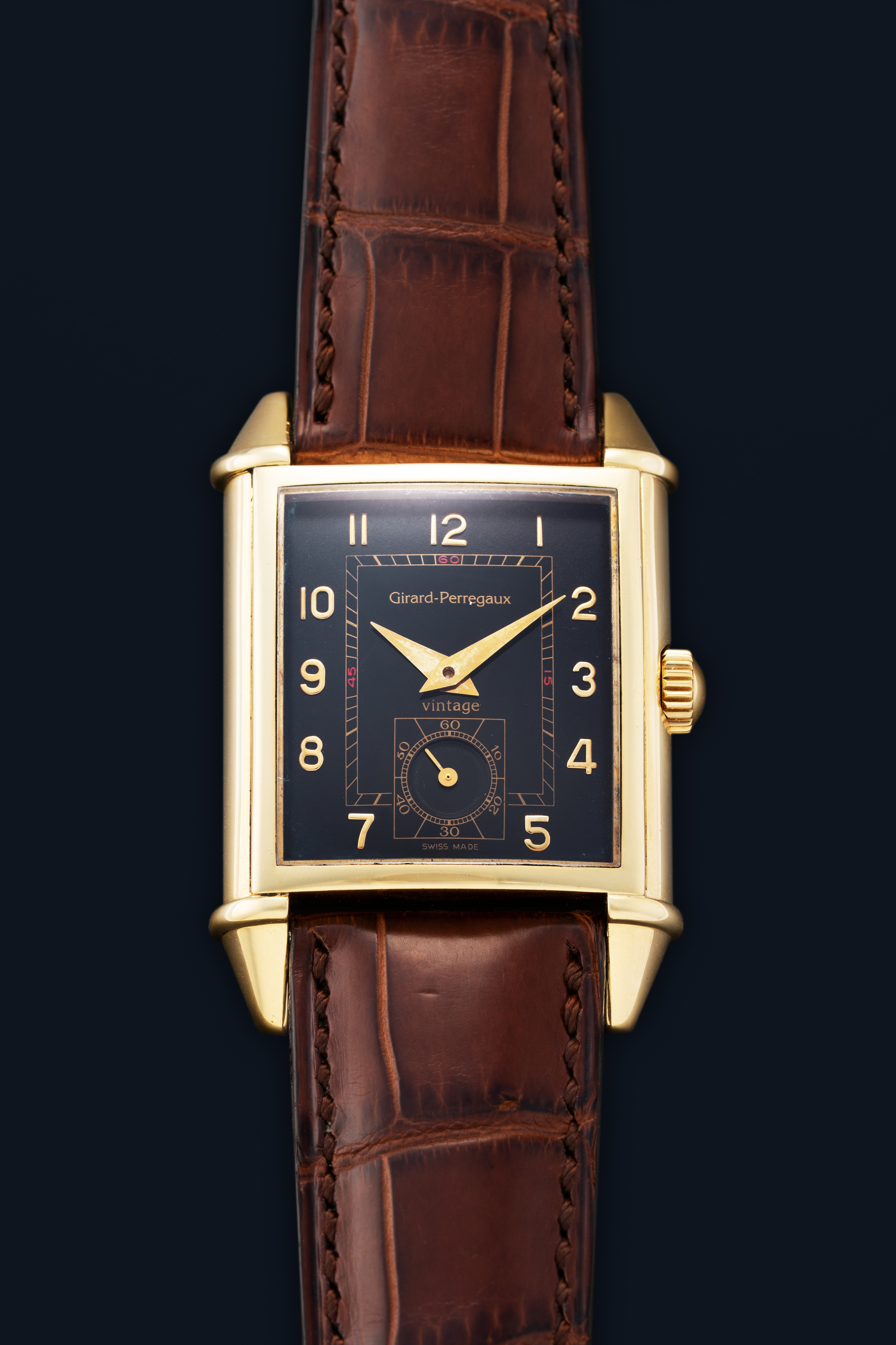 DialCurved black dial with applied gold numerals, gold dauphine hands, small seconds at 6 o'clock, signed 'Girard-Perregaux' at 12 o'clock