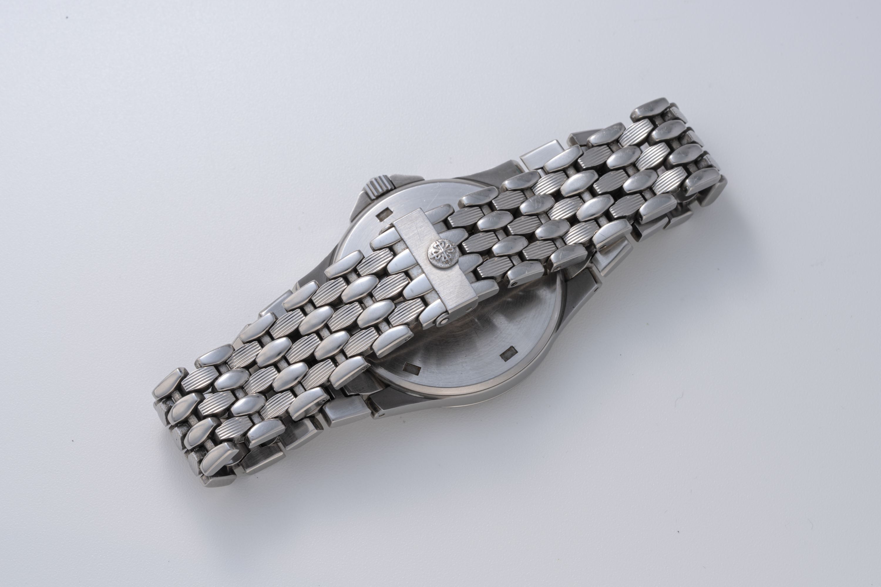 While most examples were delivered with silvered or black dials, the present salmon variant belongs to the rarest and most coveted executions, its warm hue imbuing the Roman numeral dial with a richness and character seldom encountered in steel Patek Philippe models of the era. This specific example even has a nice and even tropical patina, hence the nickname ‘smoked salmon’. Powered by the automatic calibre 315 SC and housed in a 36 mm stainless-steel case, it offers both mechanical integrity and everyday wearability. Increasingly recognized as an underappreciated gem in the maison’s history, the Neptune has begun to attract serious collector attention, and few configurations make a stronger case than this exquisitely preserved salmon-dial reference.