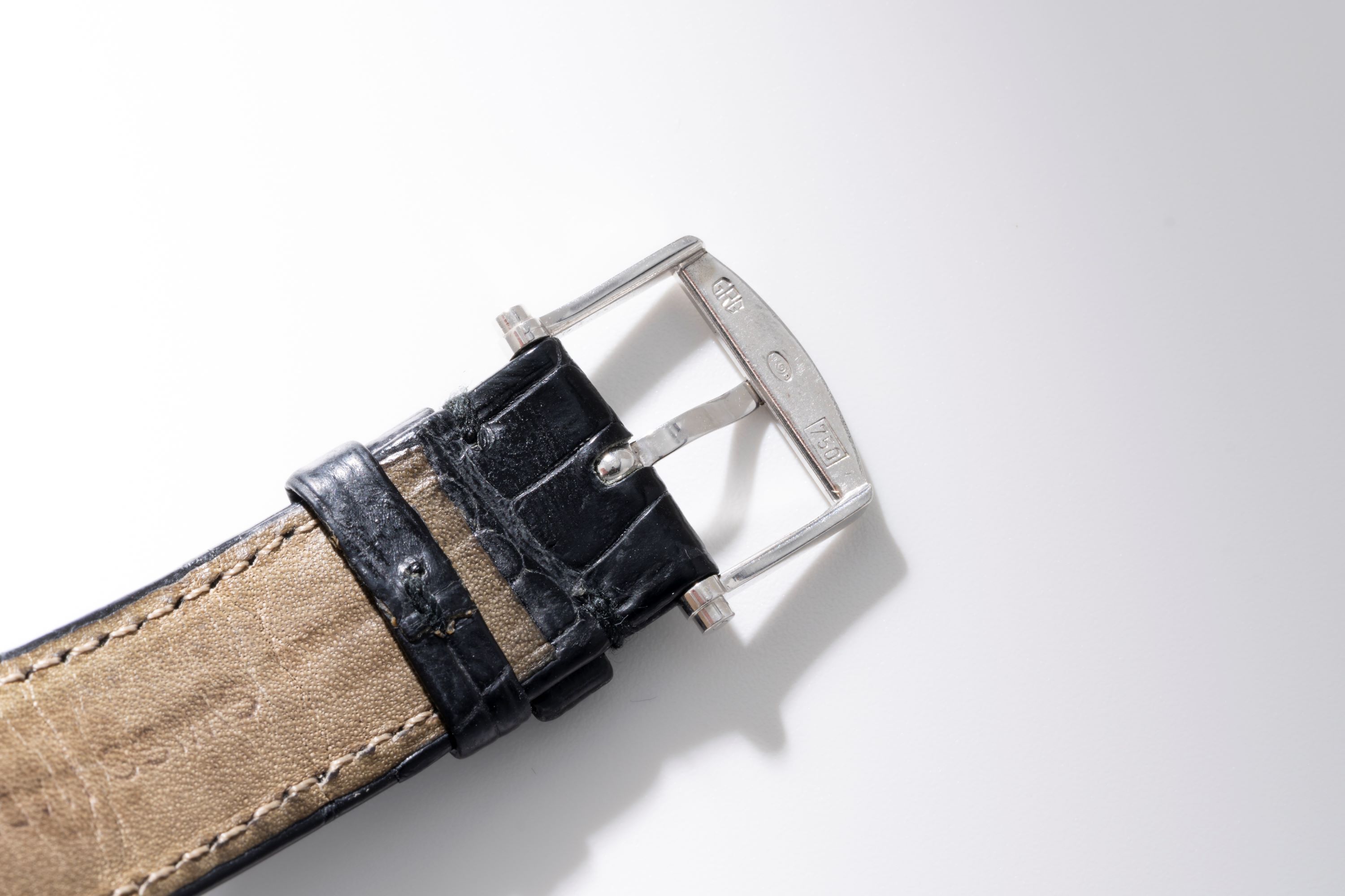 StrapBlack alligator leather strap with Breguet pin buckle in 18k white gold
