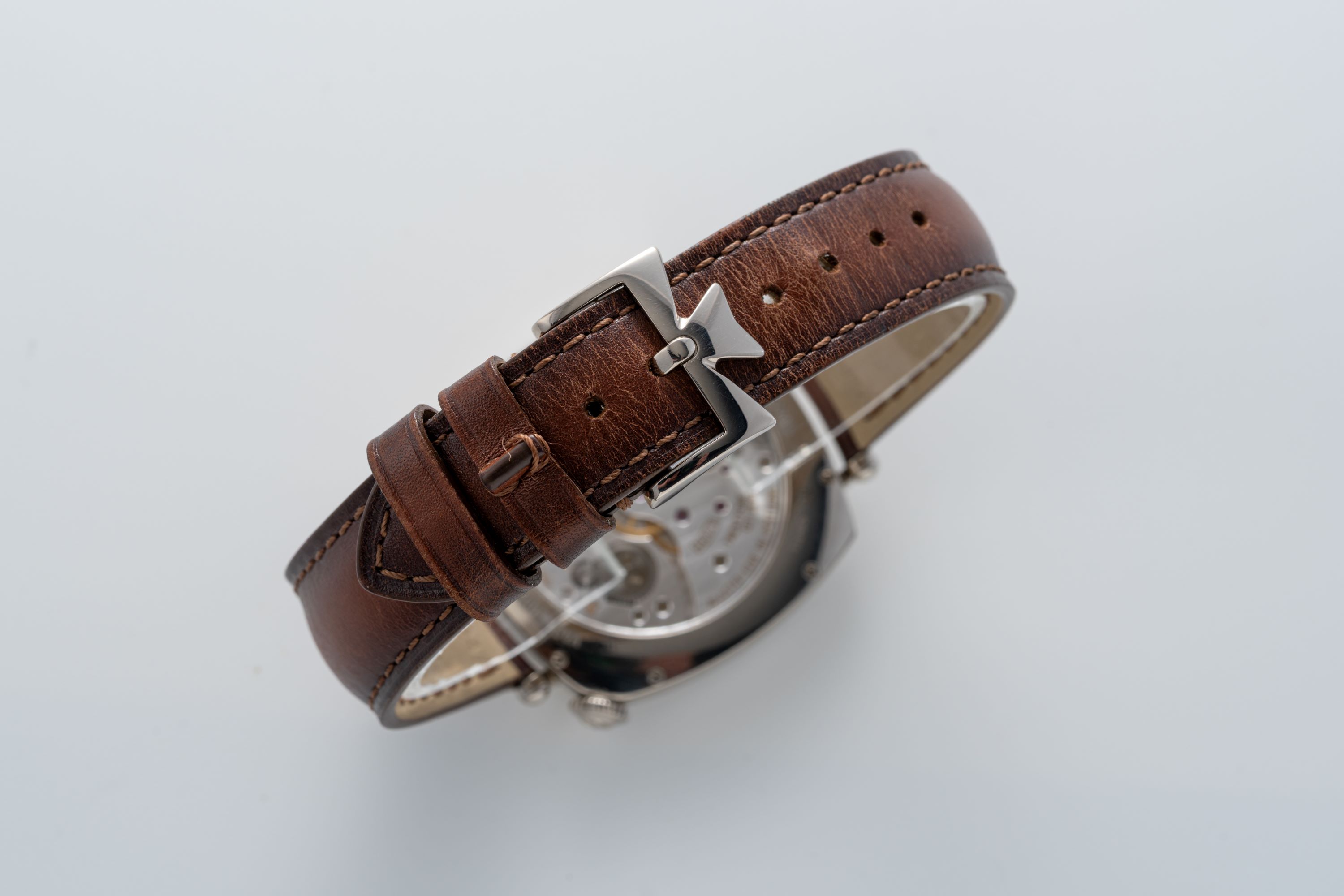 StrapBrown leather strap with Vacheron Constantin pin buckle in 18k white gold