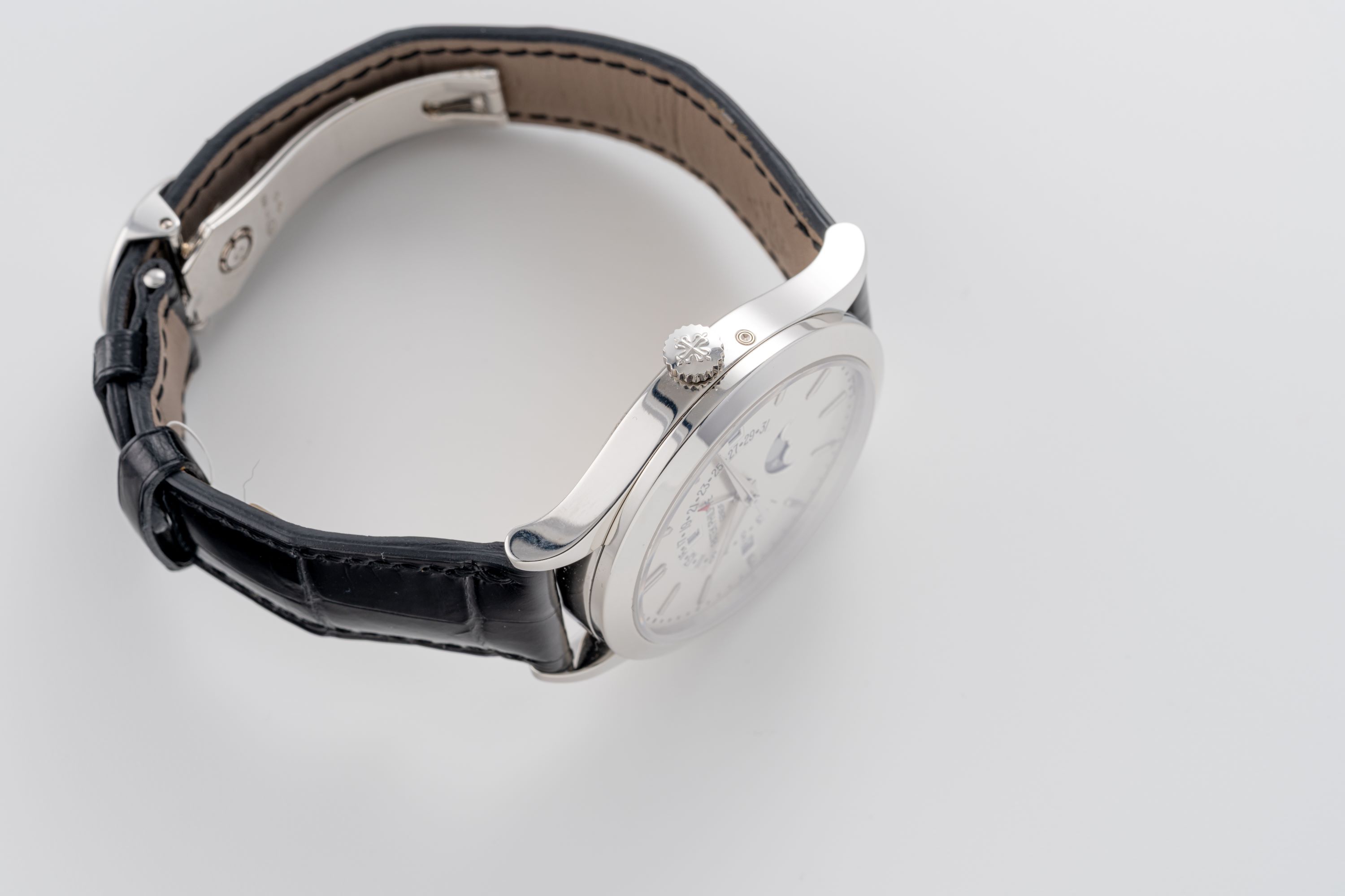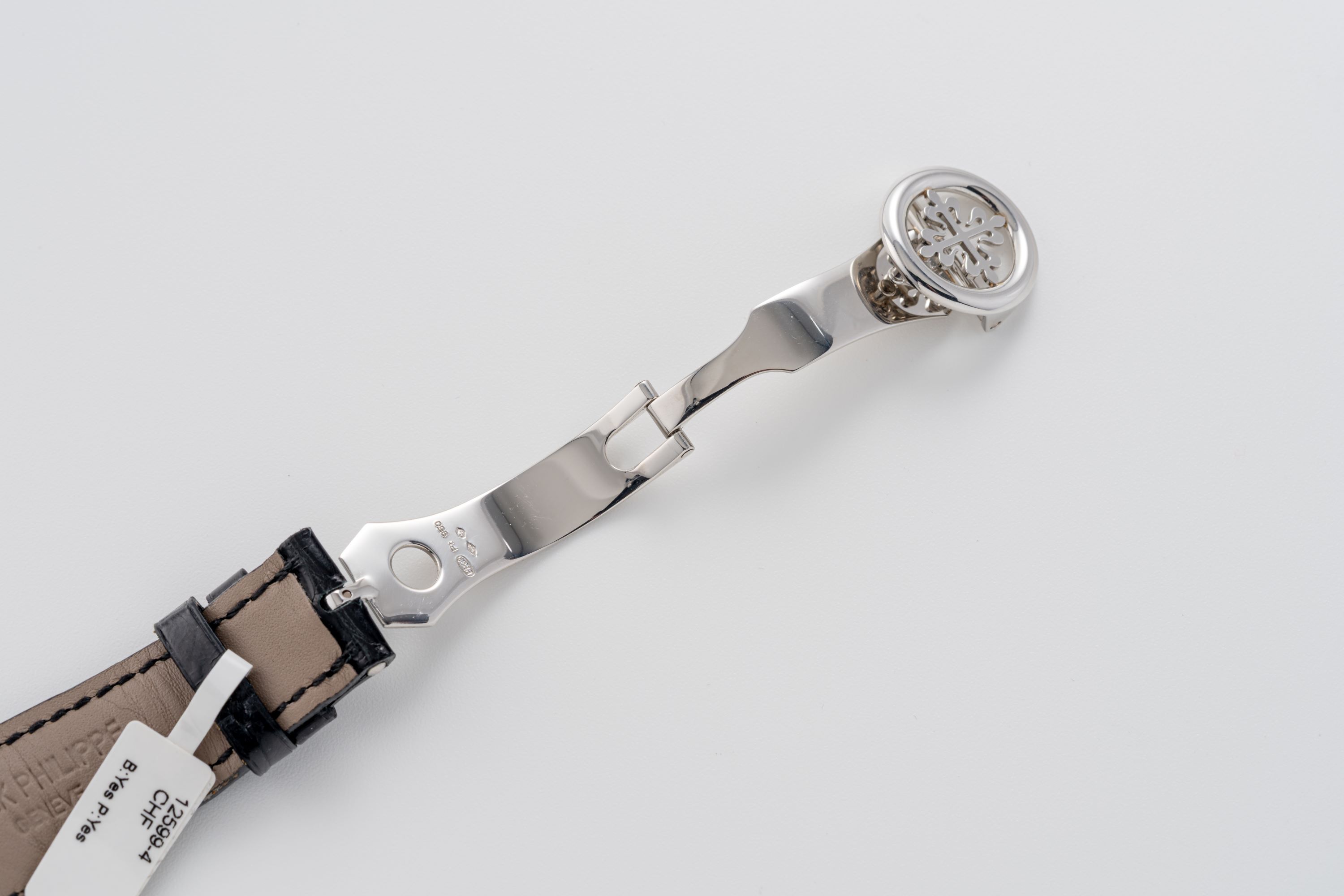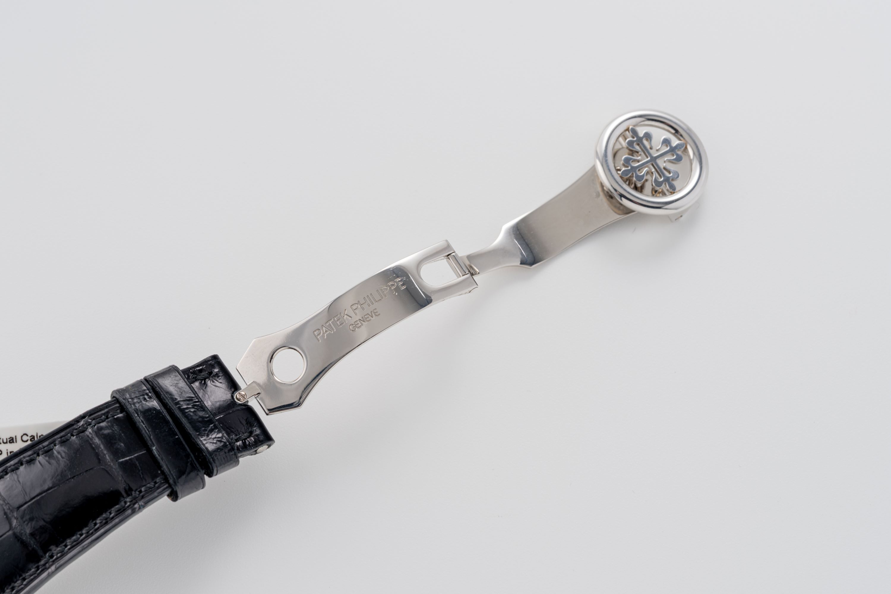 StrapBlack Patek Philippe alligator leather strap with original Patek Philippe deployant clasp in platinum