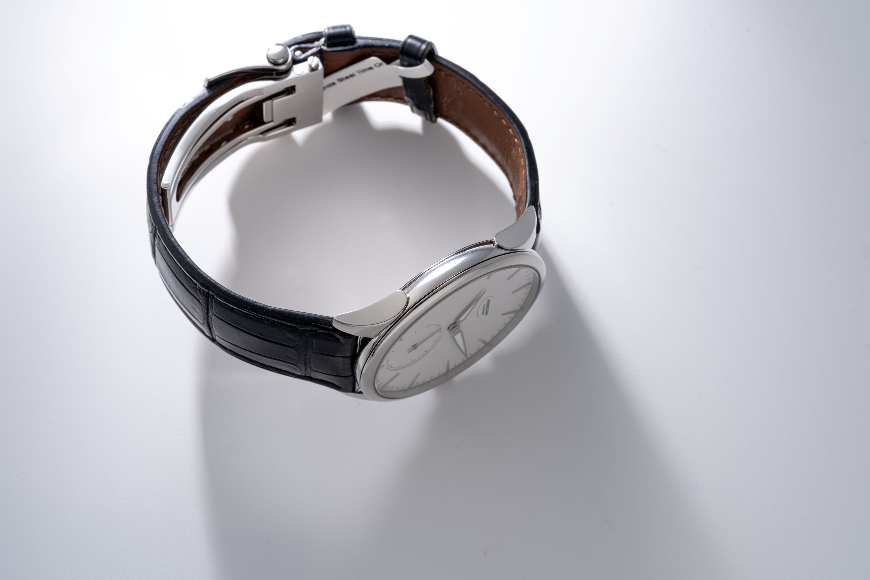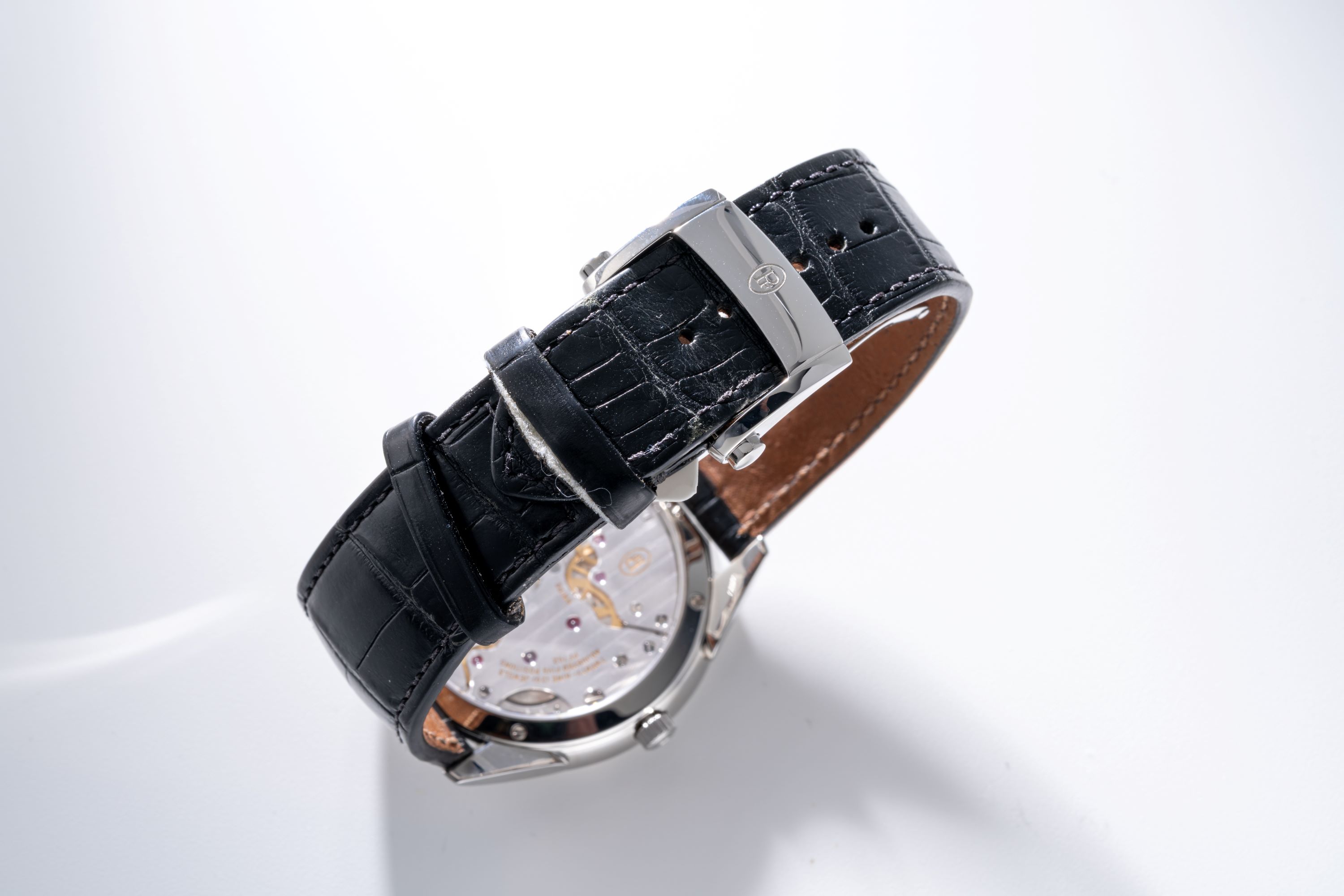 StrapBlack alligator leather strap with Parmigiani deployant clasp in stainless steel