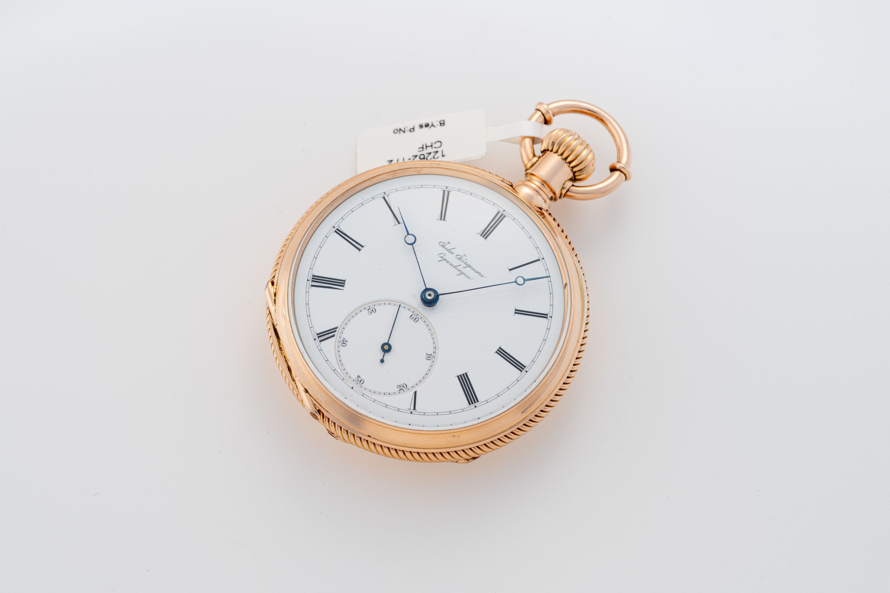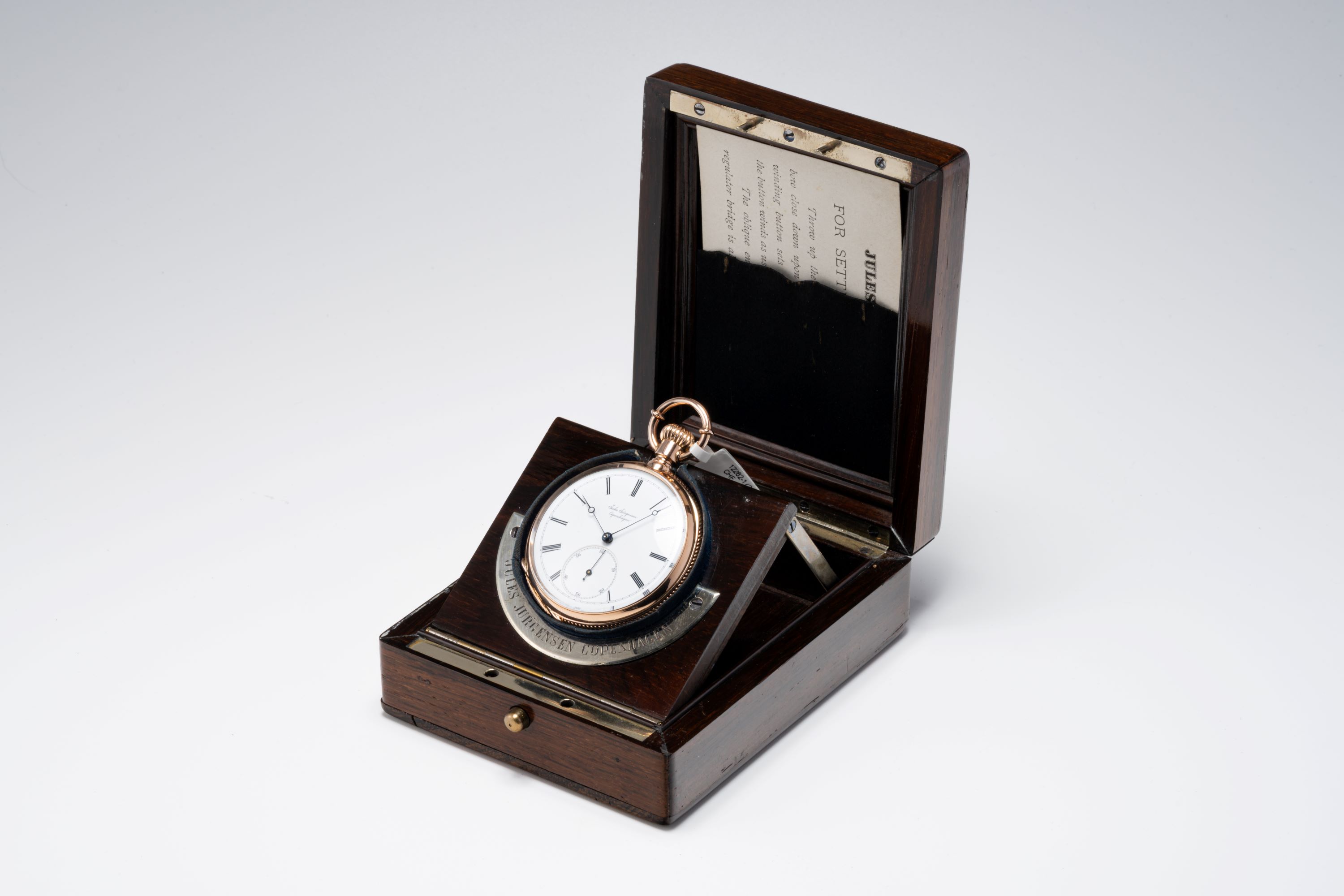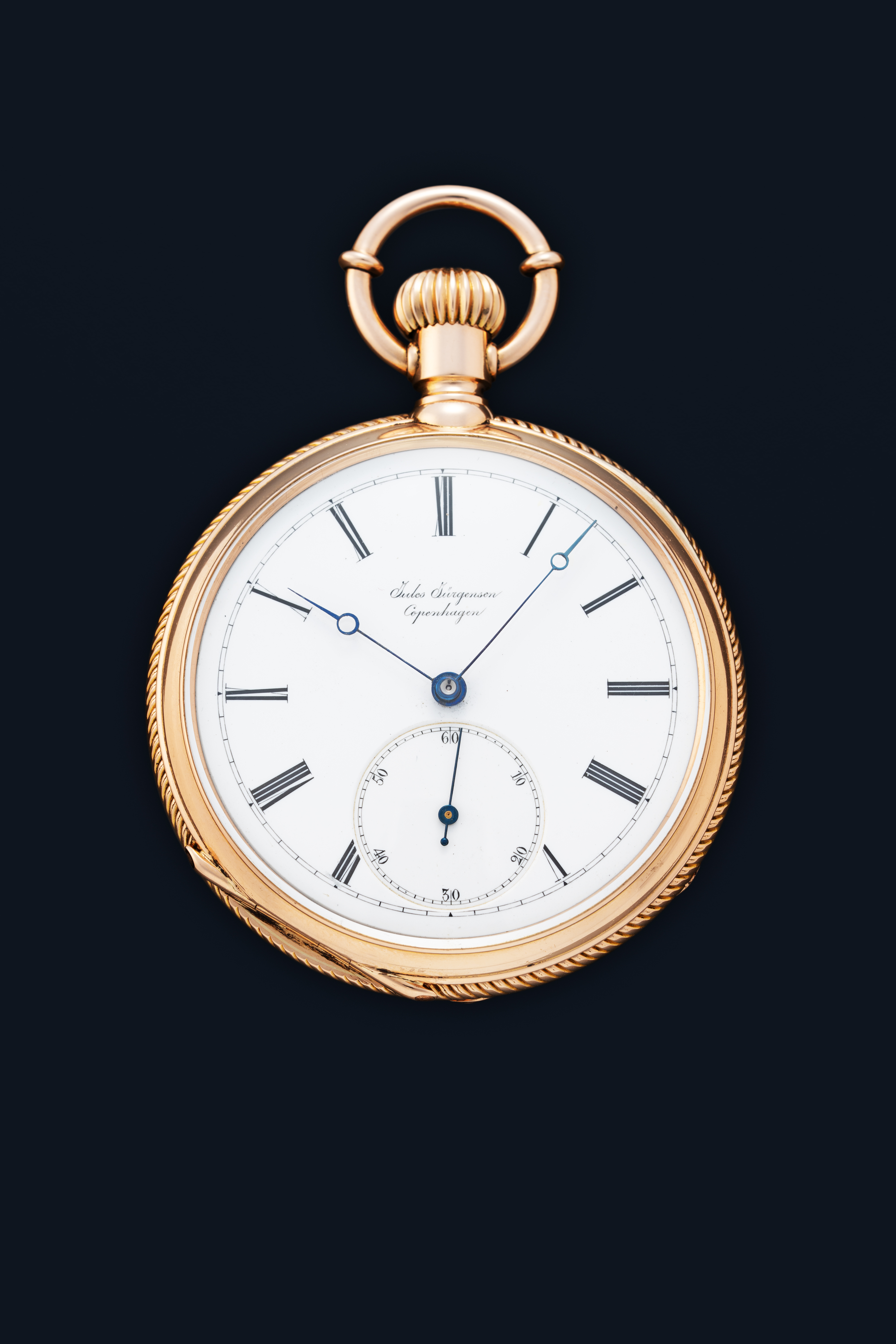DialWhite enamel dial with roman numerals, heat-blued Breguet hands, small seconds at 6 o'clock, signed 'Jules Jürgensen' at 12 o'clock