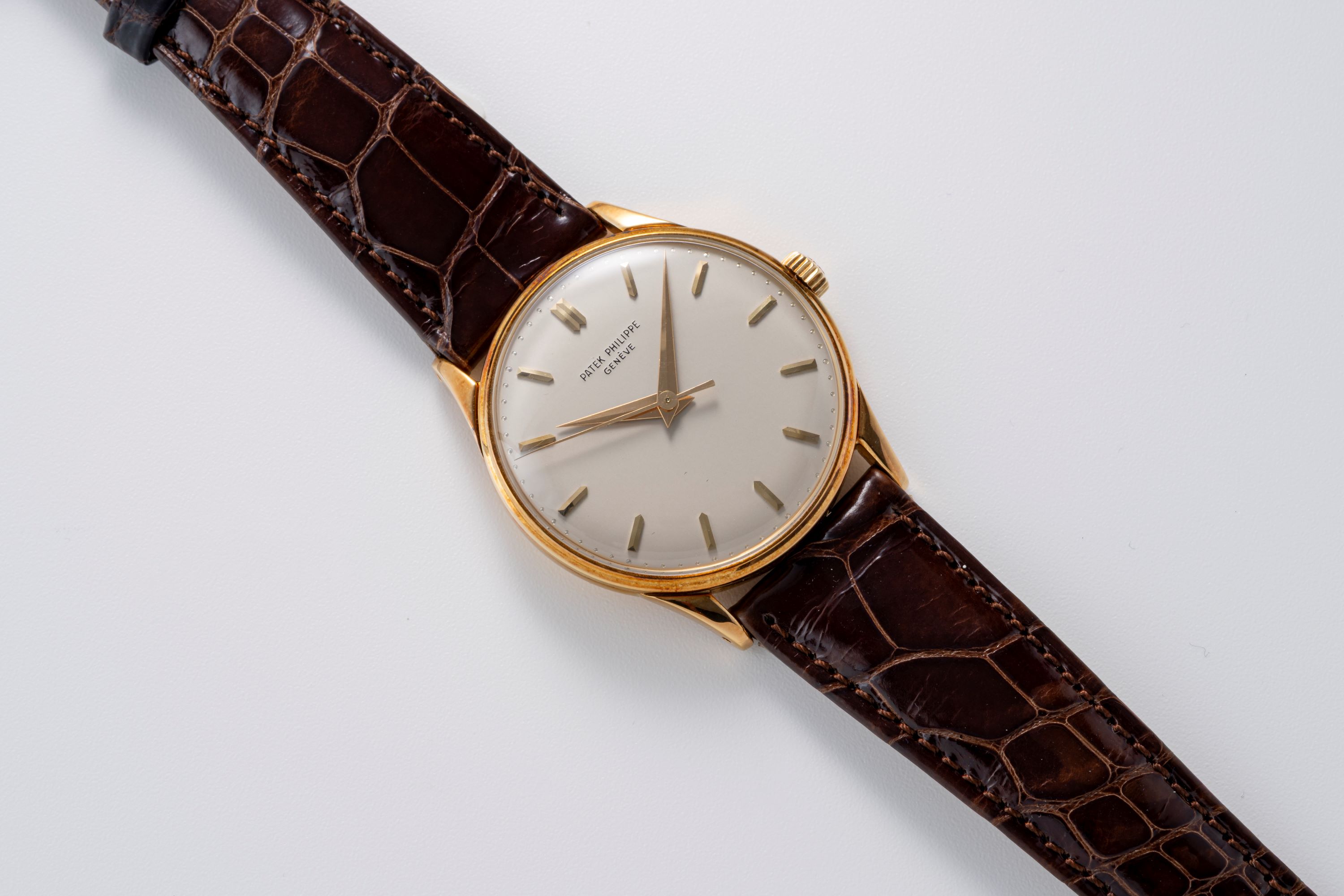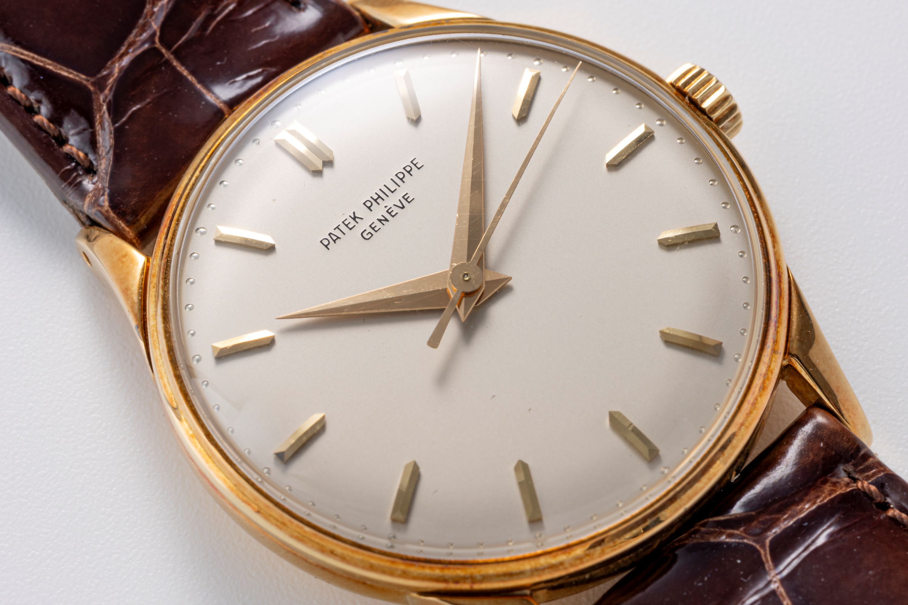 DialSilver-cream dial with applied gold indices, gold dauphine hands, signed 'Patek Philippe' at 12 o'clock