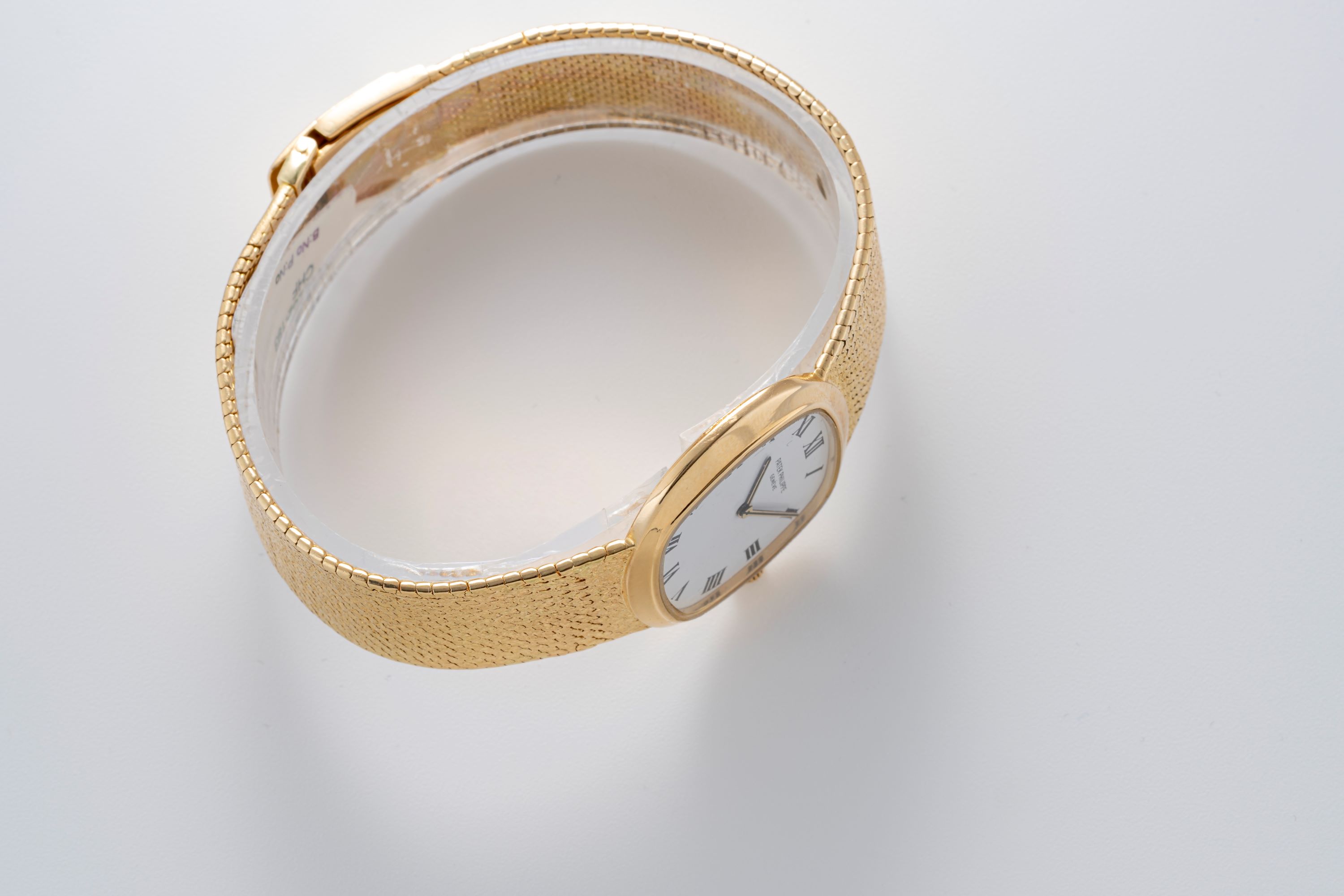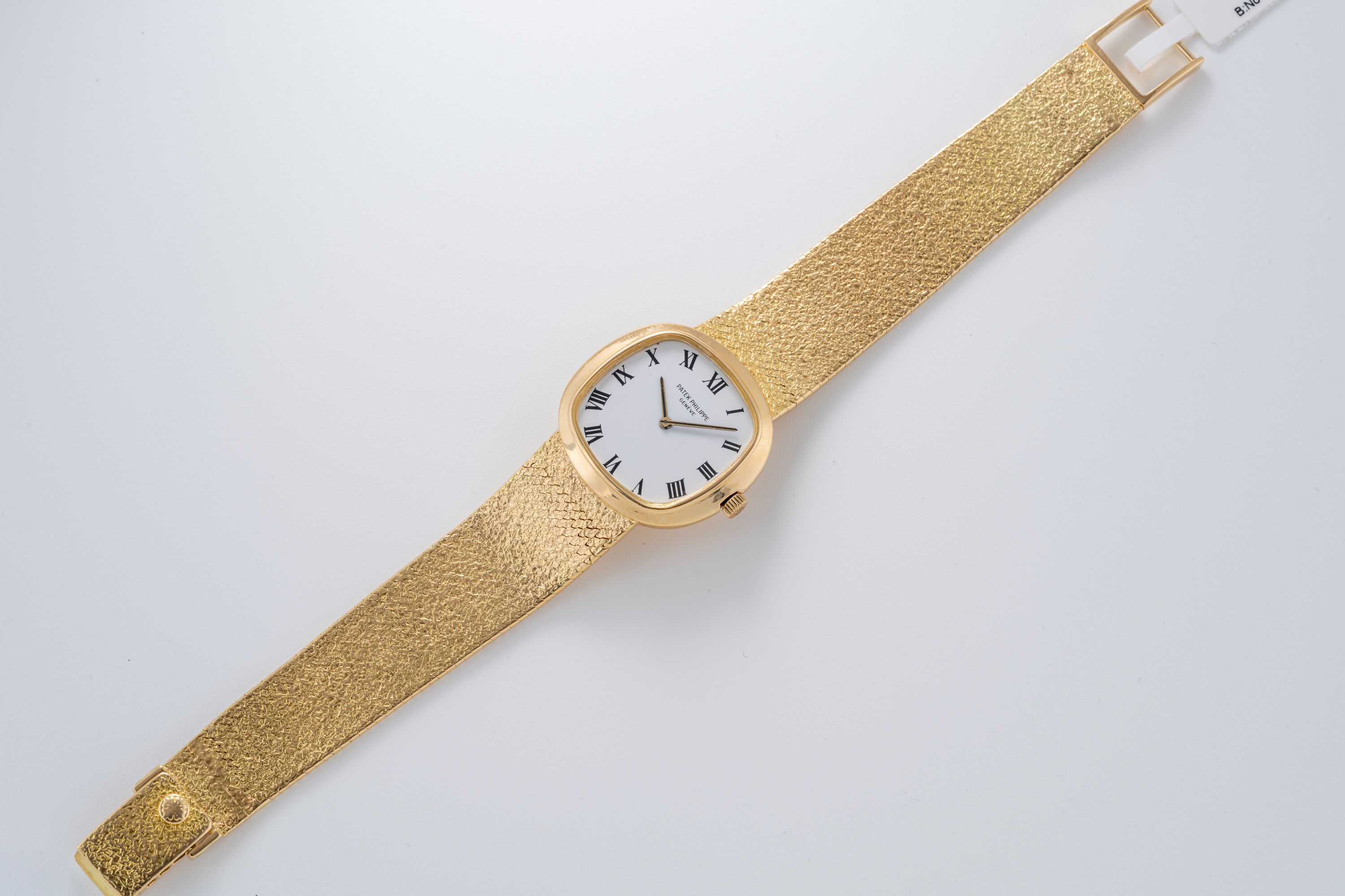DialWhite lacquer dial with roman numerals, gold hands, signed 'Patek Philippe' at 12 o'clock