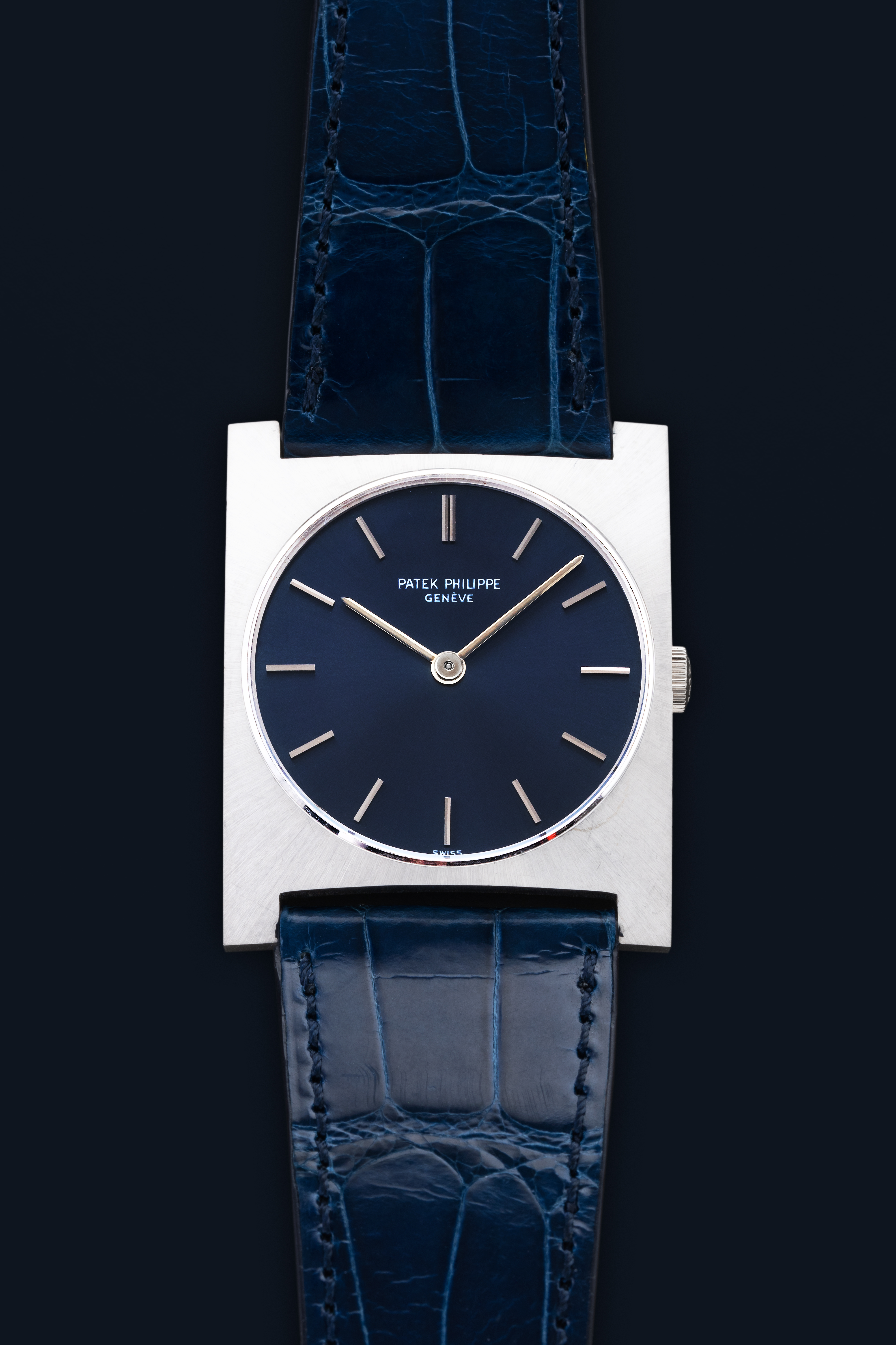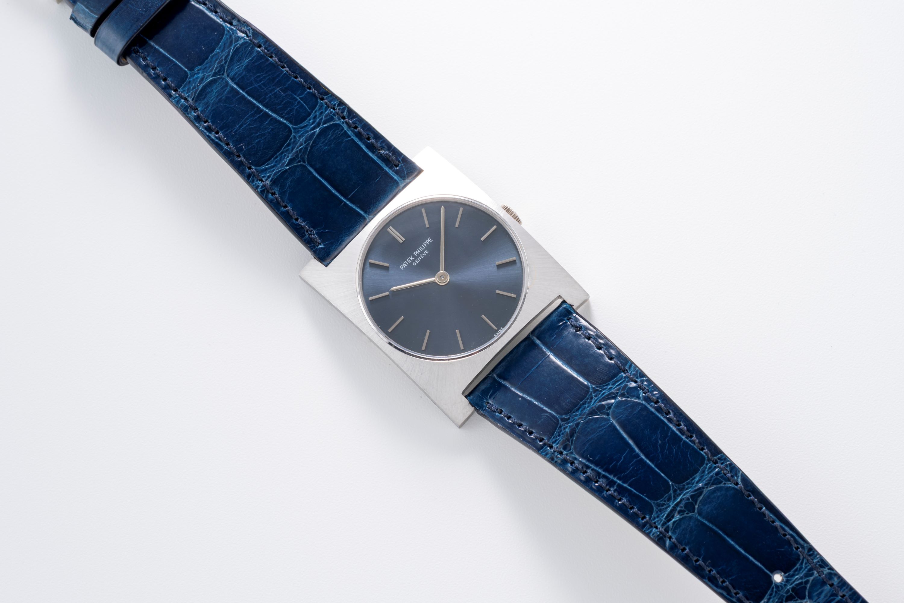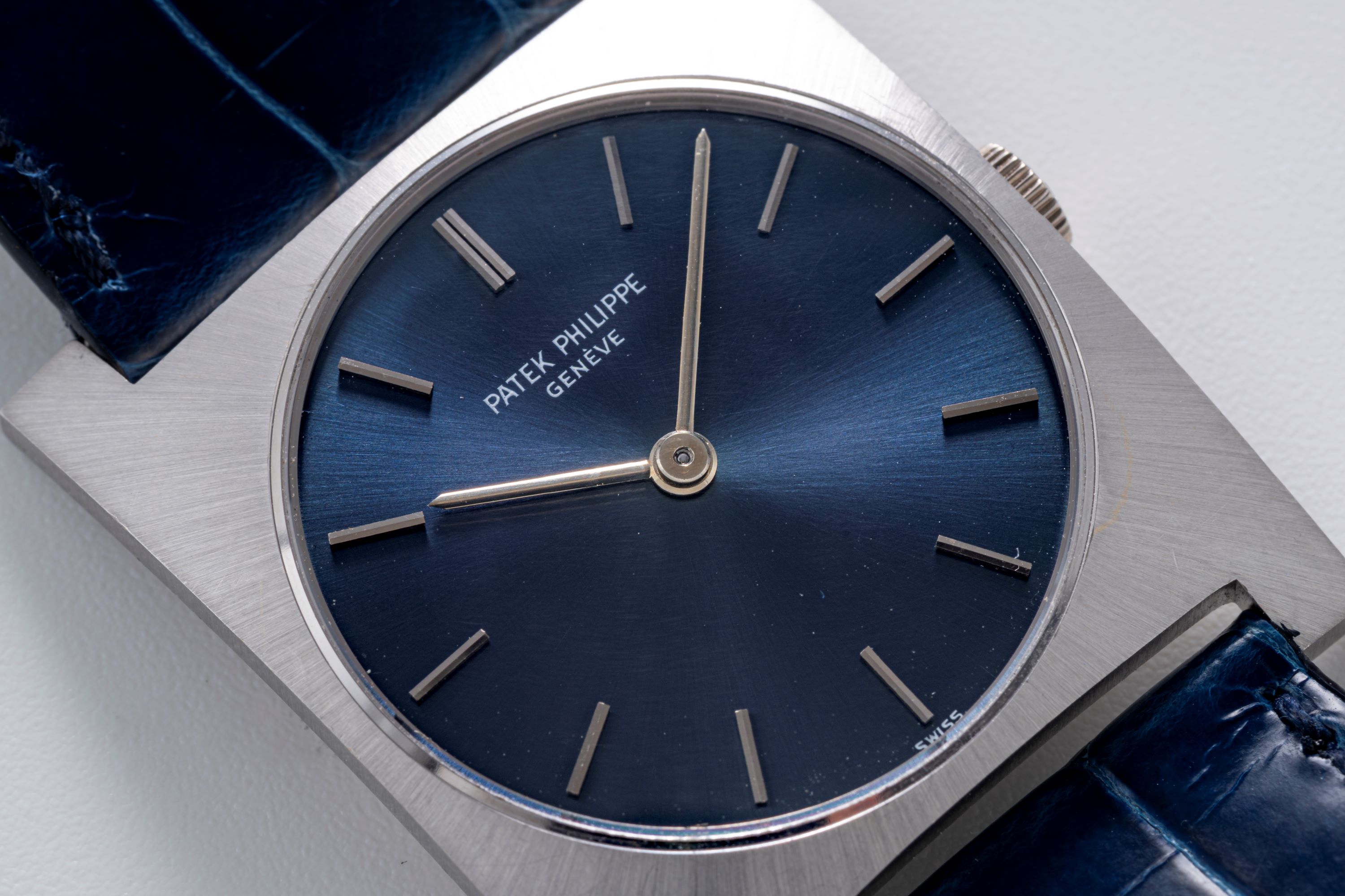 DialBlue sunburst dial with applied white gold indices, white gold hands, signed 'Patek Philippe' at 12 o'clock