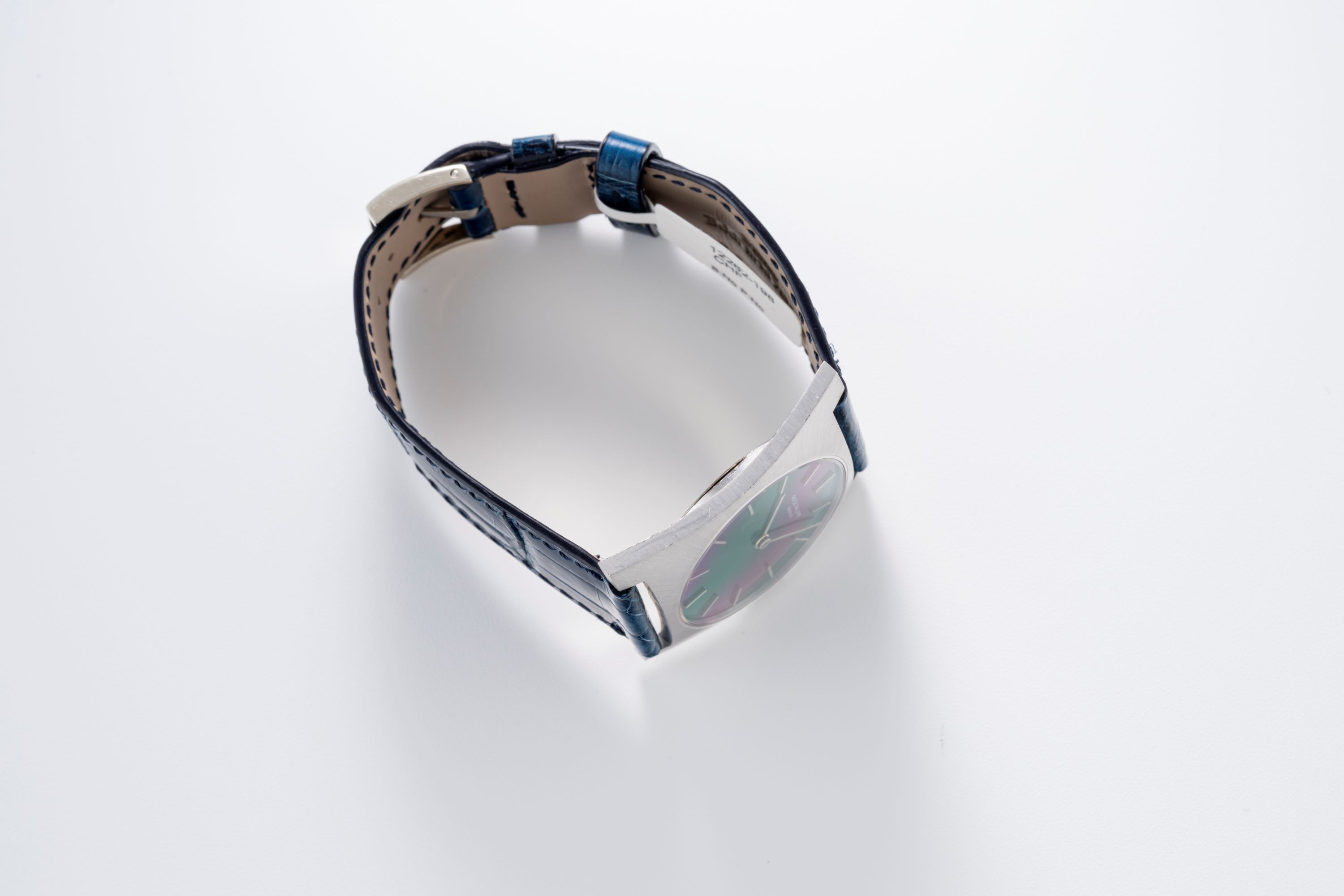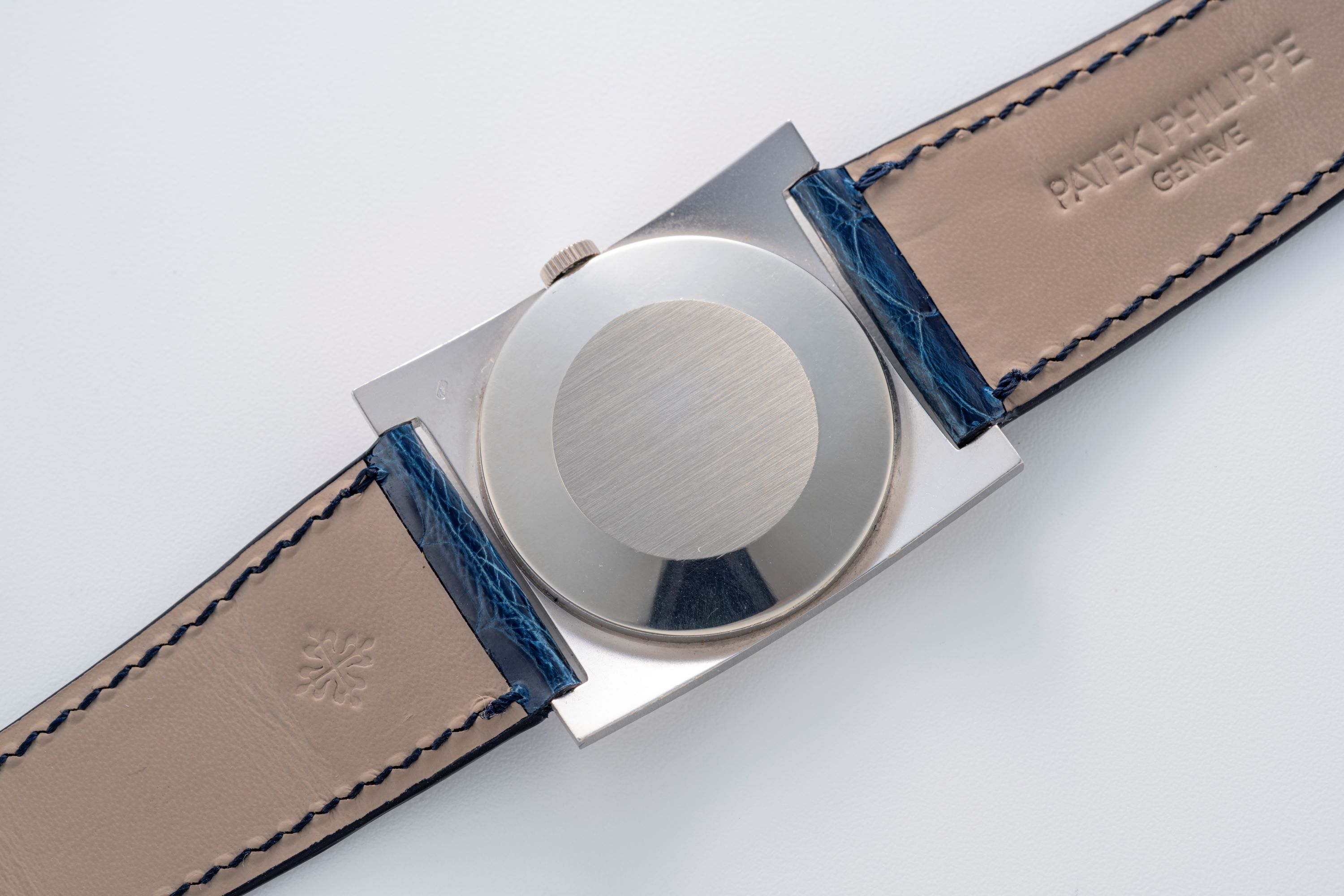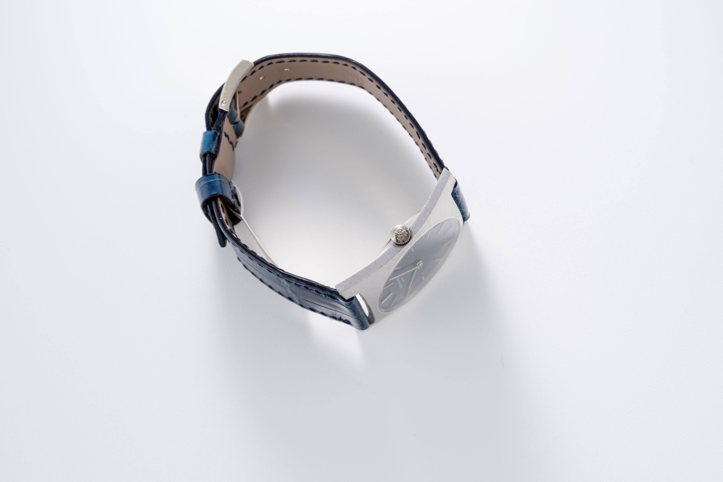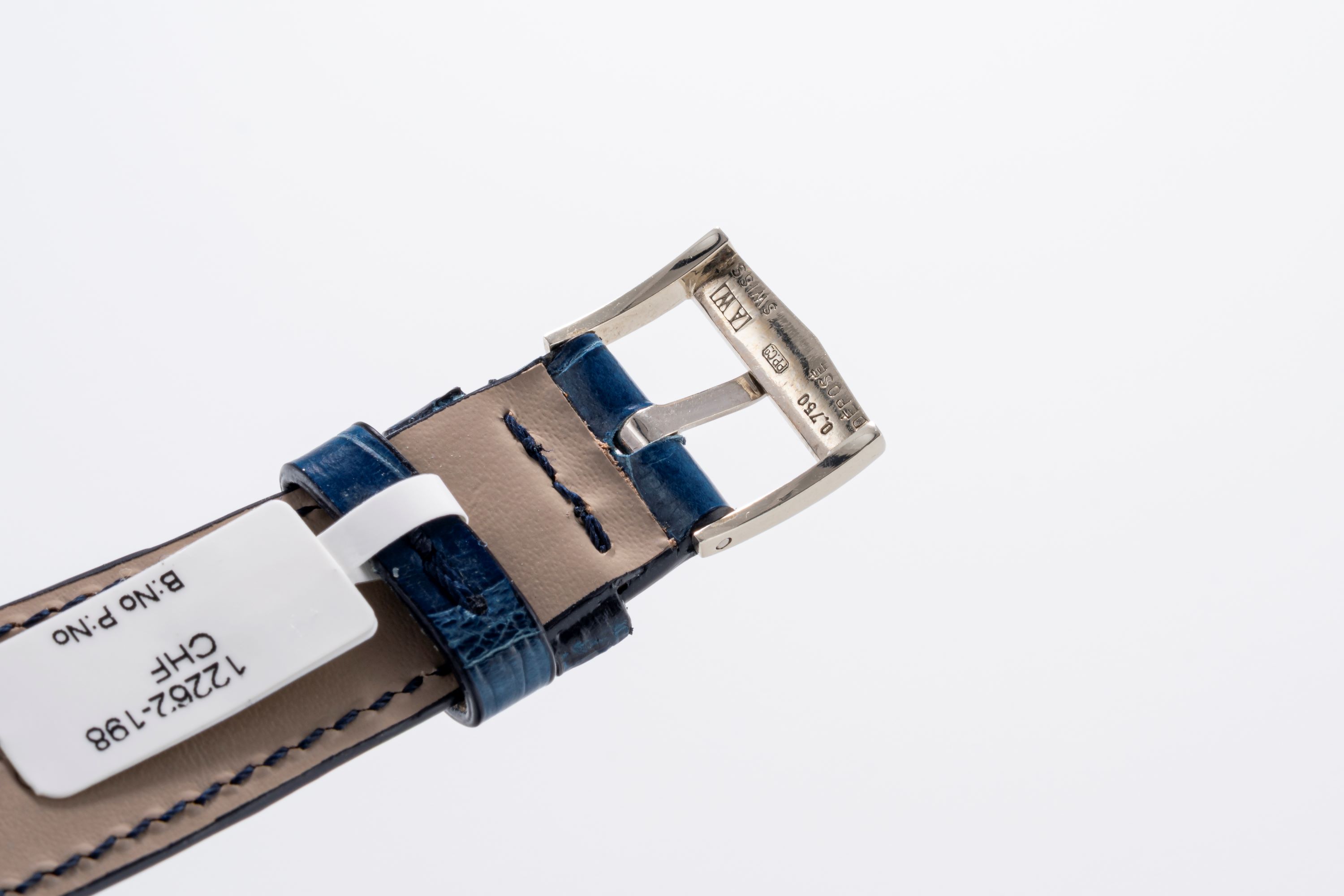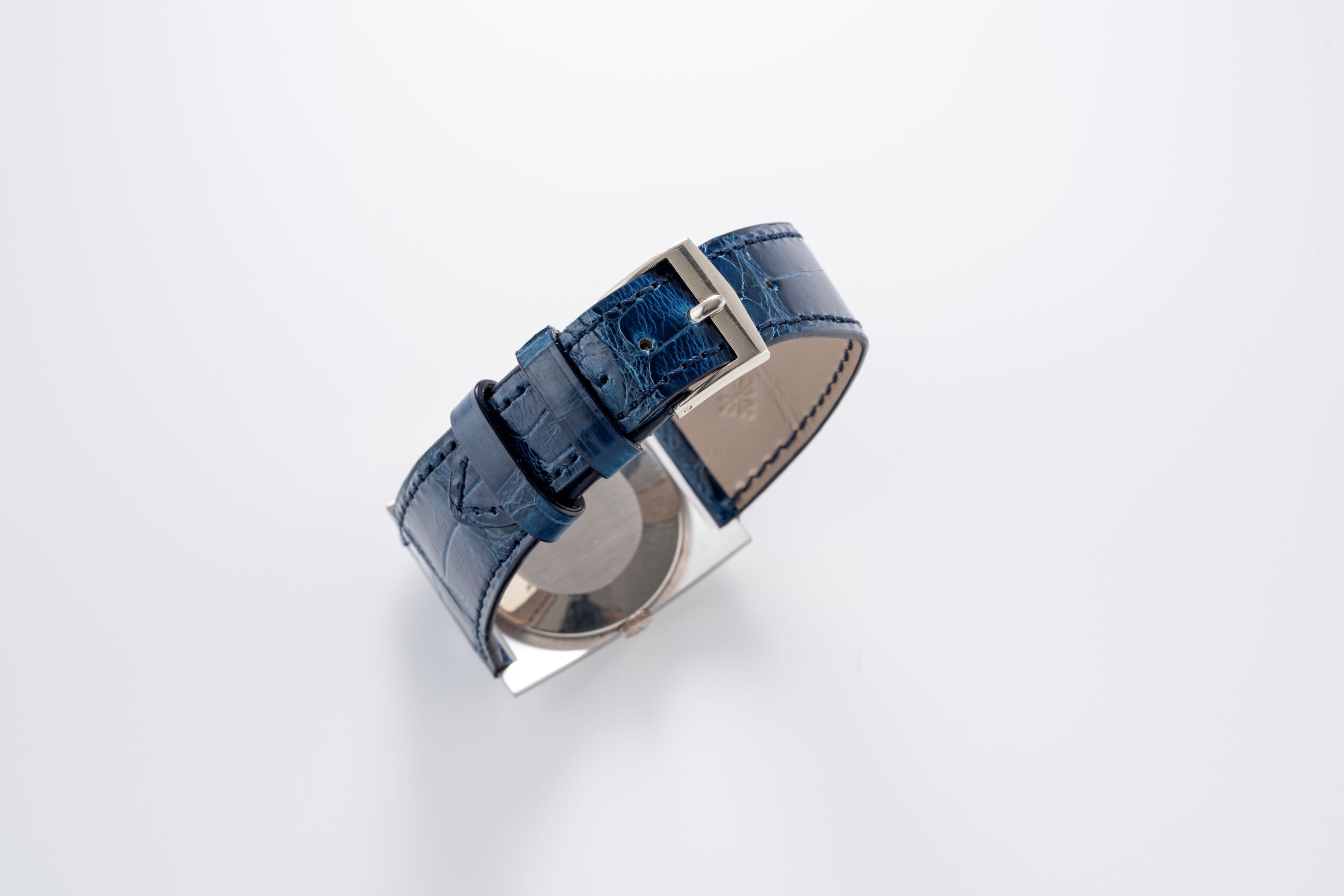 StrapBlue alligator leather strap with Patek Philippe pin buckle in 18k white gold