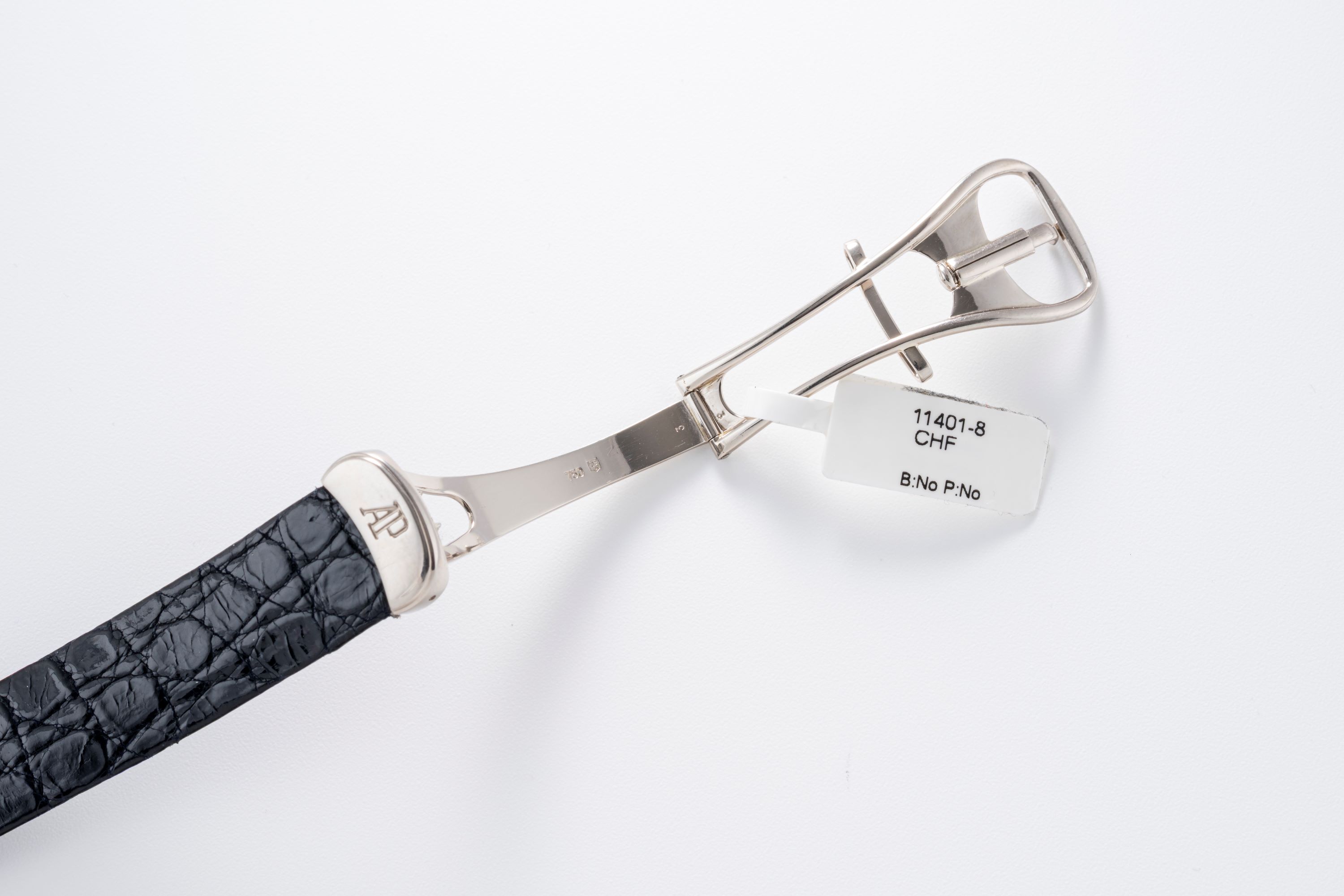 StrapBlack alligator leather strap with AP deployant clasp in 18k white gold