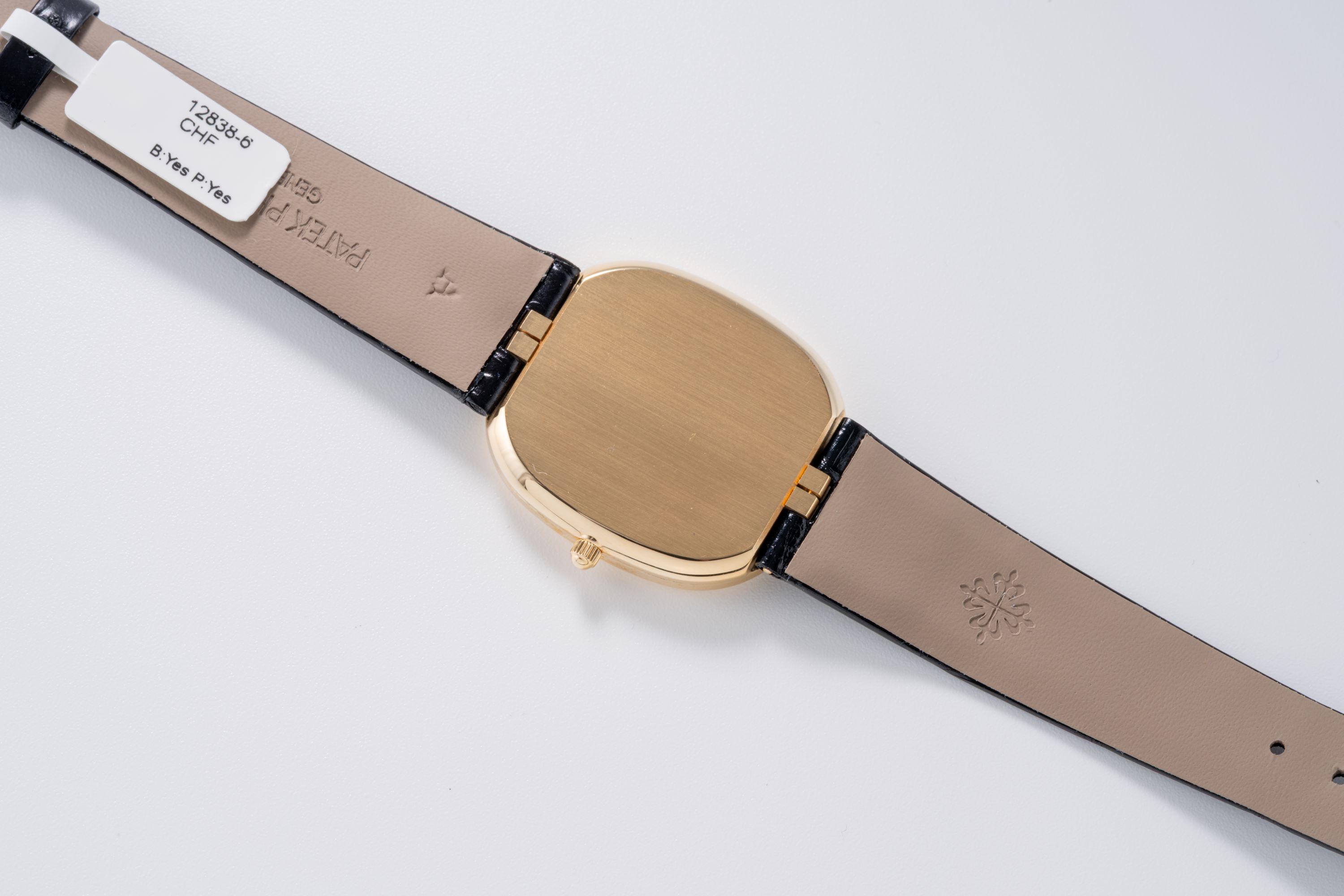 CaseElliptical case in 18k yellow gold with crown at 3 o'clock