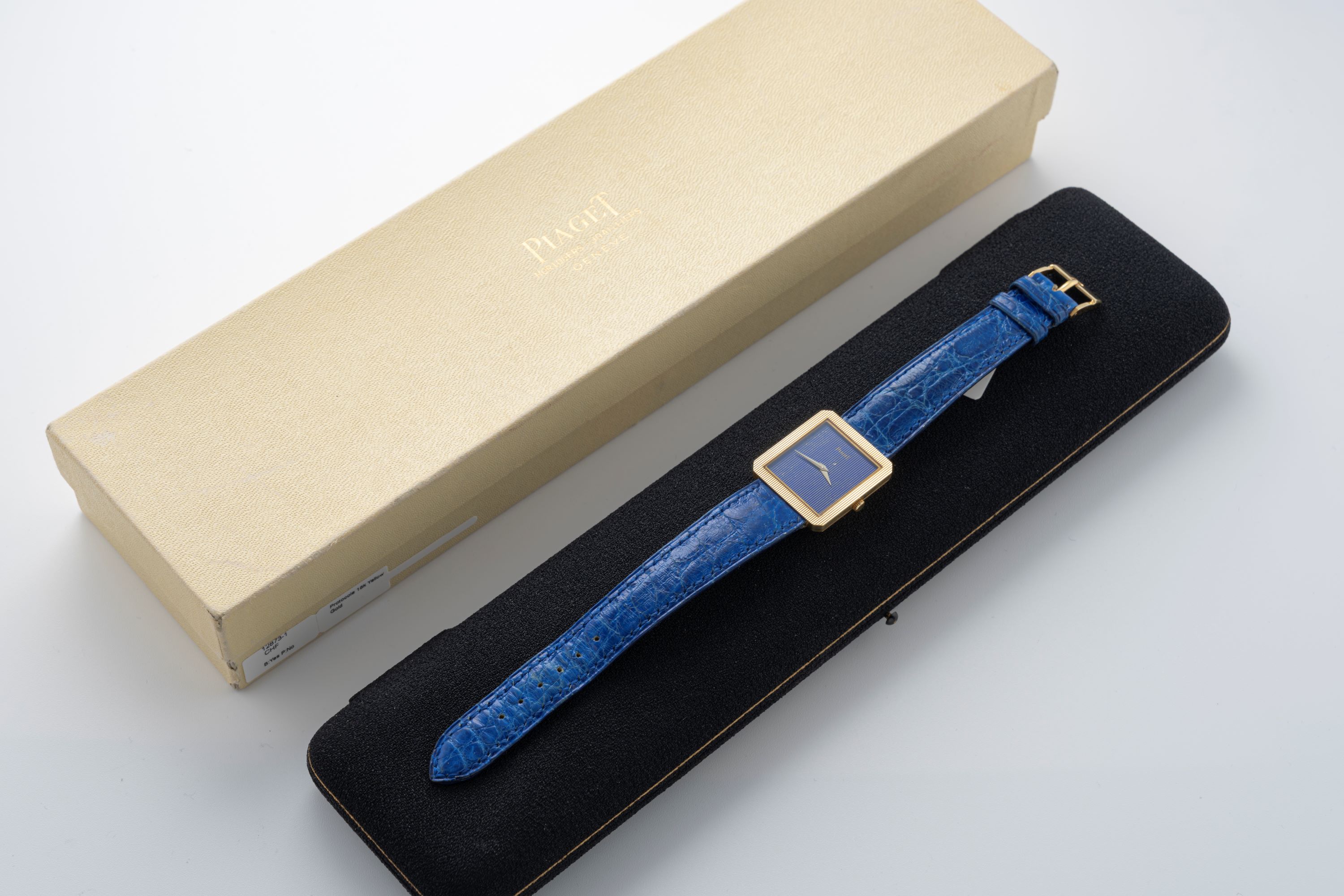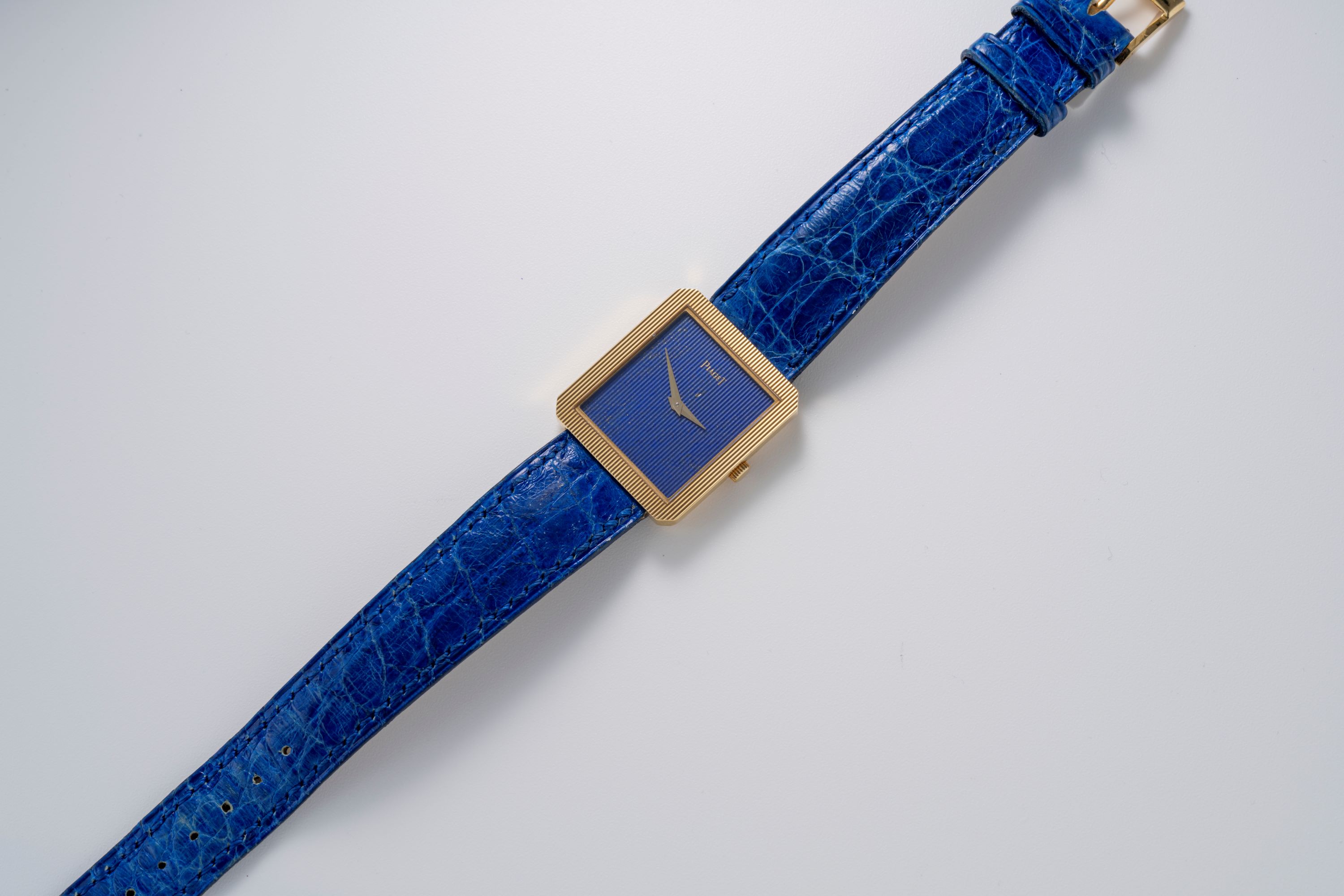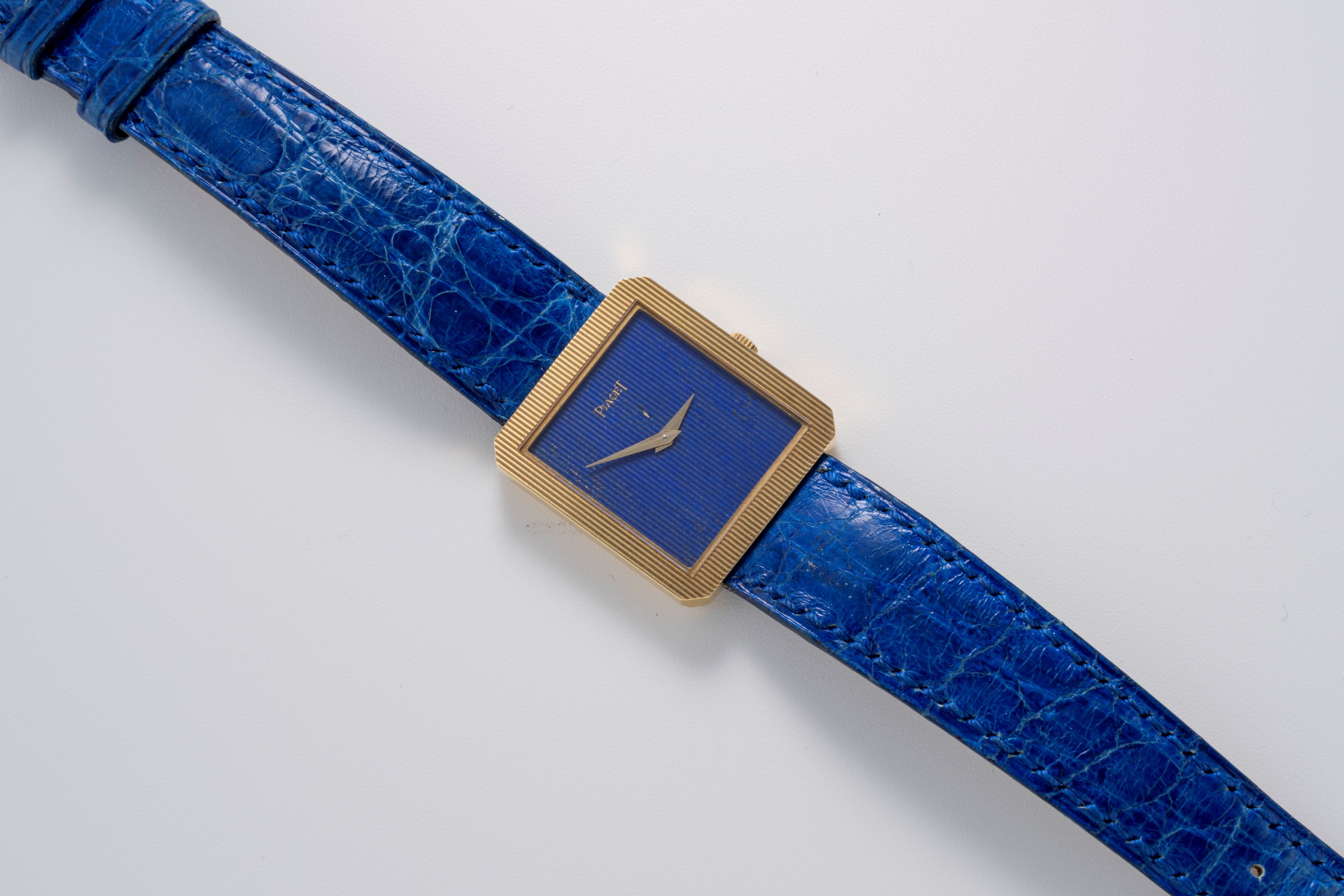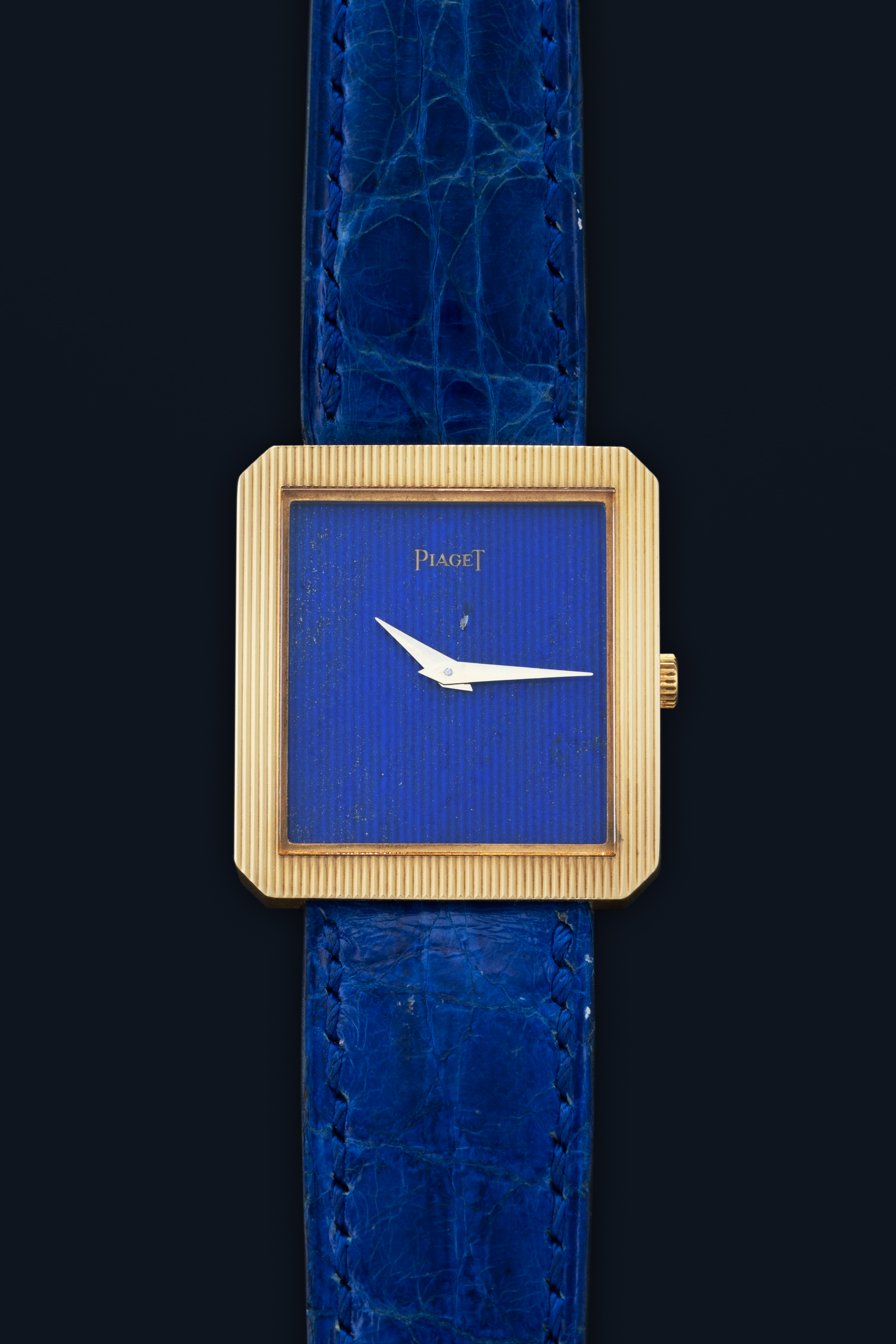 DialBlue lapis lazuli dial with gold dauphine hands, signed 'Piaget' at 12 o'clock