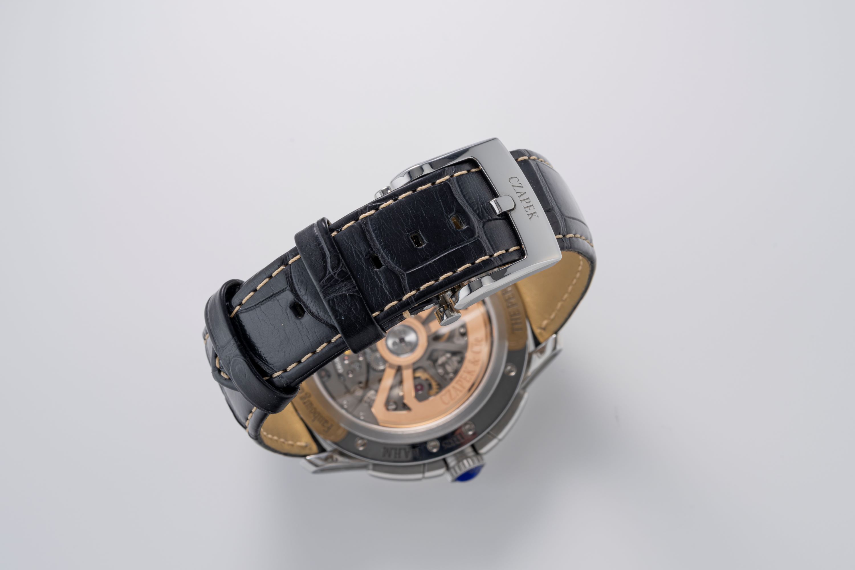StrapDark grey alligator leather strap with Czapek deployant clasp in stainless steel
