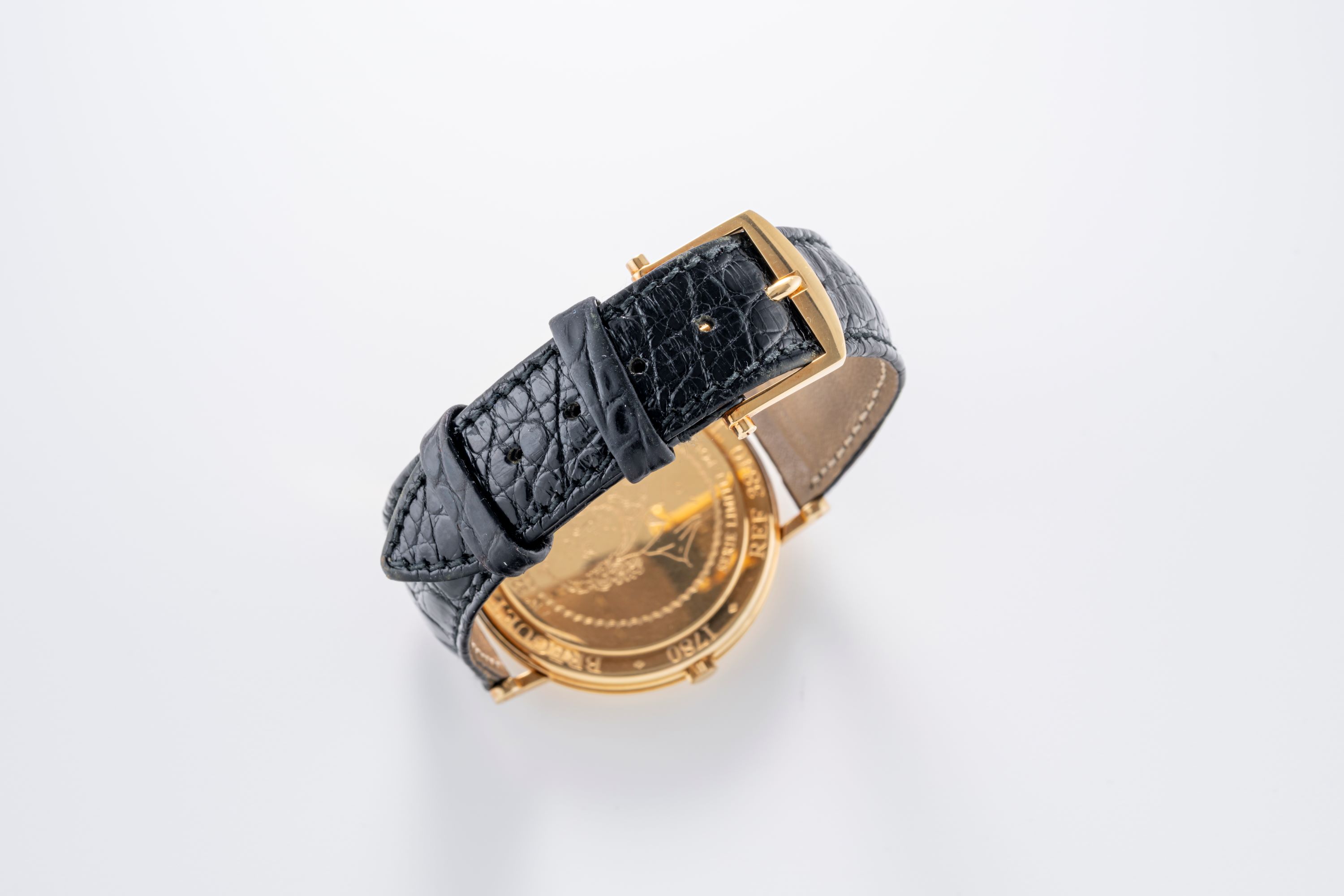 StrapBlack Breguet alligator leather strap with Breguet pin buckle in 18k yellow gold
