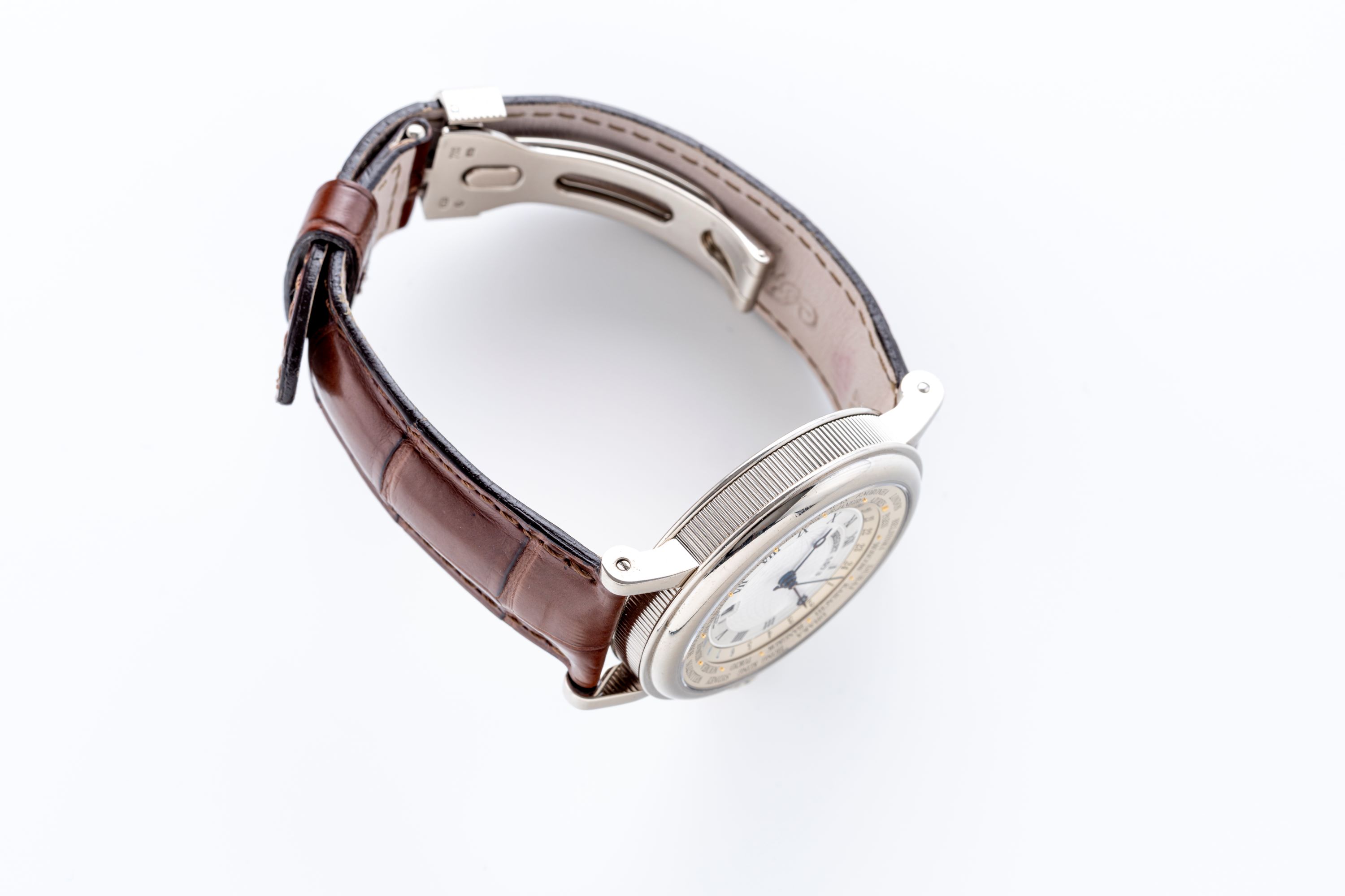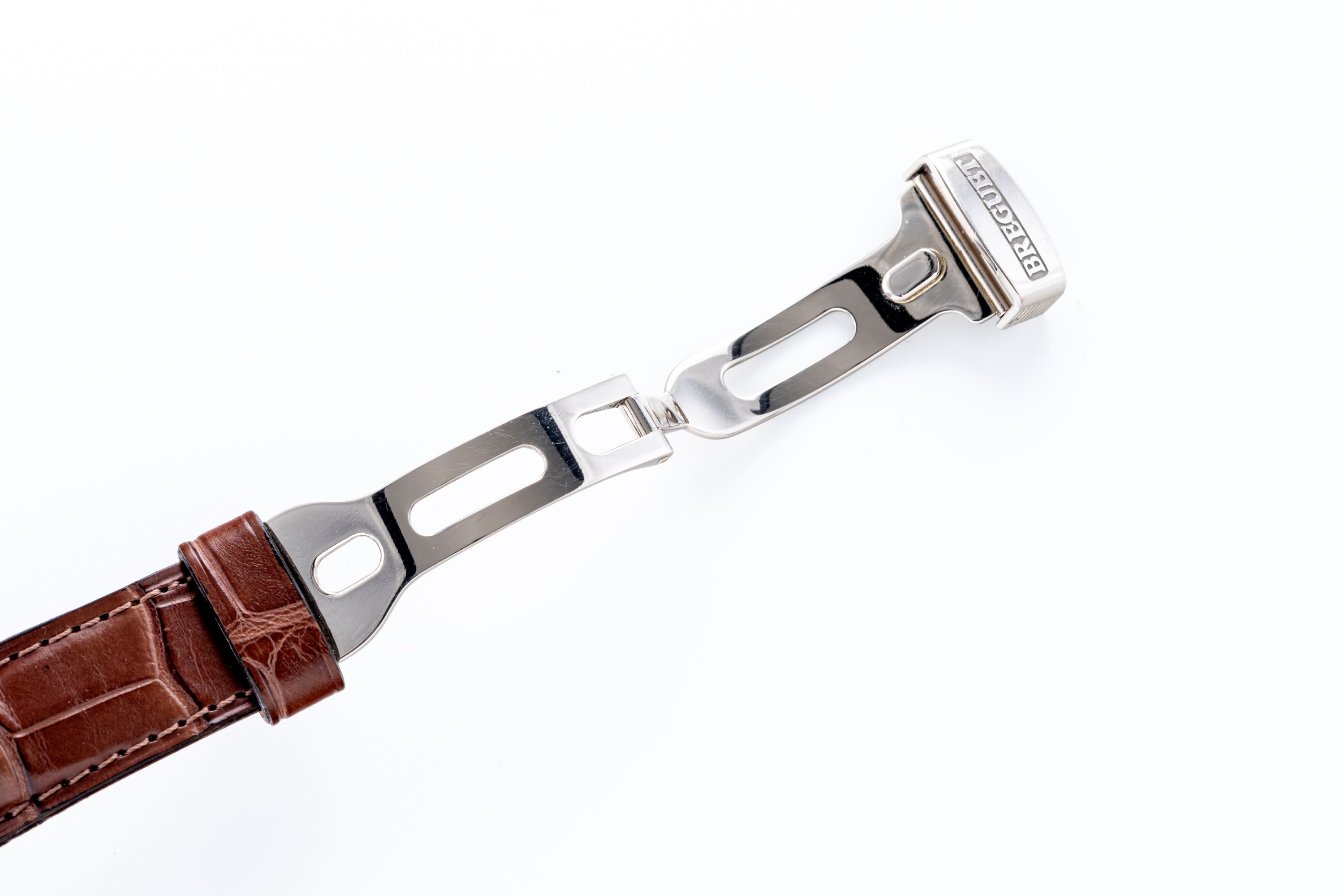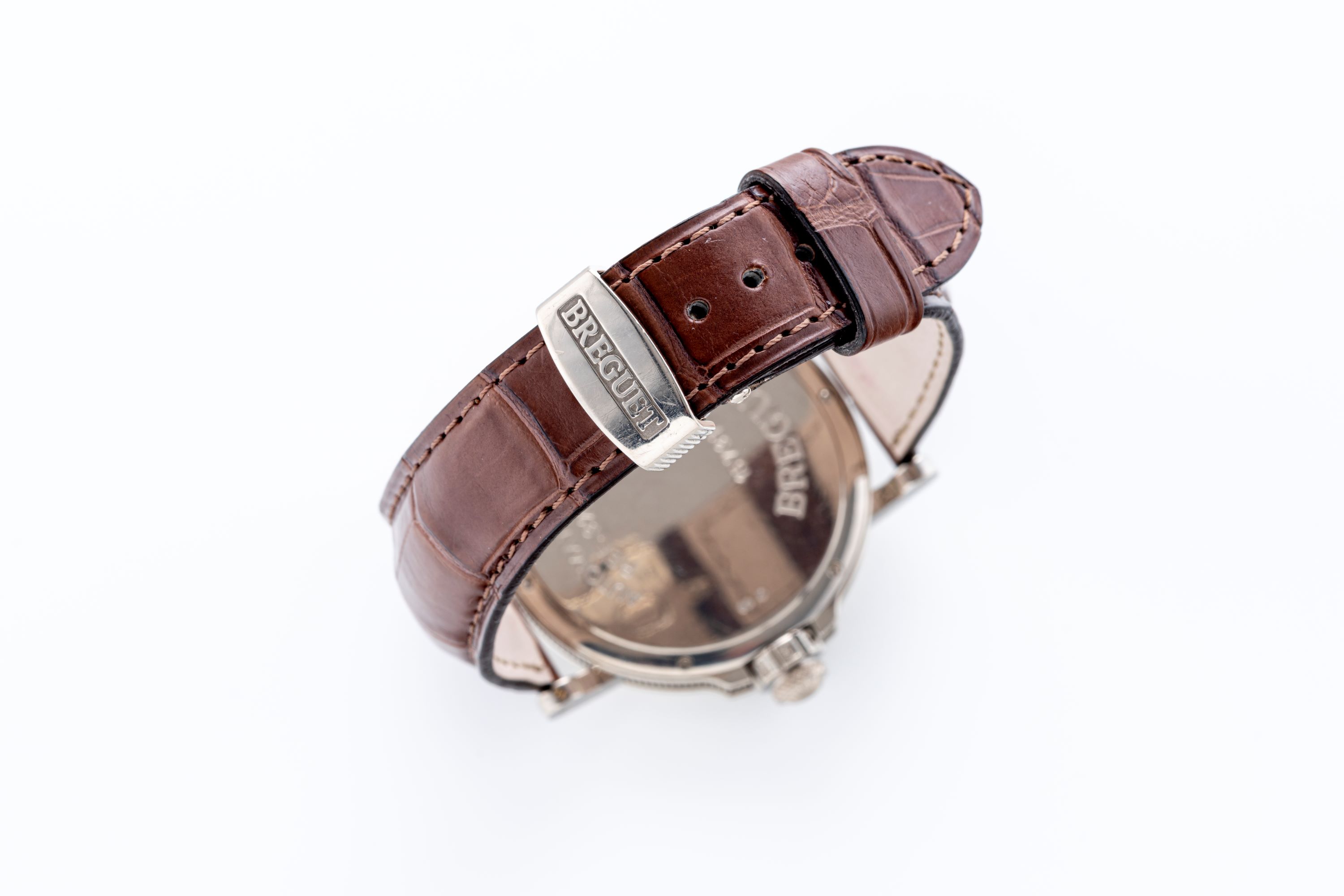 StrapBrown alligator strap signed ‘Breguet’, original, double folding clasp in 18k white gold, engraved ‘Breguet’