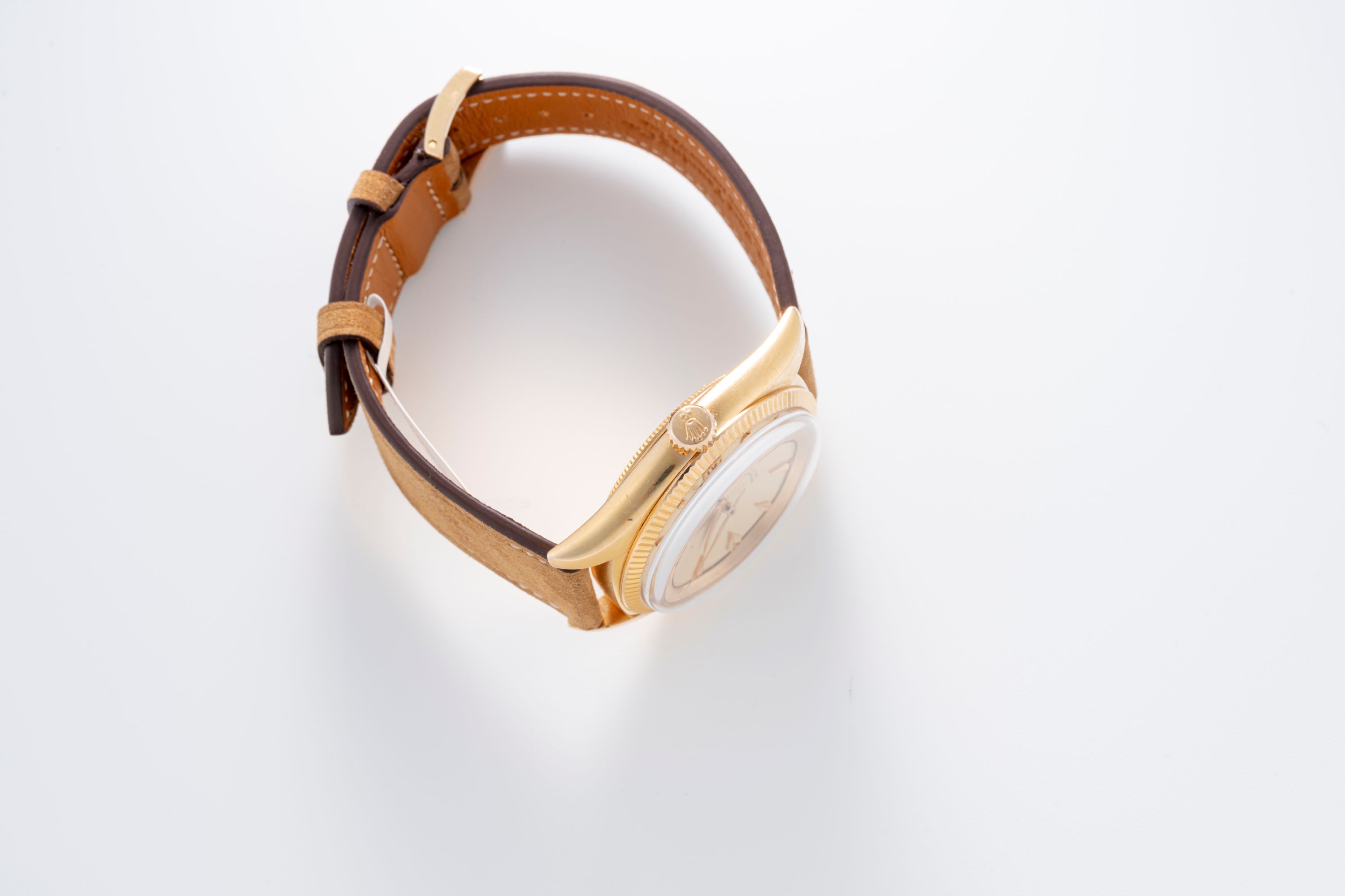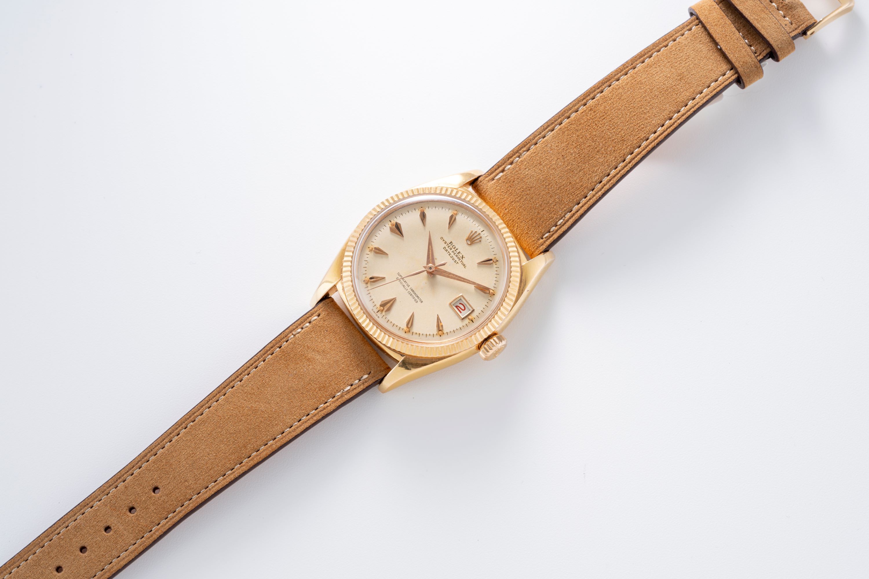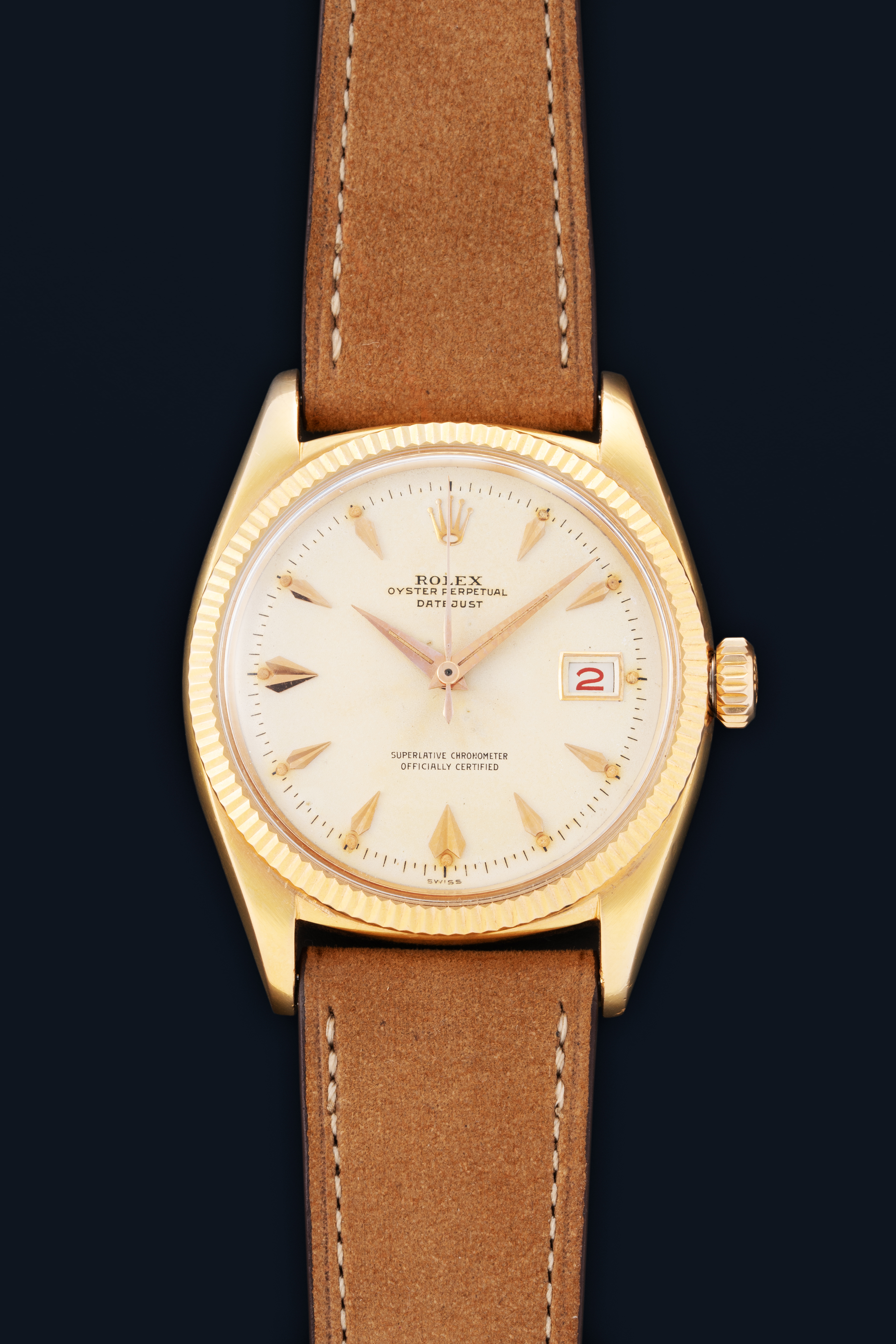 DialCream dial with applied rose gold indices, rose gold hands, date window at 3 o'clock, signed 'Rolex' at 12 o'clock