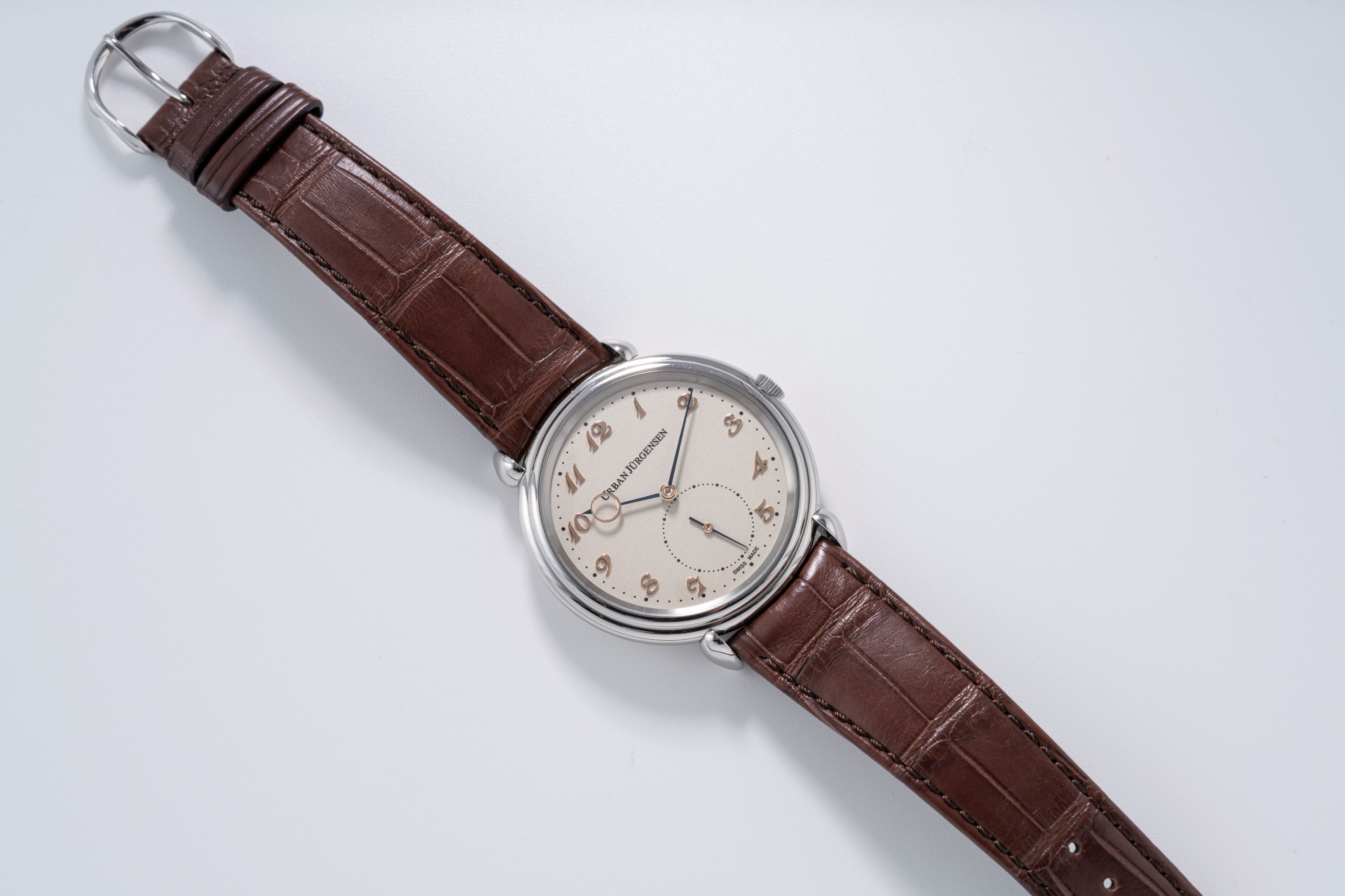 DialSilver-cream grenage dial with applied Breguet numerals, small seconds at 6 o'clock, characteristic hands, signed 'Urban Jürgensen' at 12 o'clock