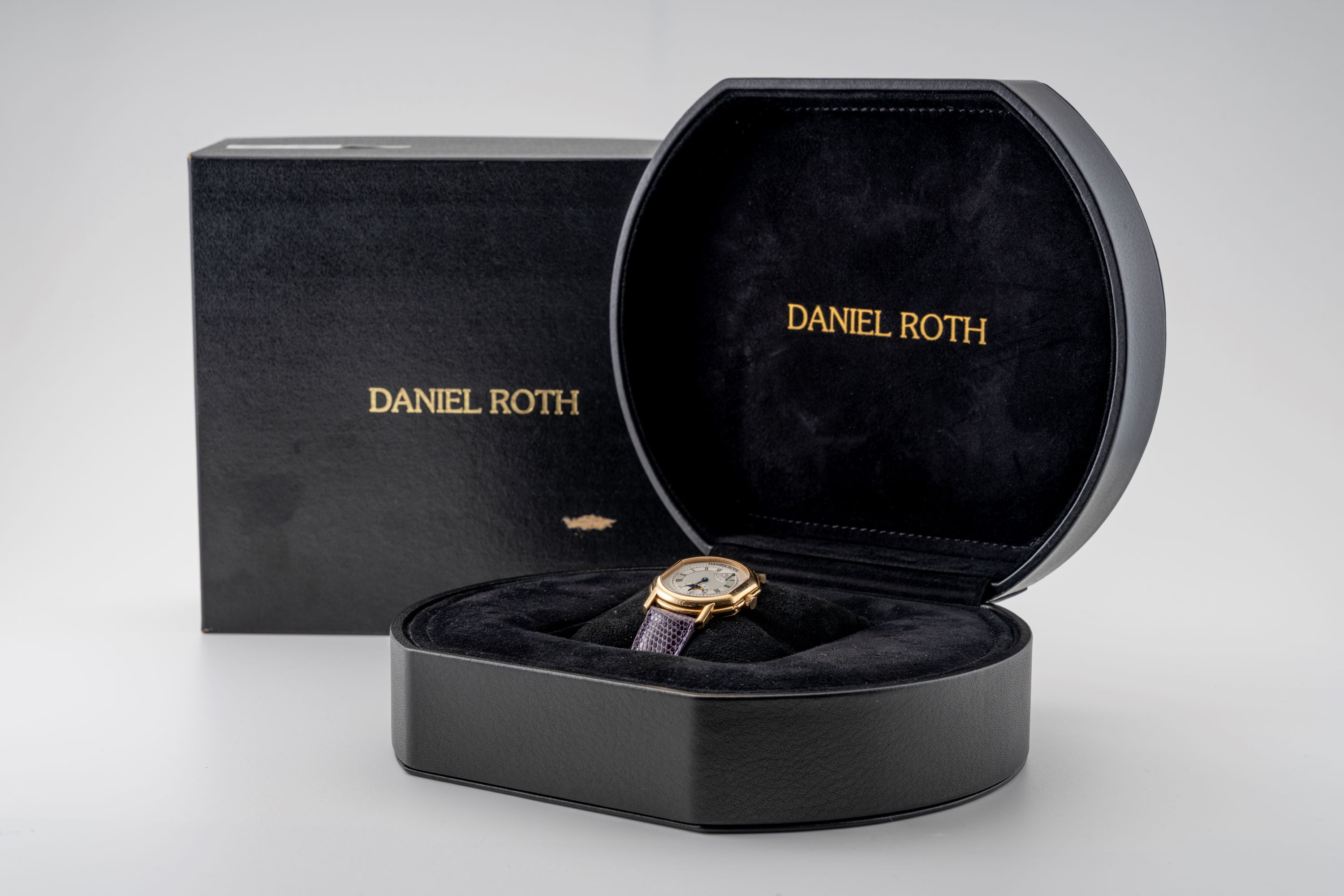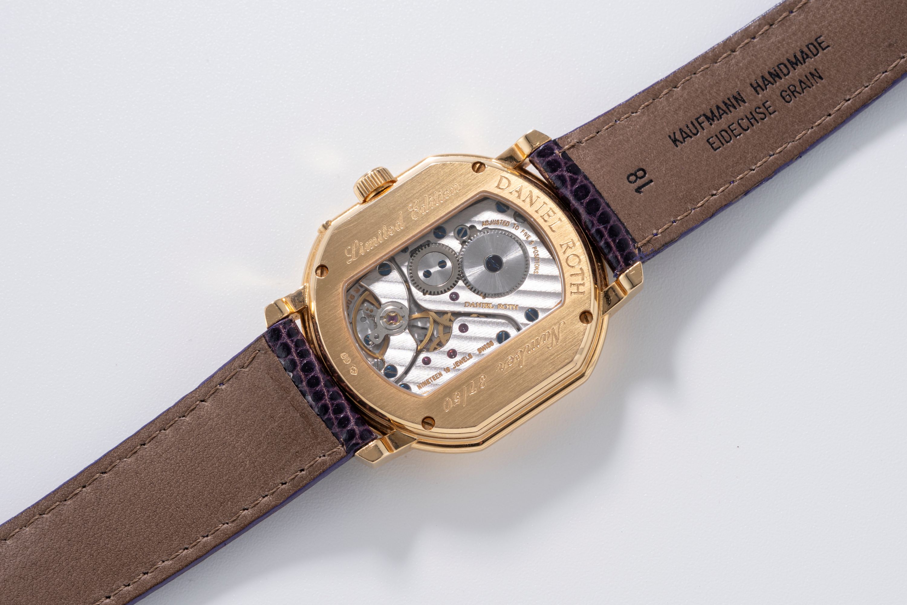 StrapPurple lizard strap with original Daniel Roth pin buckle in 18k yellow gold