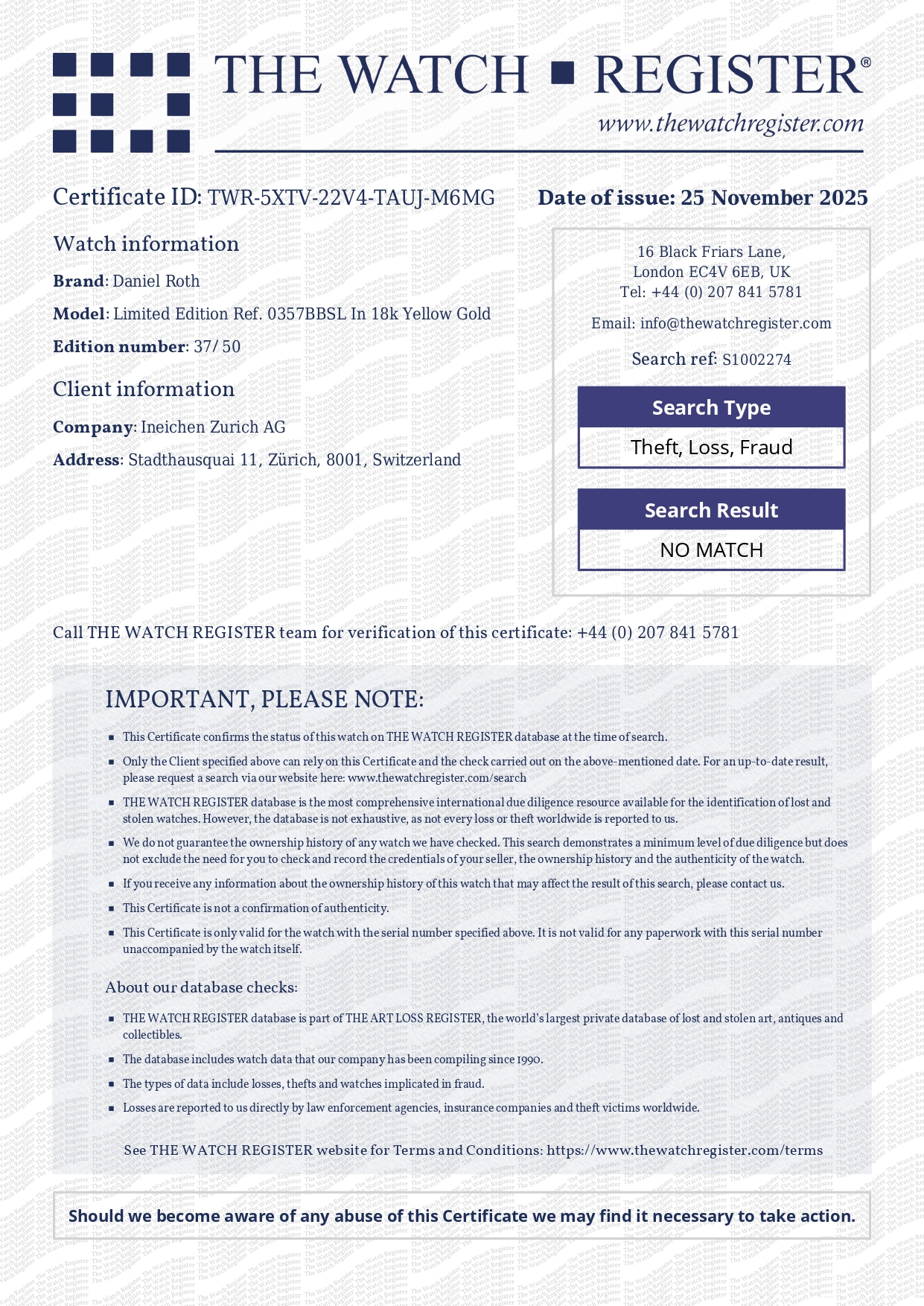 The Daniel Roth Power Reserve Moonphase Ref. 0357 in 18k yellow gold with a silver-white guilloché dial exemplifies the independent watchmaker’s commitment to mechanical refinement and distinctive design. With its signature double-ellipse case, classical complications and superior finishing, this model in yellow gold packs warmth and elegance. The 18k yellow gold case, measuring 33mm in width and 40mm lug-to-lug, features the brand’s characteristic curving lugs, refined polished bezel, and a case architecture that catches light from every angle. The guilloché dial, engine-turned in fine patterns, provides a striking backdrop for the Roman numerals, heat-blued feuille hands, power-reserve indicator, and moon-phase. Limited to only 50 pieces, this watch celebrates Daniel Roth’s legacy while taking the brand into the 21st century.