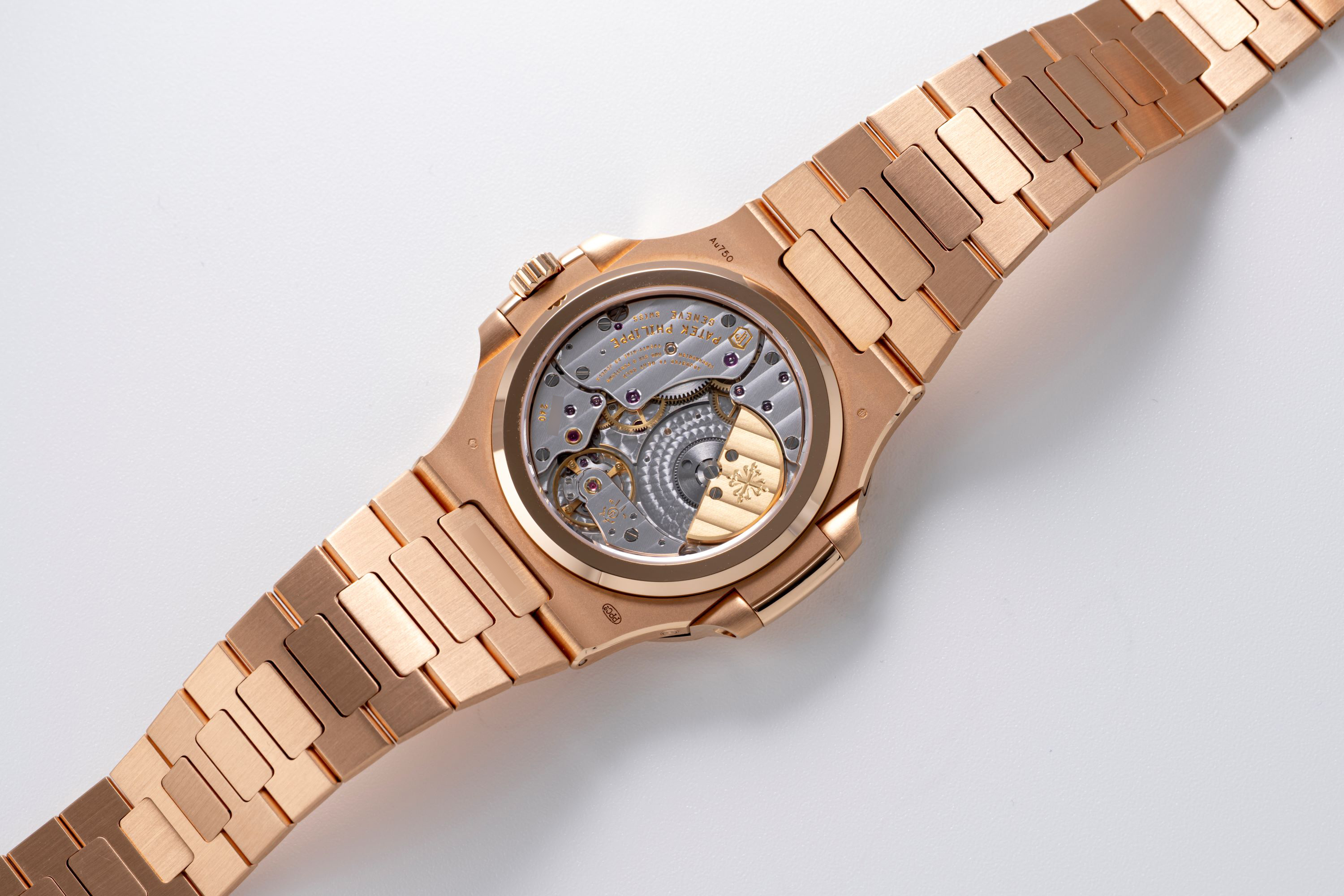 CaseNautilus case in 18k rose gold with crown at 3 o'clock, display caseback
