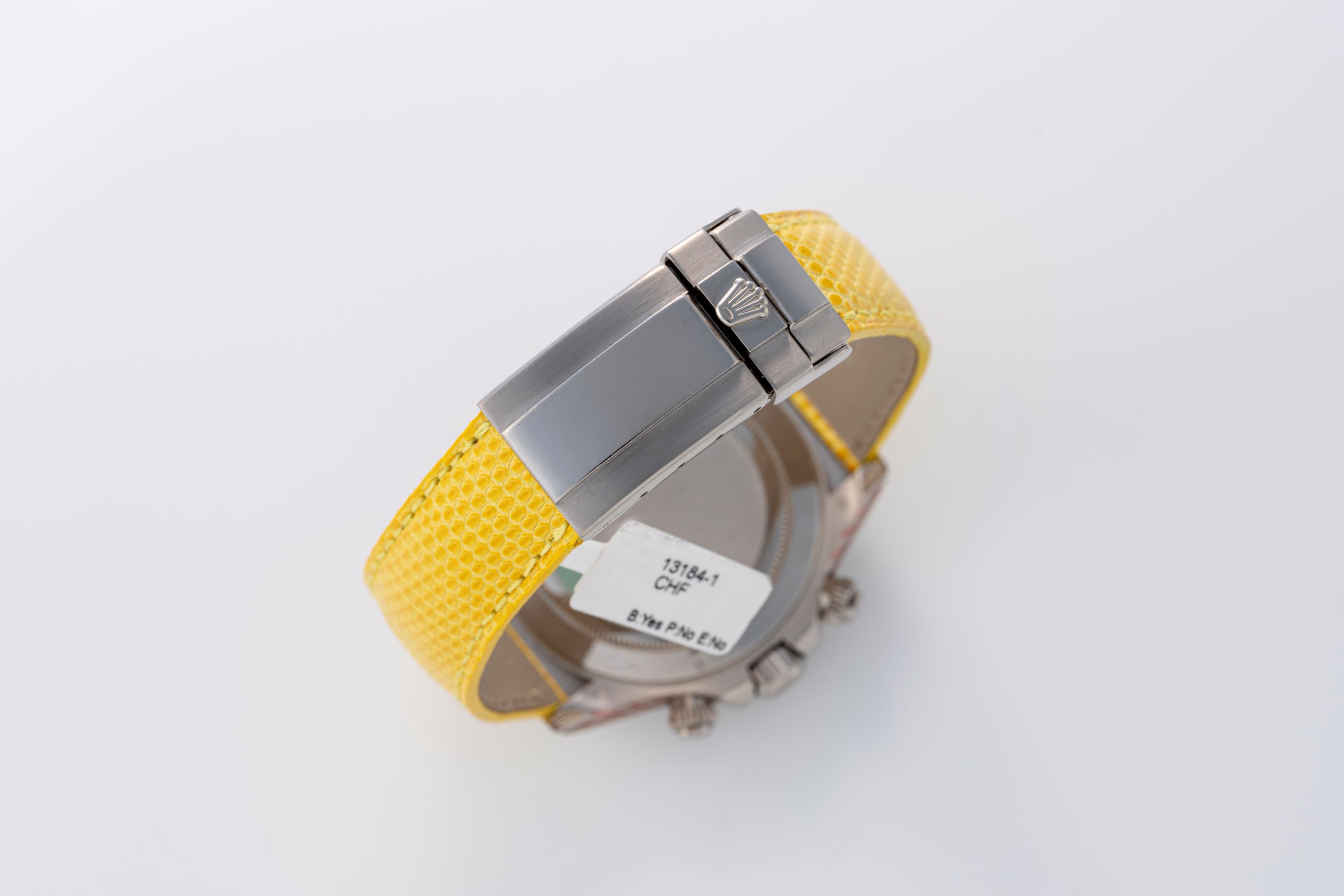 StrapYellow 'Beach' Daytona lizard strap with Rolex deployant clasp in 18k white gold
