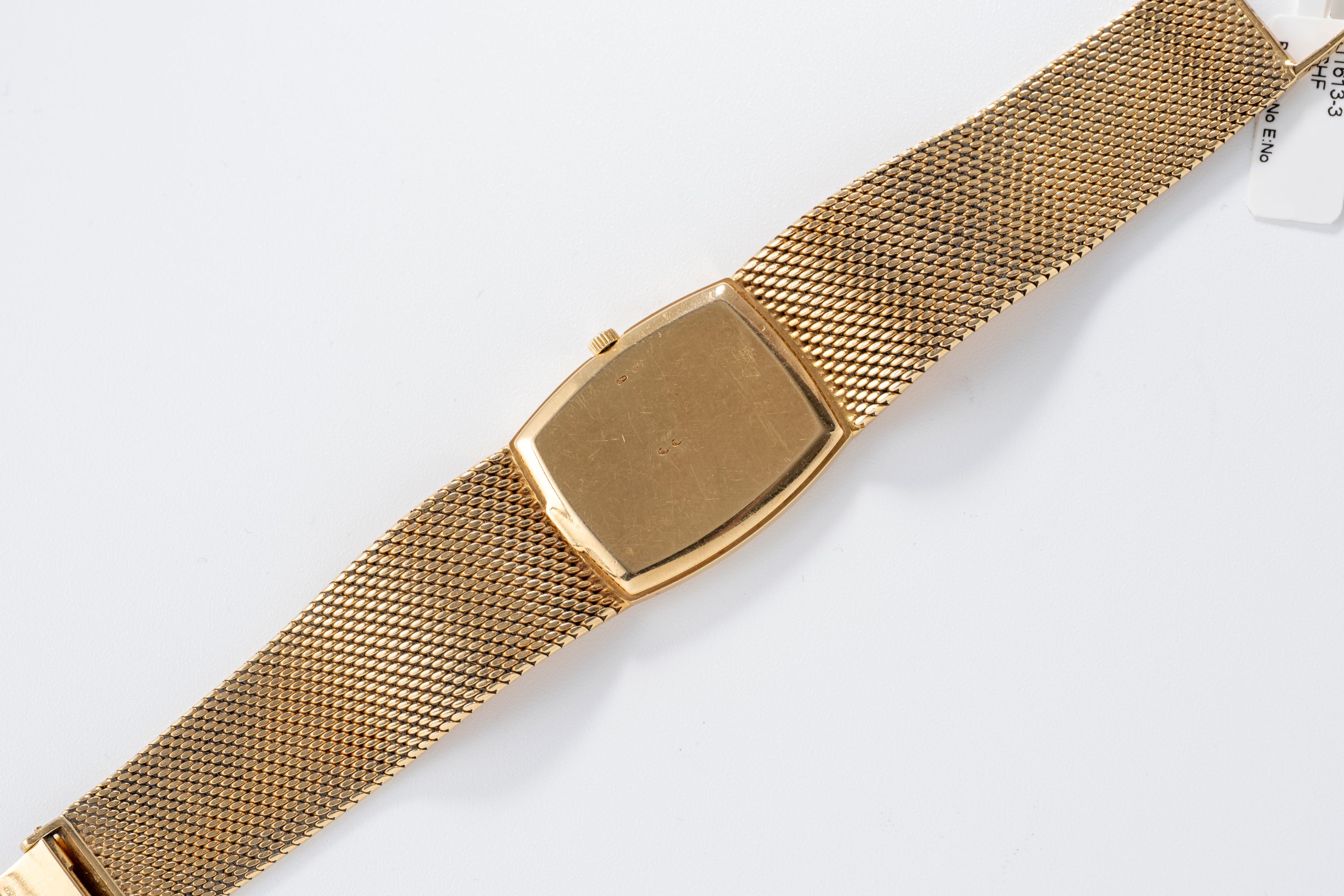 CaseTonneau case in 18k yellow gold with winding crown at 3 o'clock, solid caseback