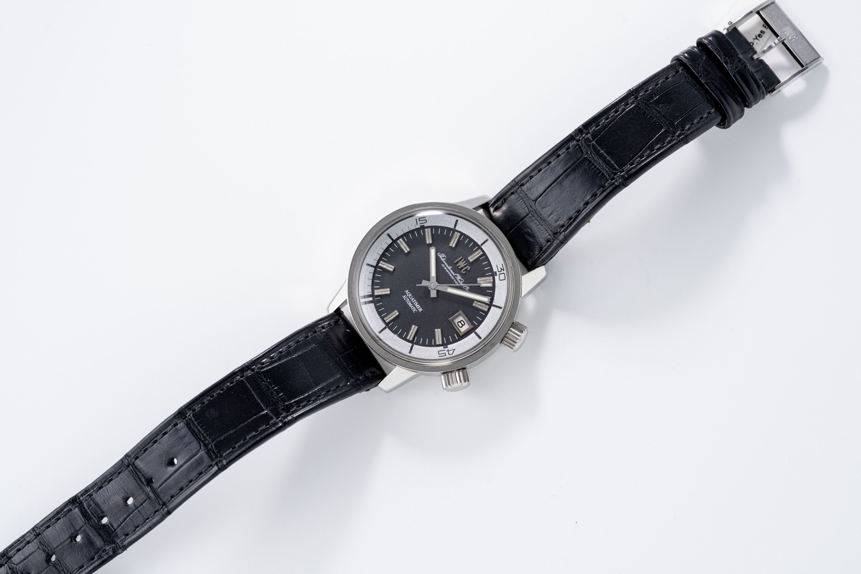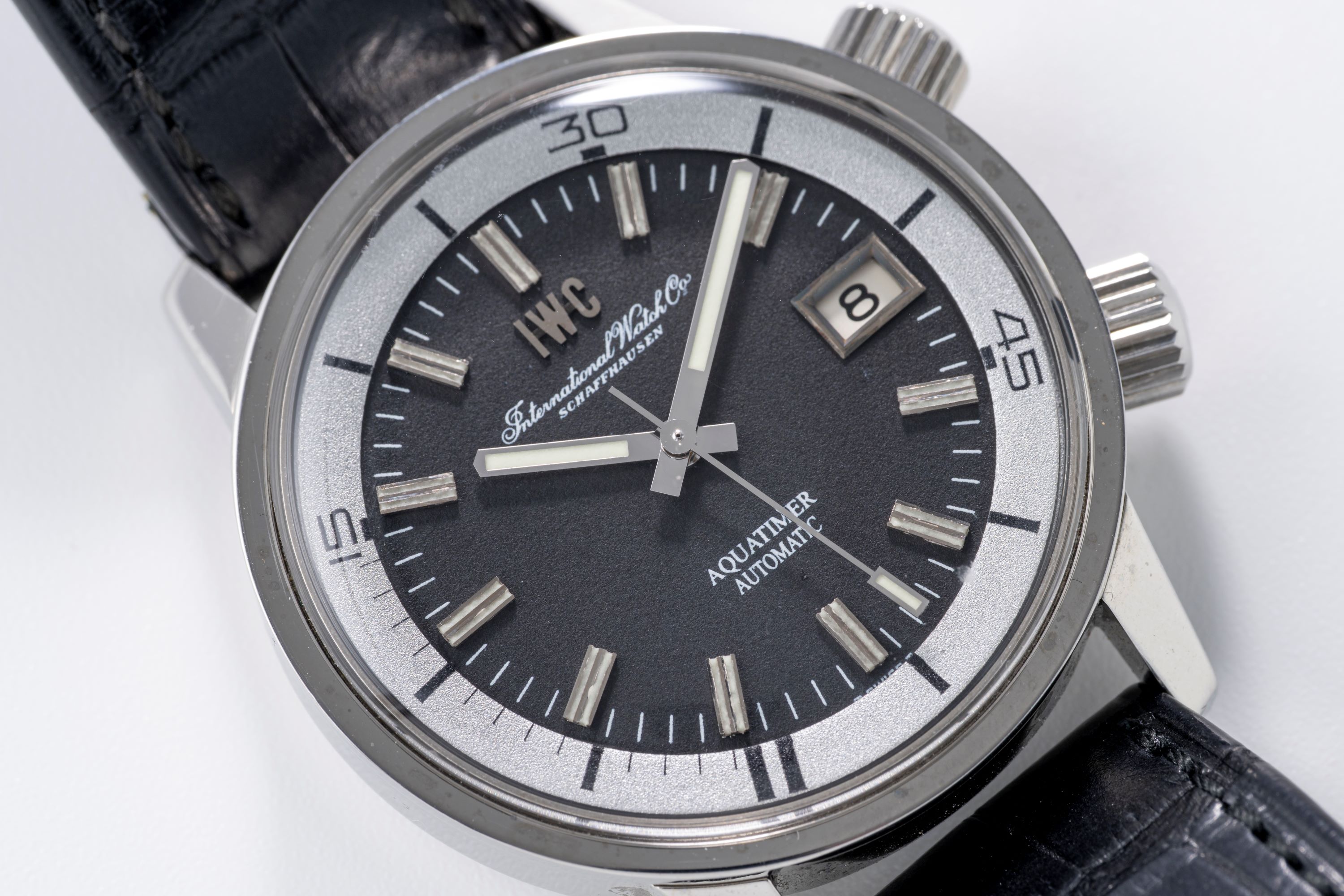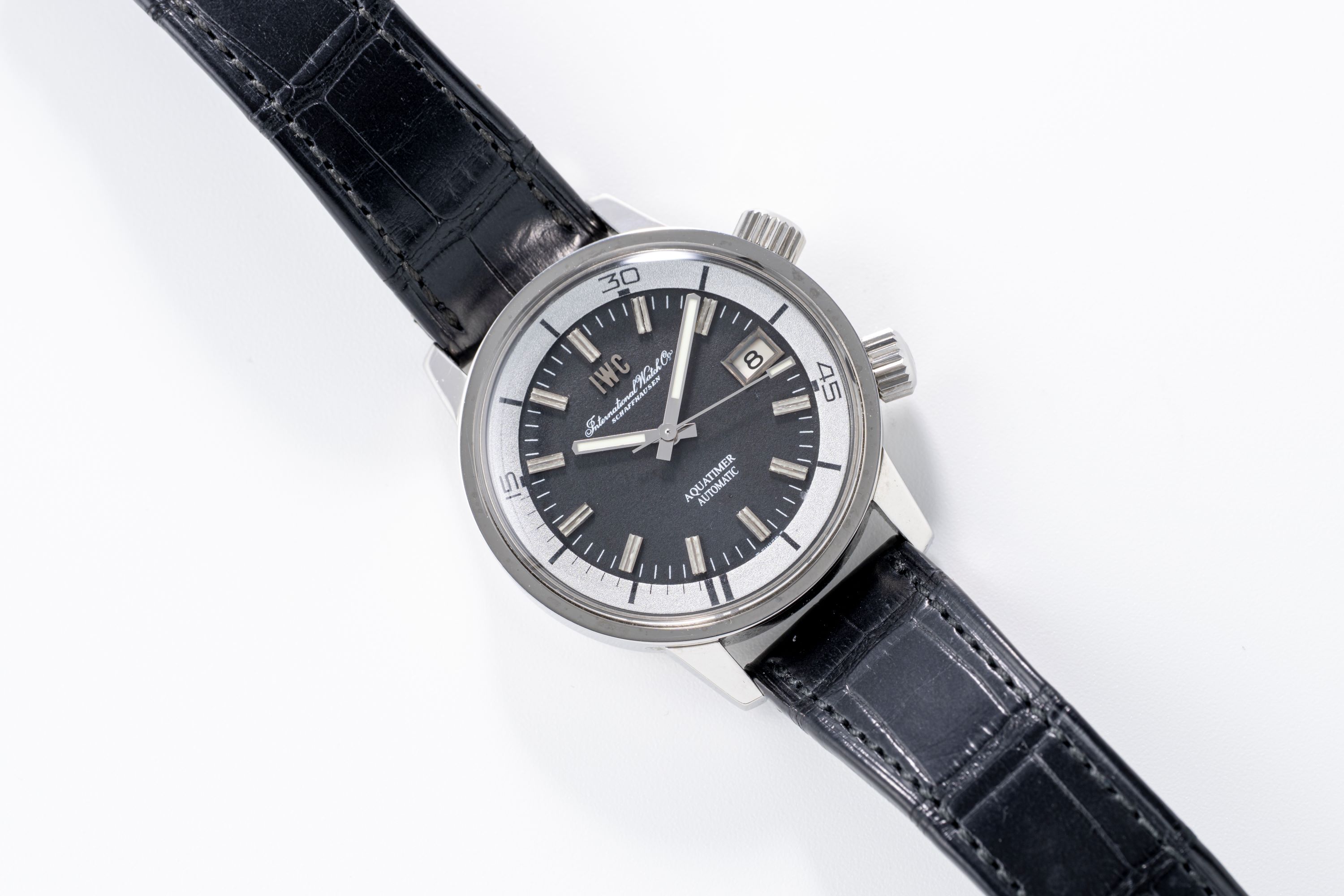 DialMatte black dial with silver dive time bezel, applied indices, luminous hands, date window at 3 o'clock, signed 'International Watch Co.' at 12 o'clock