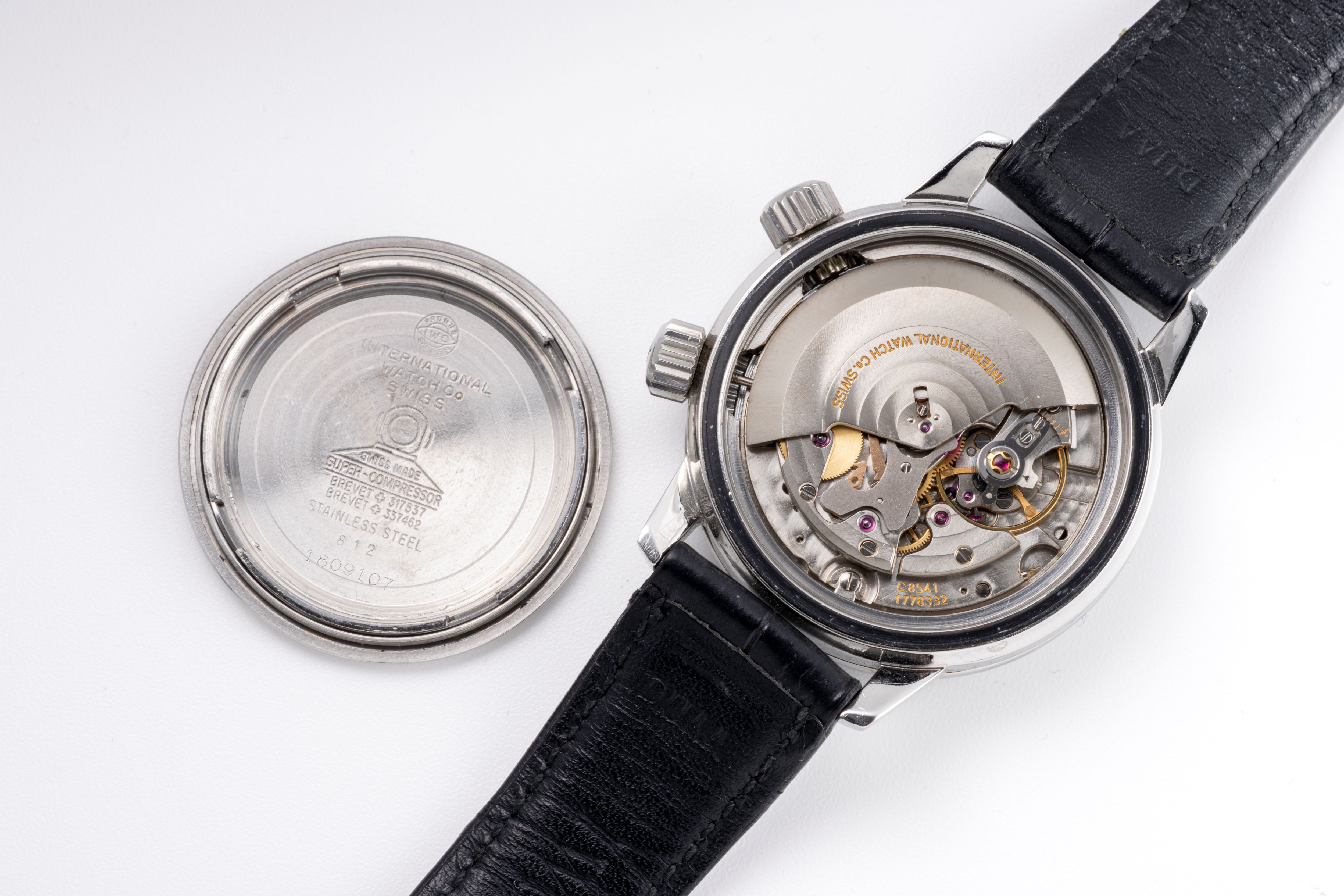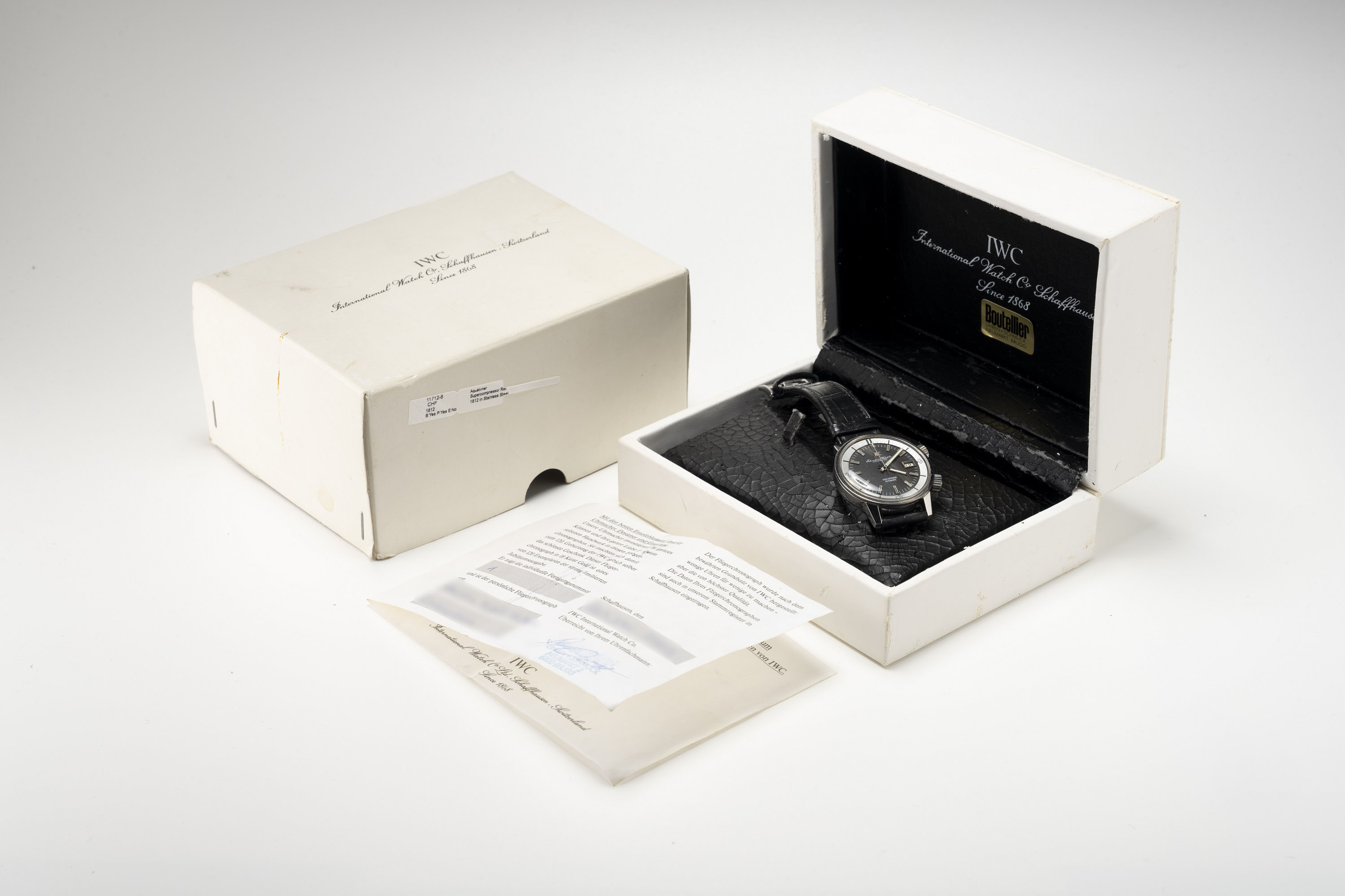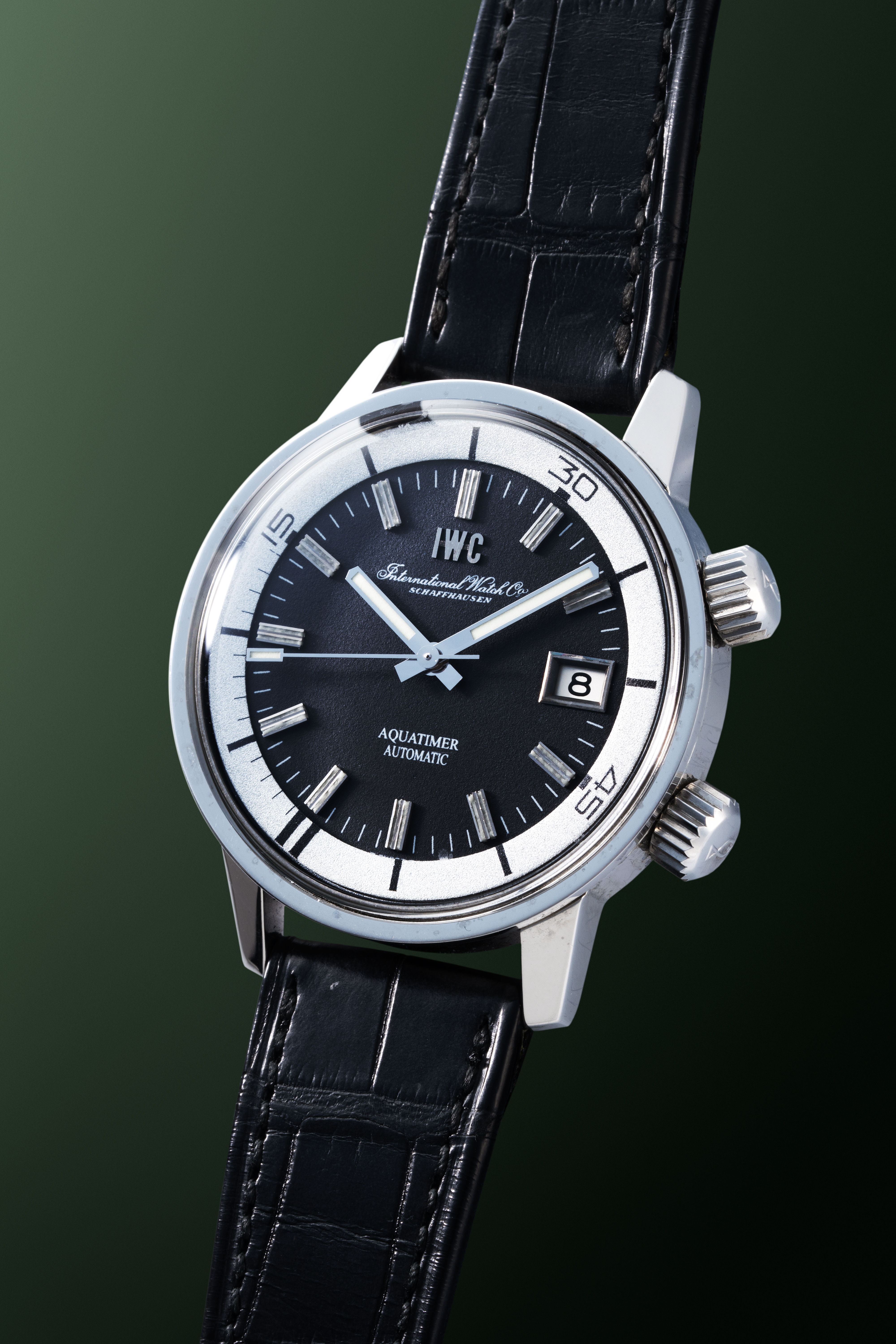 DialMatte black dial with silver dive time bezel, applied indices, luminous hands, date window at 3 o'clock, signed 'International Watch Co.' at 12 o'clock