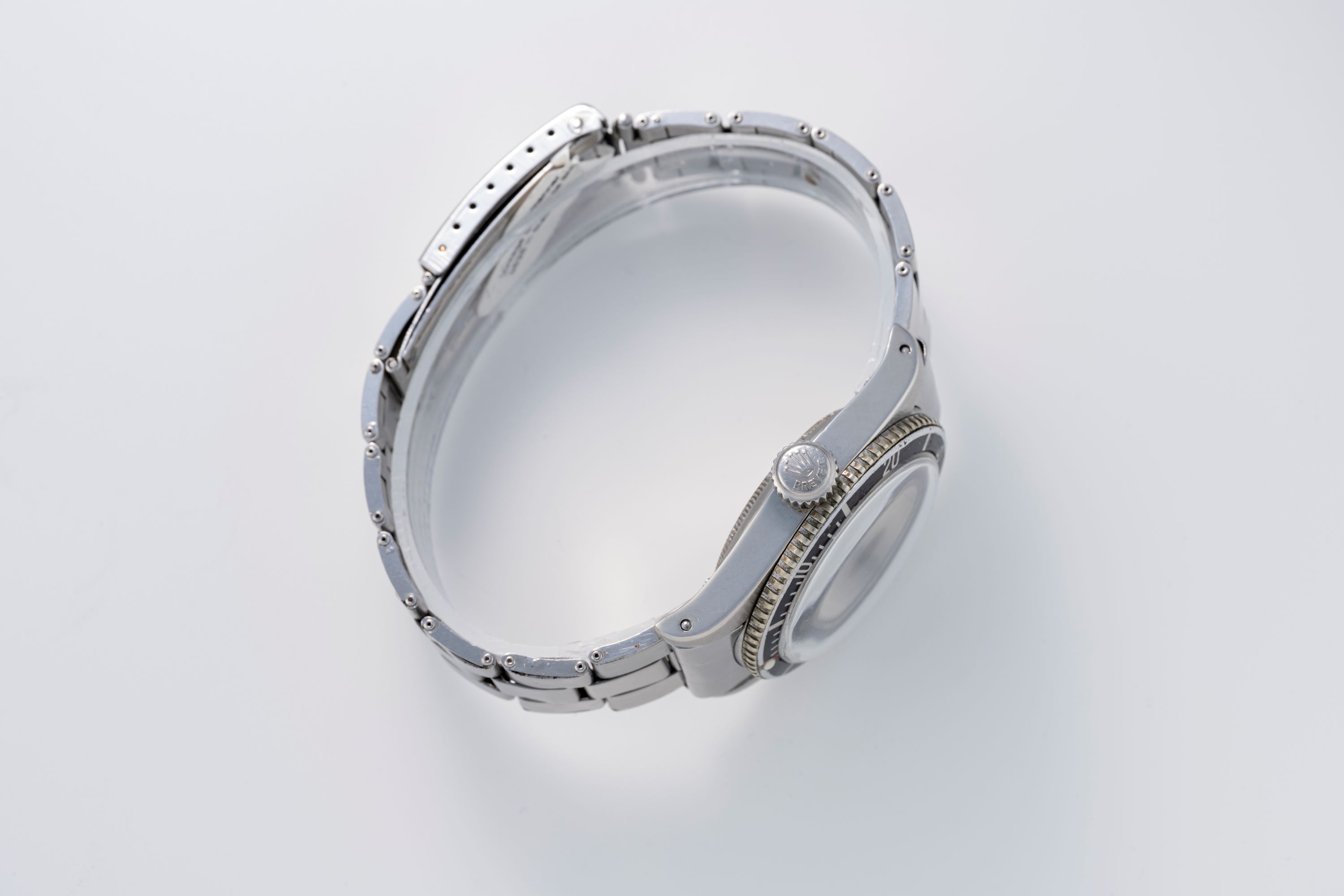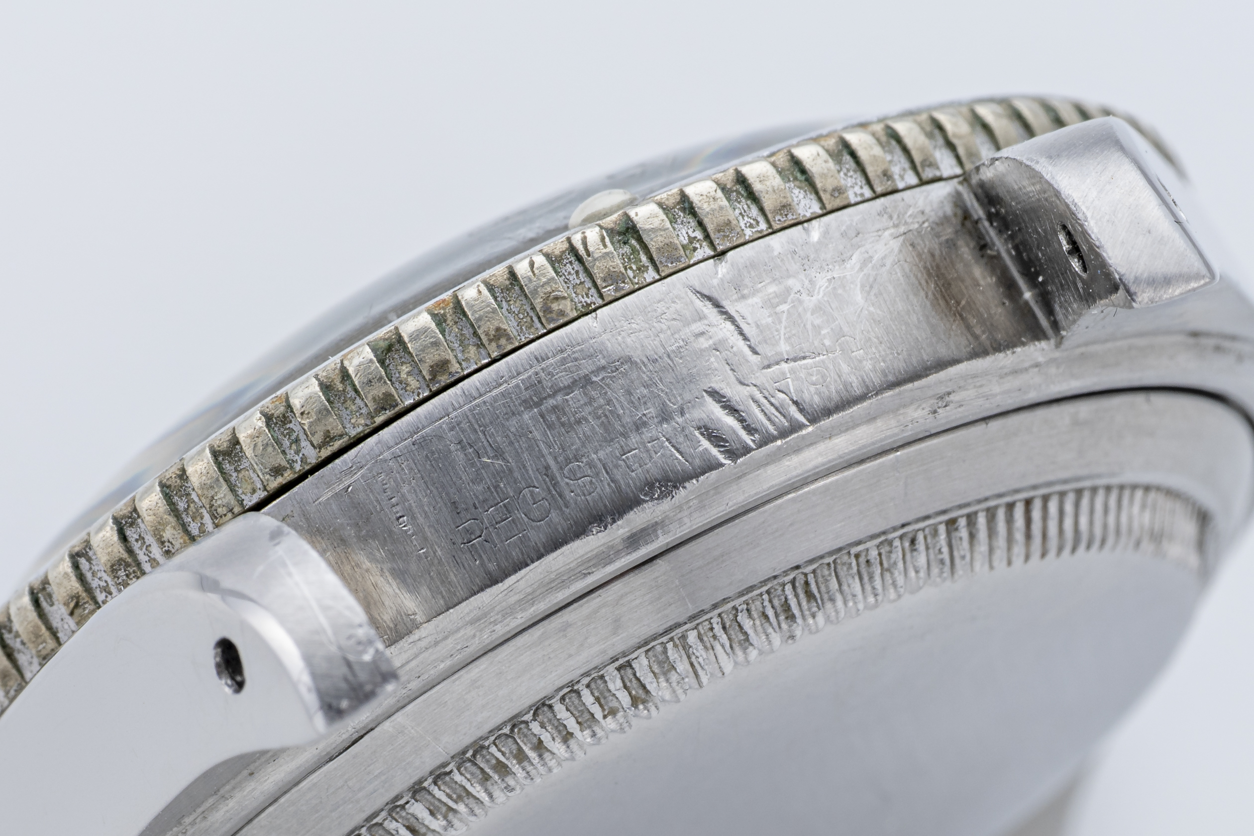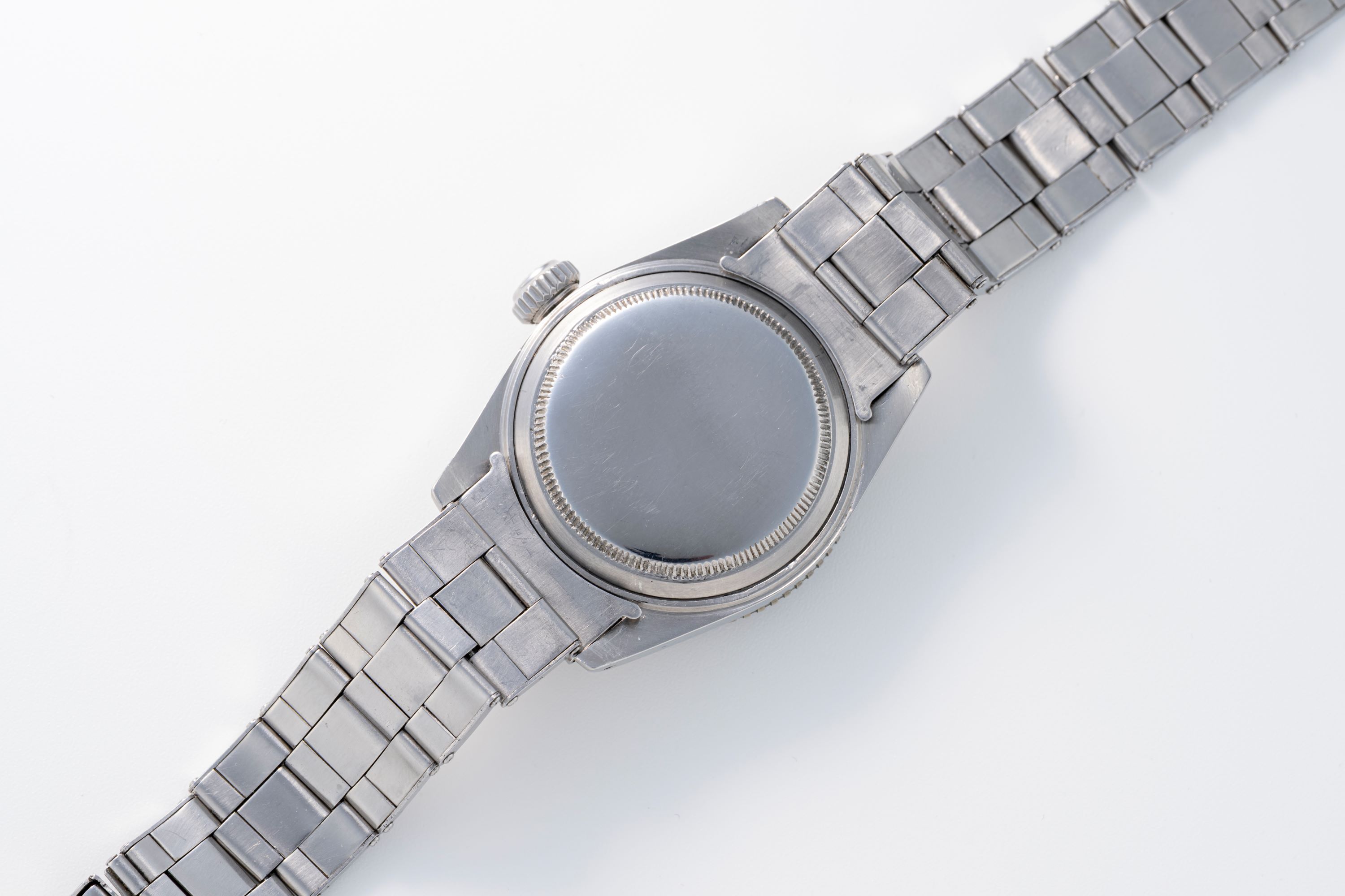 This Ref. 6538 Submariner dates to approximately 1958 and represents the well-known ‘Big Crown’ era in early Rolex diving watches. The dial has aged to a warm tropical tone with even ‘spider’ cracks in the lacquer, creating a distinctive appearance that is individual to this watch and valued by collectors who look for natural aging rather than restored surfaces. The bezel insert and case show consistent wear that reflects long-term use without major alteration, supporting this one as a very original example. The watch is offered with its original Original Box and Papers from 1959, along with later service records by Bucherer. This level of documentation is uncommon for watches of this period and provides clear continuity of ownership and care. The presence of the original accessories adds historical context and long-term confidence for the next collector. As an early Submariner with a tropical dial and complete accompanying material, this example offers strong collectible value and a direct link to the development of early Rolex tool watches in the late 1950s.