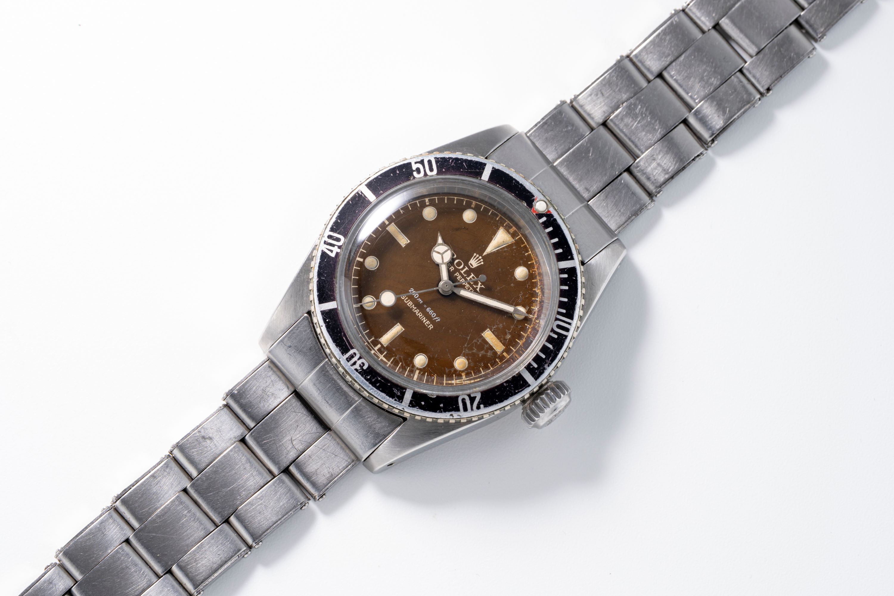 DialOriginally black dial with brown tropical patina and 'spider' cracks, luminous radium indices, re-painted original hands, signed 'Rolex' at 12 o'clock